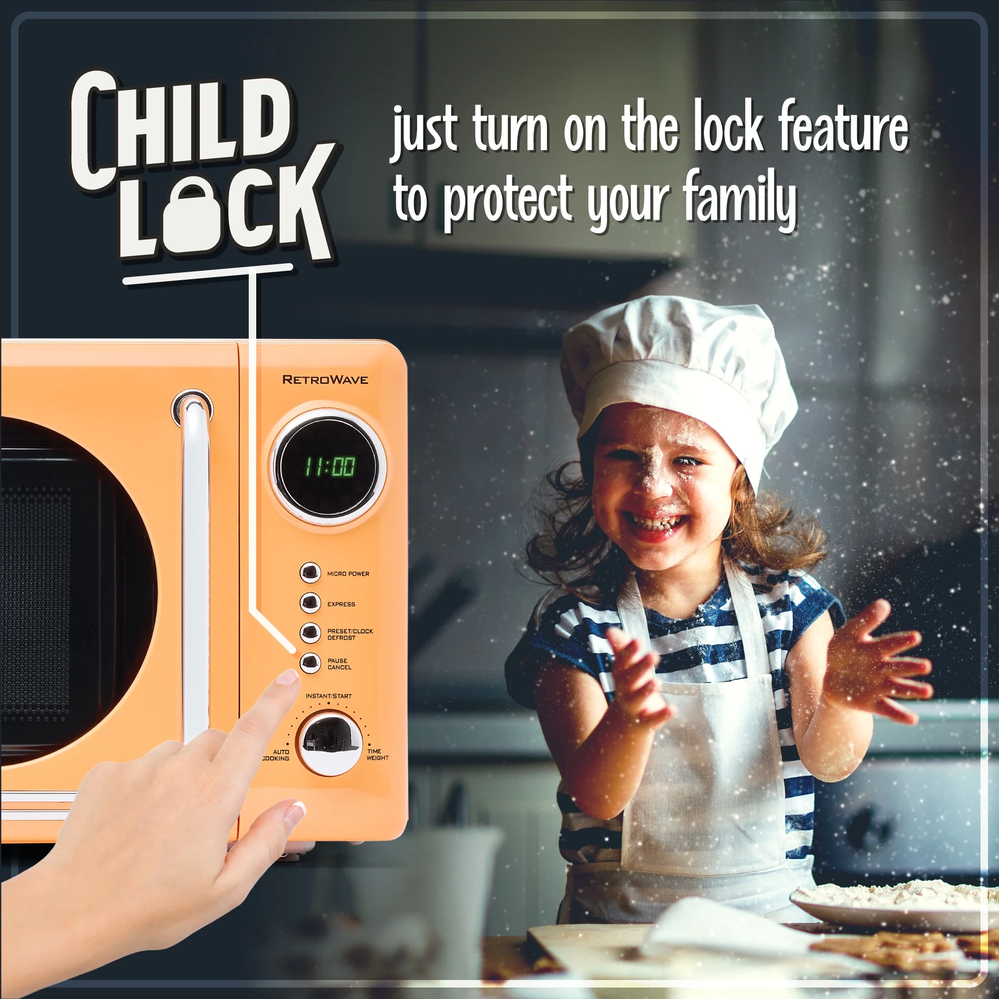 - Digital Clock: Easy-to-read LED display lights up the digital clock and highlights each cooking setting