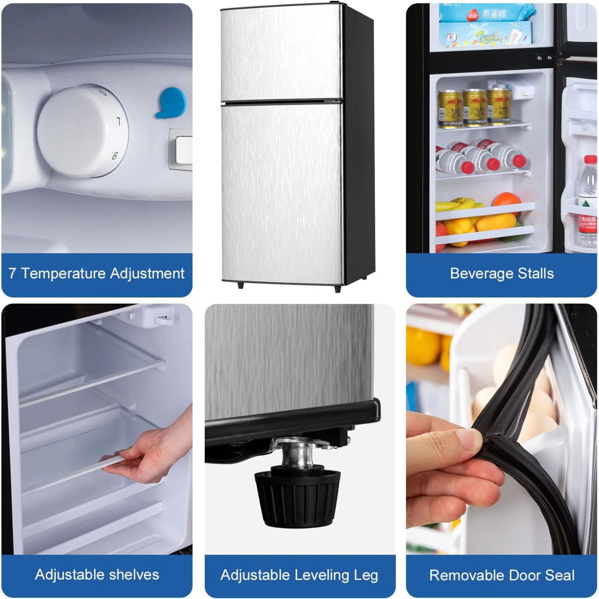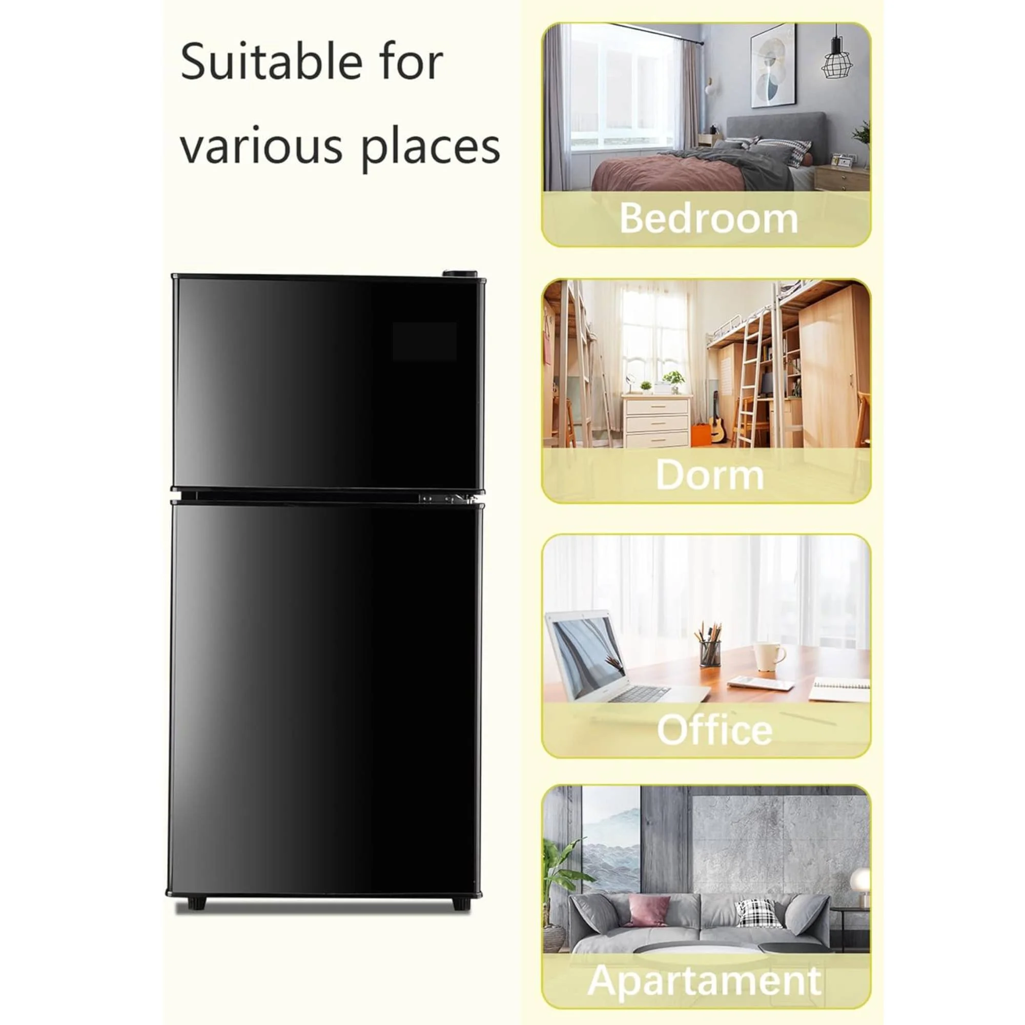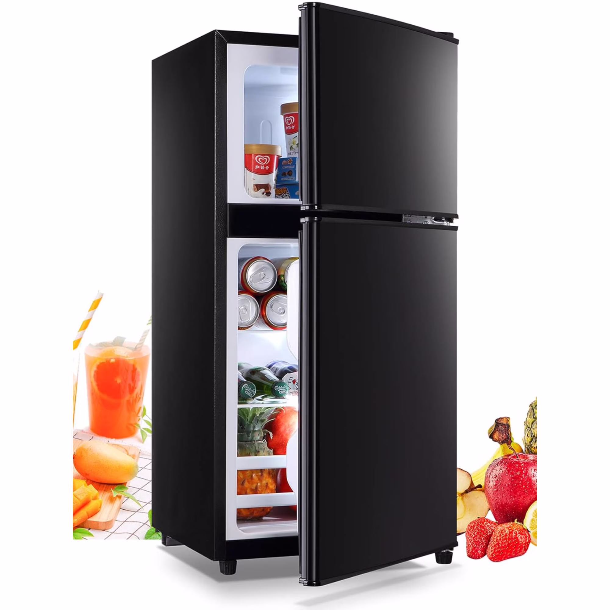 - ???Smart Dual-Zone Design???: Our space-saving fridge features separate freezer (top) and refrigerator (bottom) compartments to keep flavors fresh and prevent odor transfer. Ideal for storing ice cream and meats up top while keeping fruits and veggies crisp below - all while minimizing cold air loss.