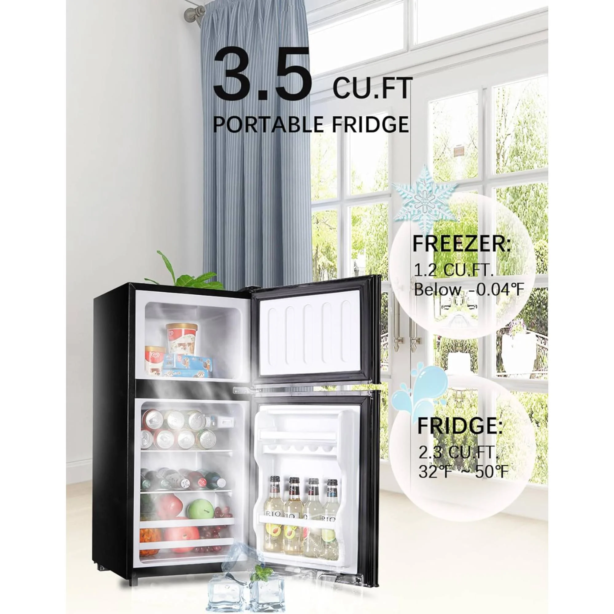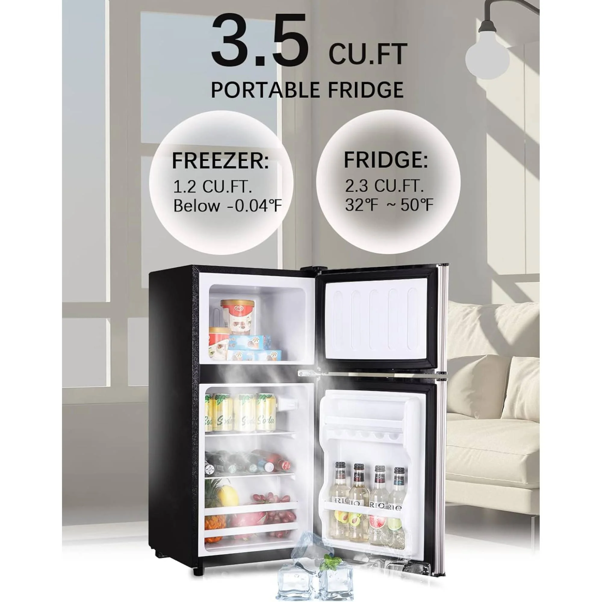 - ???Precision Temperature Control???: Enjoy customizable cooling with Refrigerators 7 precise temperature settings (33.8?��F to 46.4?��F for refrigeration / 32?��F to -0.4?��F for freezing). Simply turn the dial to your preferred setting - perfect for everything from delicate produce to frozen treats. Even in cold environments, the built-in temperature compensation ensures consistent performance.