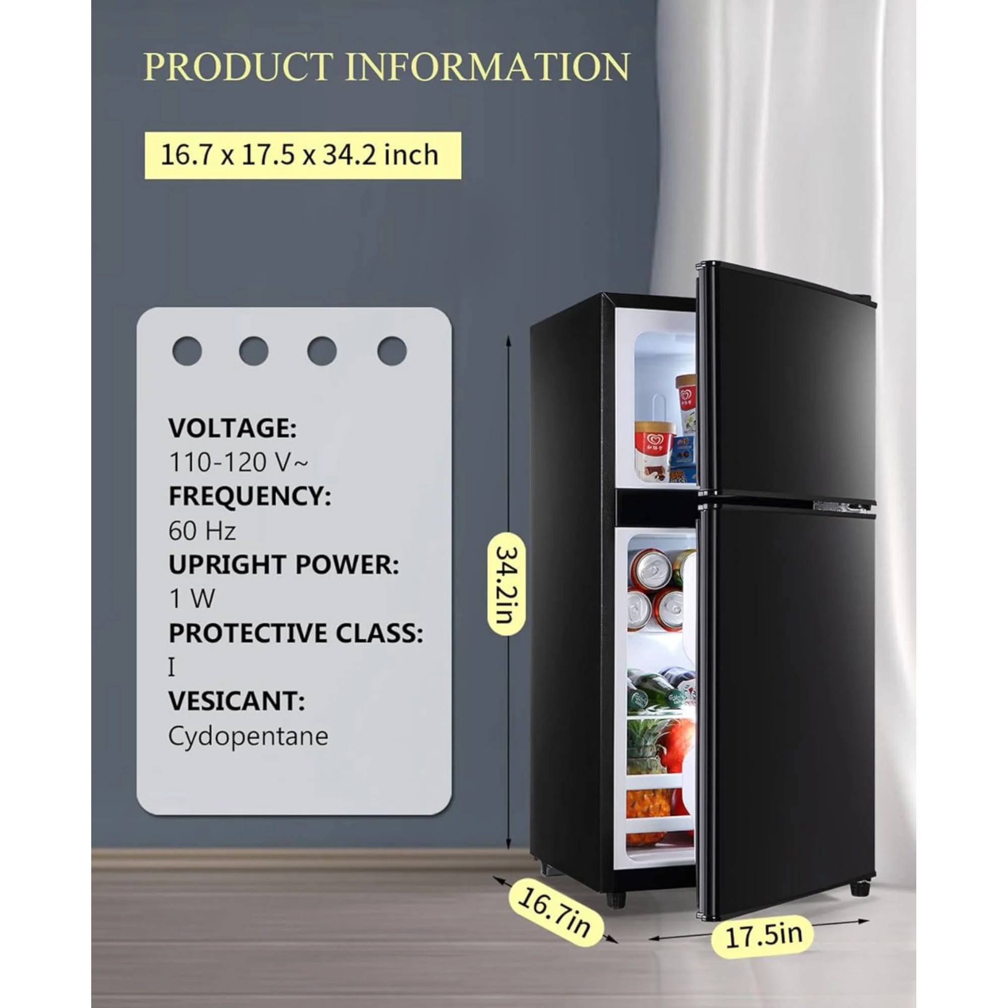 - ???Compact Yet Spacious???: At just 16.7"D x 17.52"W x 34.2"H, this 3.5 cu.ft mini fridge packs serious storage into small spaces. Two adjustable shelves and a crisper drawer let you customize the interior for snacks, drinks, or meal prep - perfect for dorms, offices, or studio apartments.