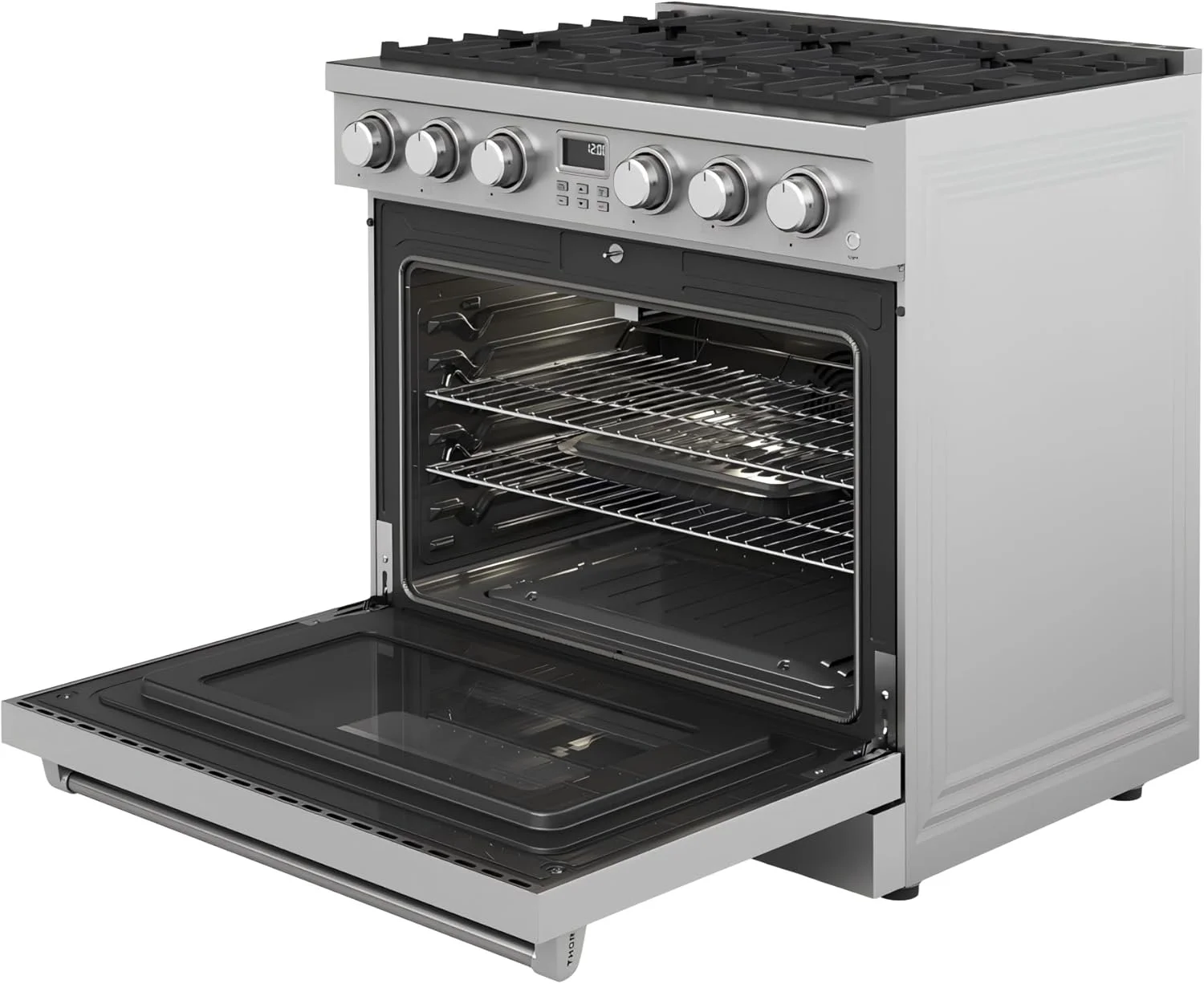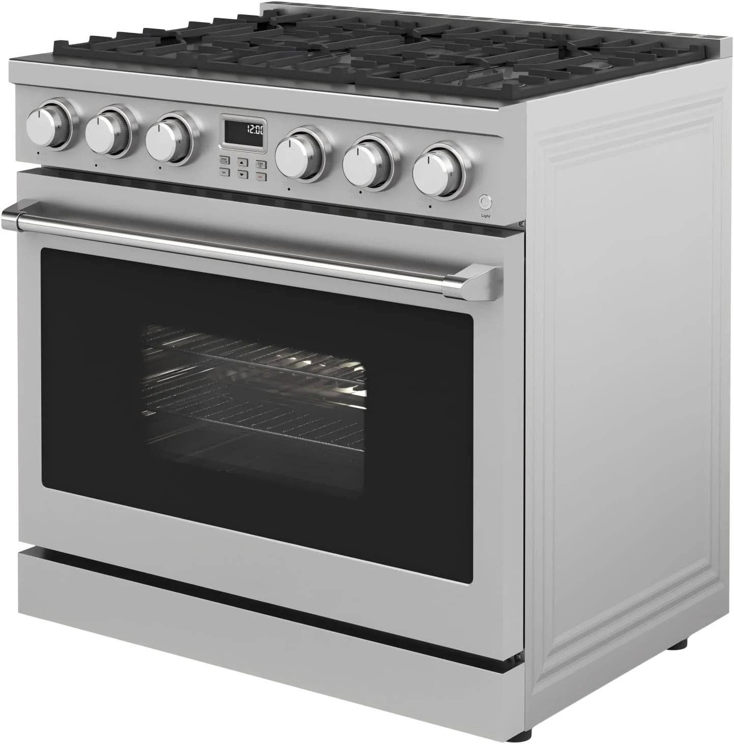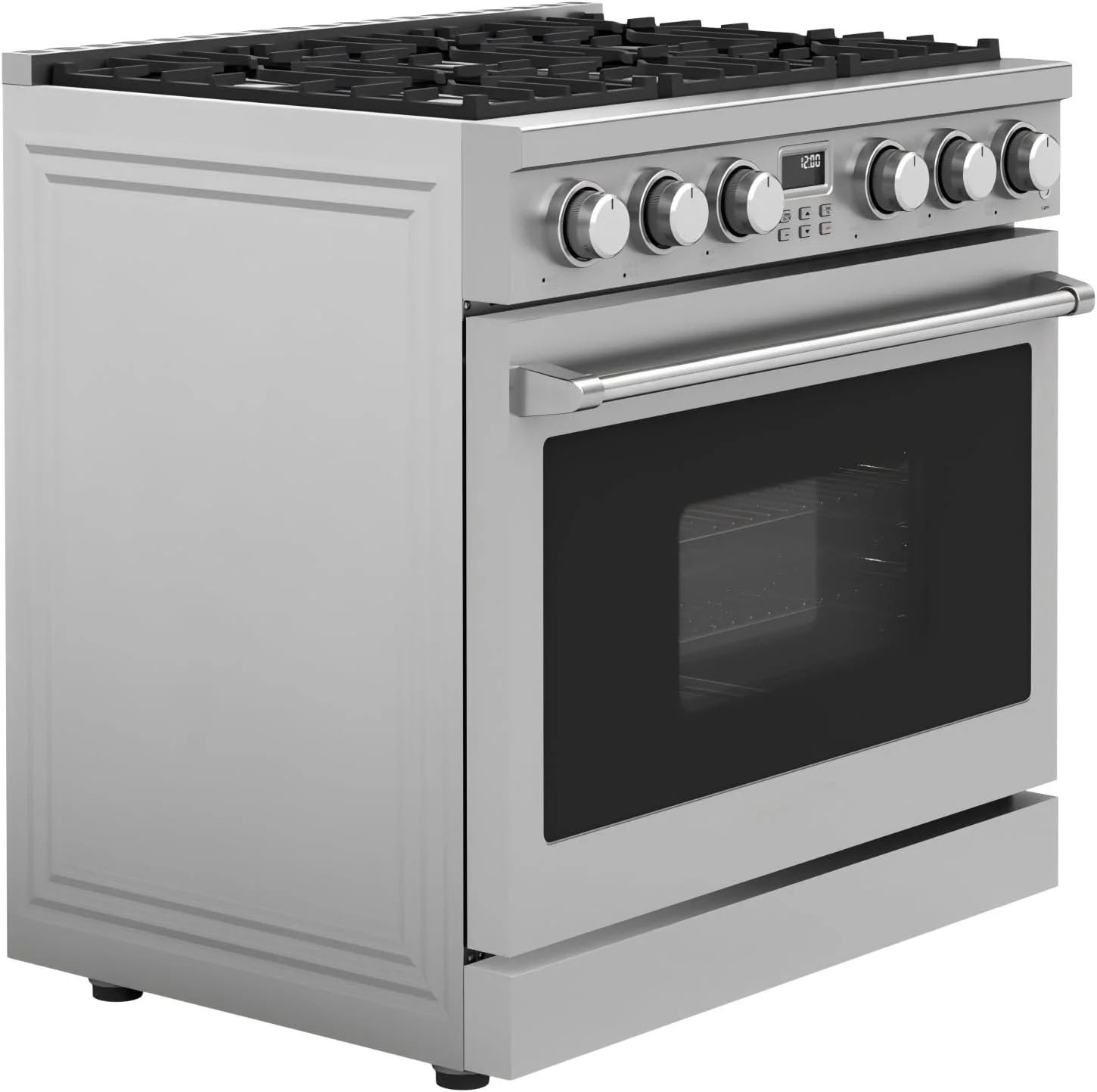 - INCLUDES: Oven Capacity: 36a?? is 6.0 cu. ft. This gas range Overall Dimensions (in): 39.4a?? x 30.3a?? x 45a??, Weight: 258 Lbs. Electric Requirements: 120V/15 or 20A/ 60hz, Natural Gas; Liquid Propane Conversion Kit sold separately.