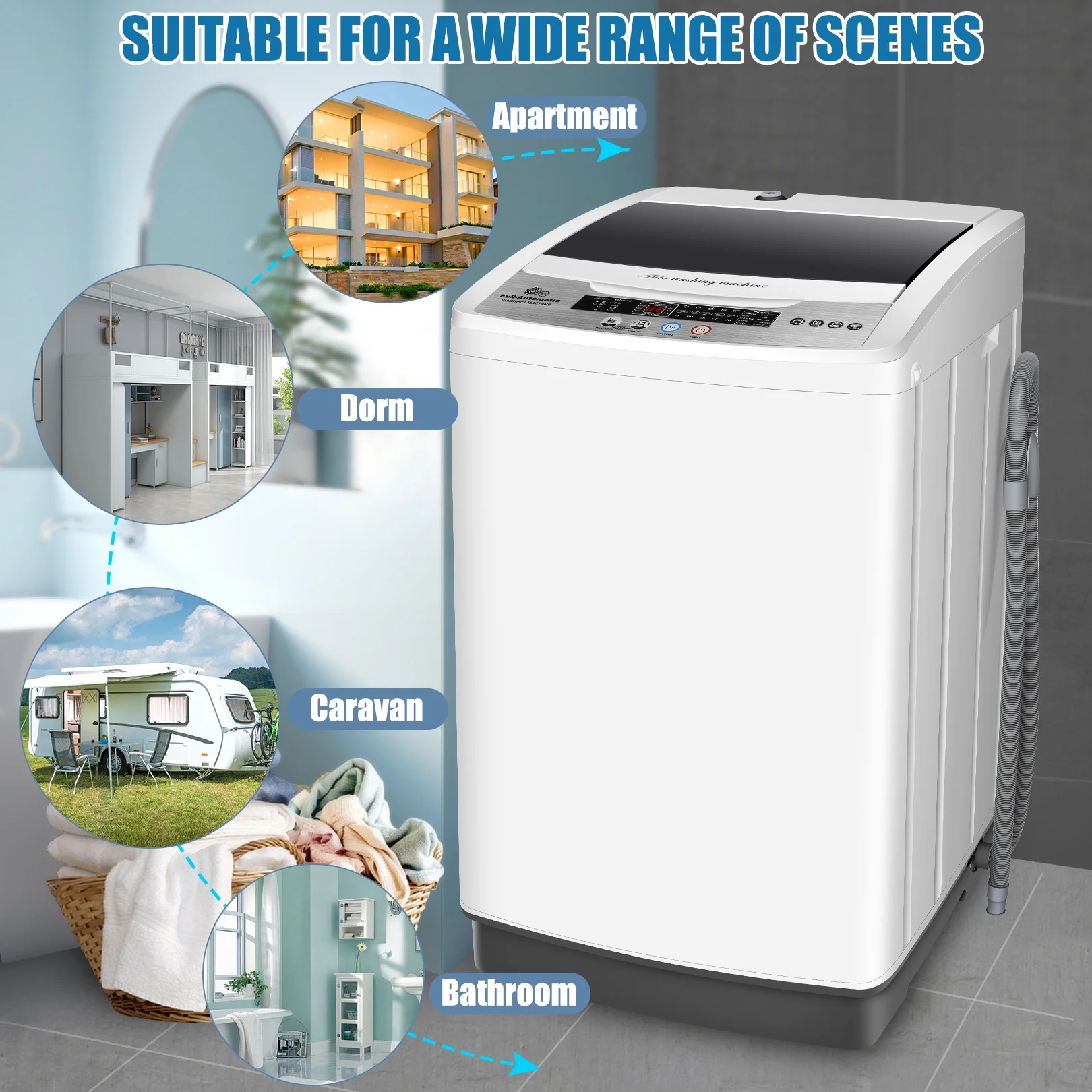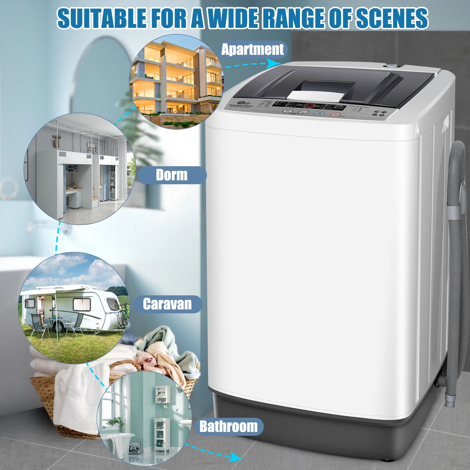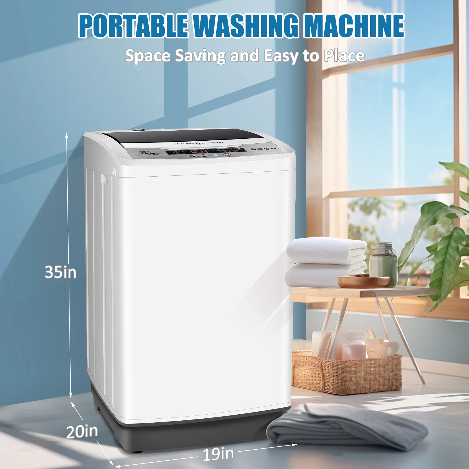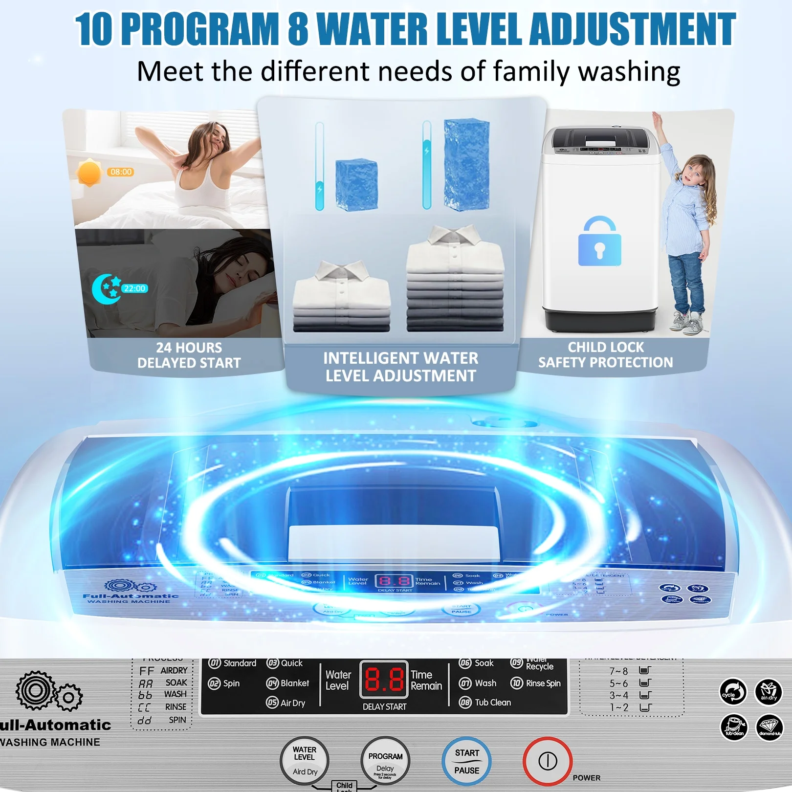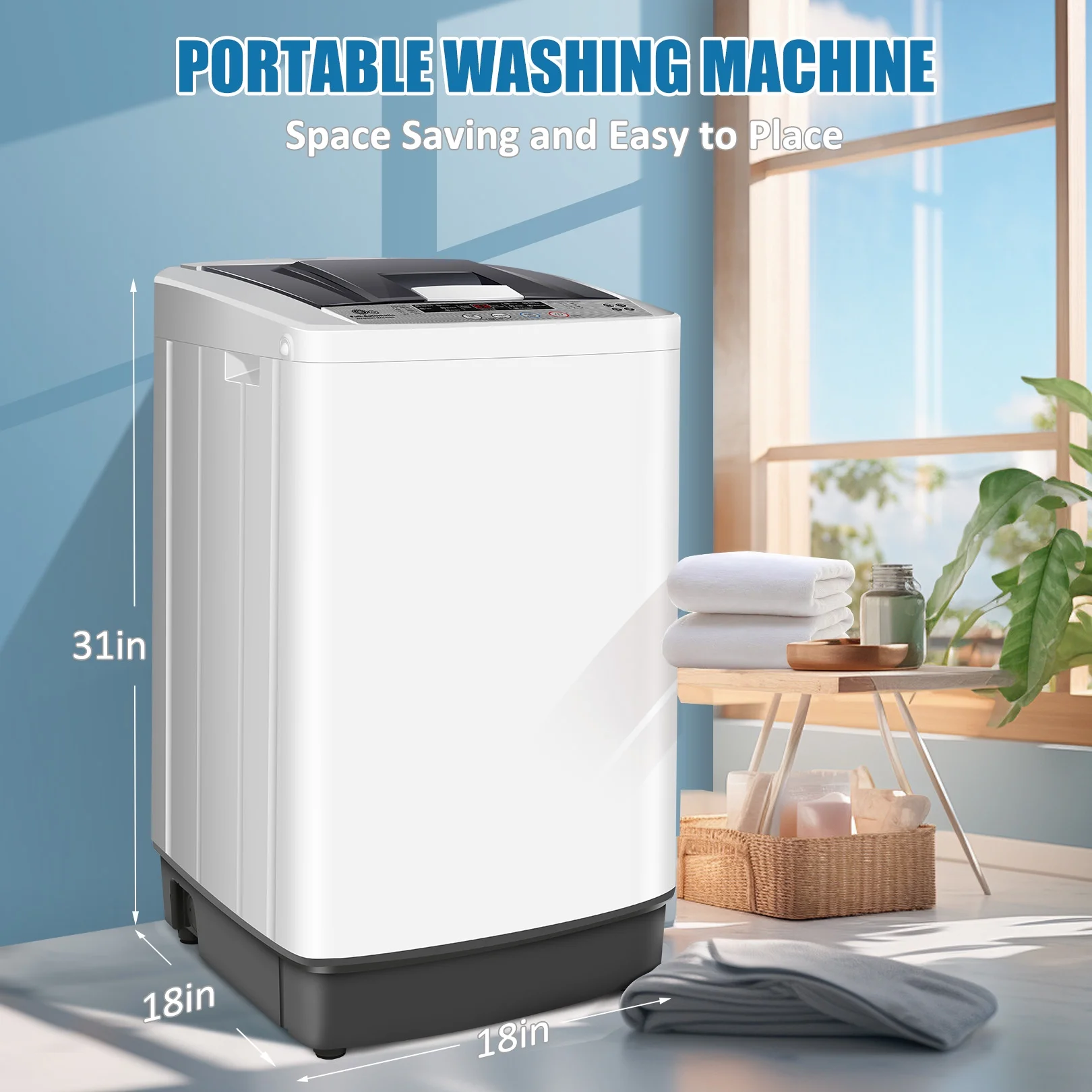 Qhomic Portable Washing Machine, 18.7 lb Full Automatic Compact 10 Programs & 8 Water Levels Washer Machine with Child Lock and LED Display, Low Noise Laundry Wash for Apartments, Rvs, Dorms