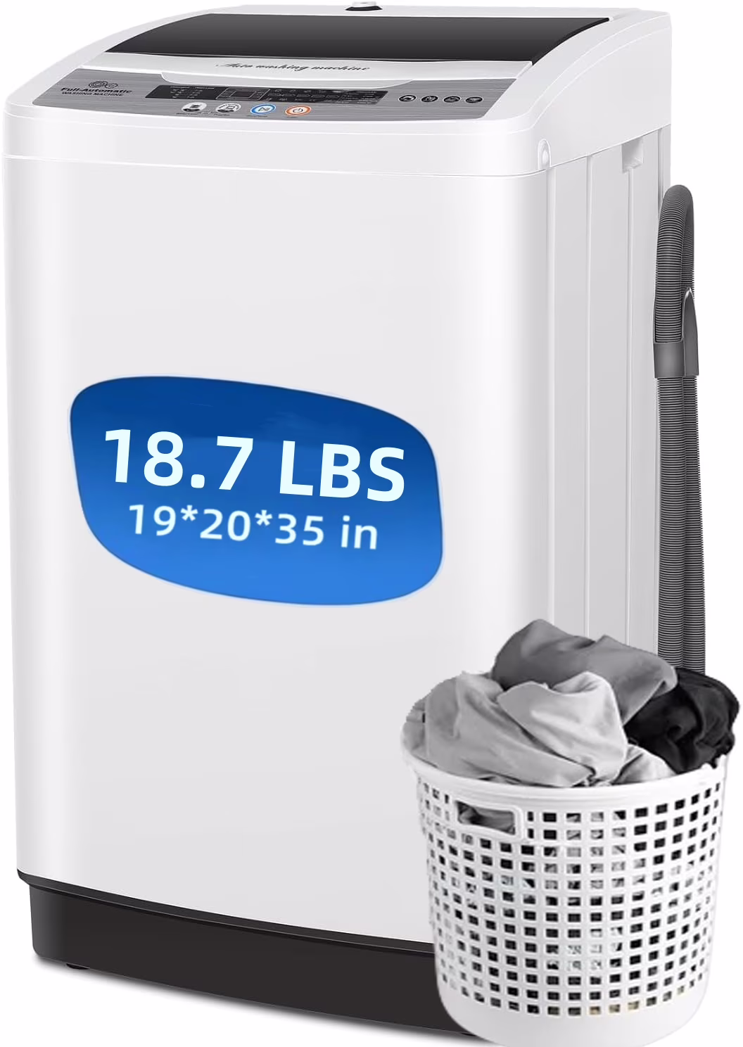 The fully automatic program provides optimal cleaning and rinsing performance, and the washer completes the entire process of washing, drying, and draining independently. The large 18.7 lb. Capacity washer can accommodate your family's laundry needs. This fully automatic washer works anywhere, from RVs, campgrounds, and dorms, to homes, it's perfect for "Surviving" in tight spaces. Say goodbye to carrying piles of dirty laundry up and down the stairs, and say goodbye to hanging and waiting for wet clothes to dry. All you need to do is load your laundry, fill it with water, add detergent, and let it run for clean laundry.