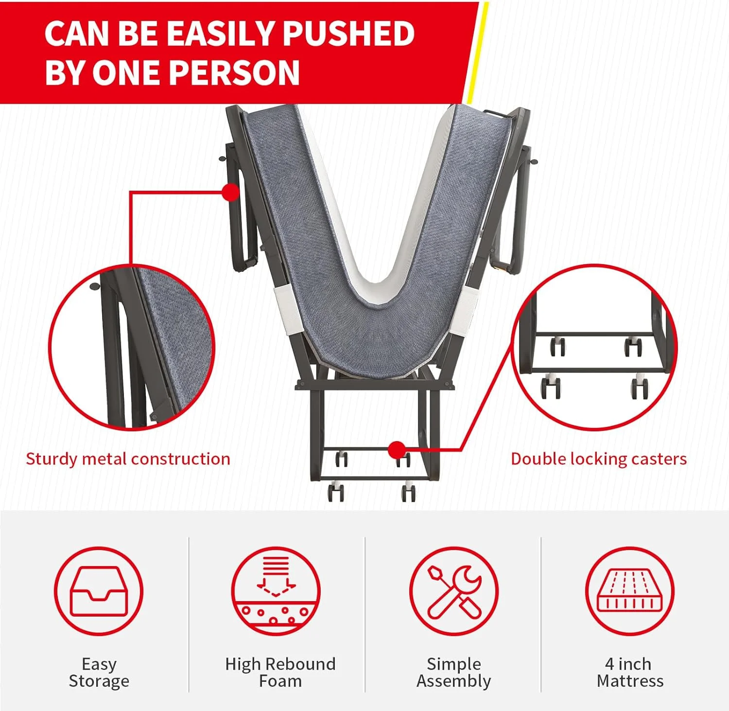 e??????Space-Saving Design???This rollaway bed easily folds from one person. With 4 locking casters that swivel 360 degrees, you can easily transport and store this folding bed anywhere.
