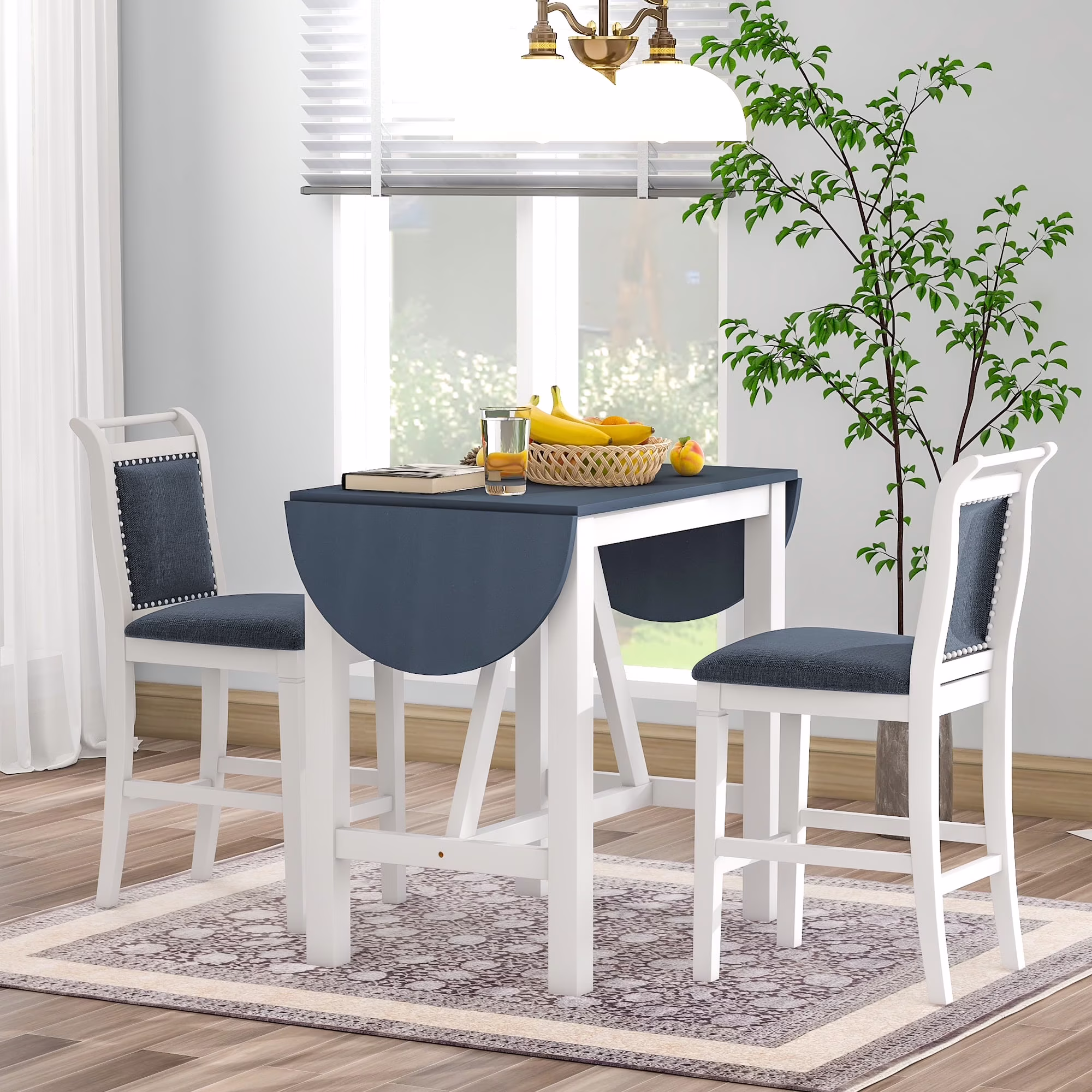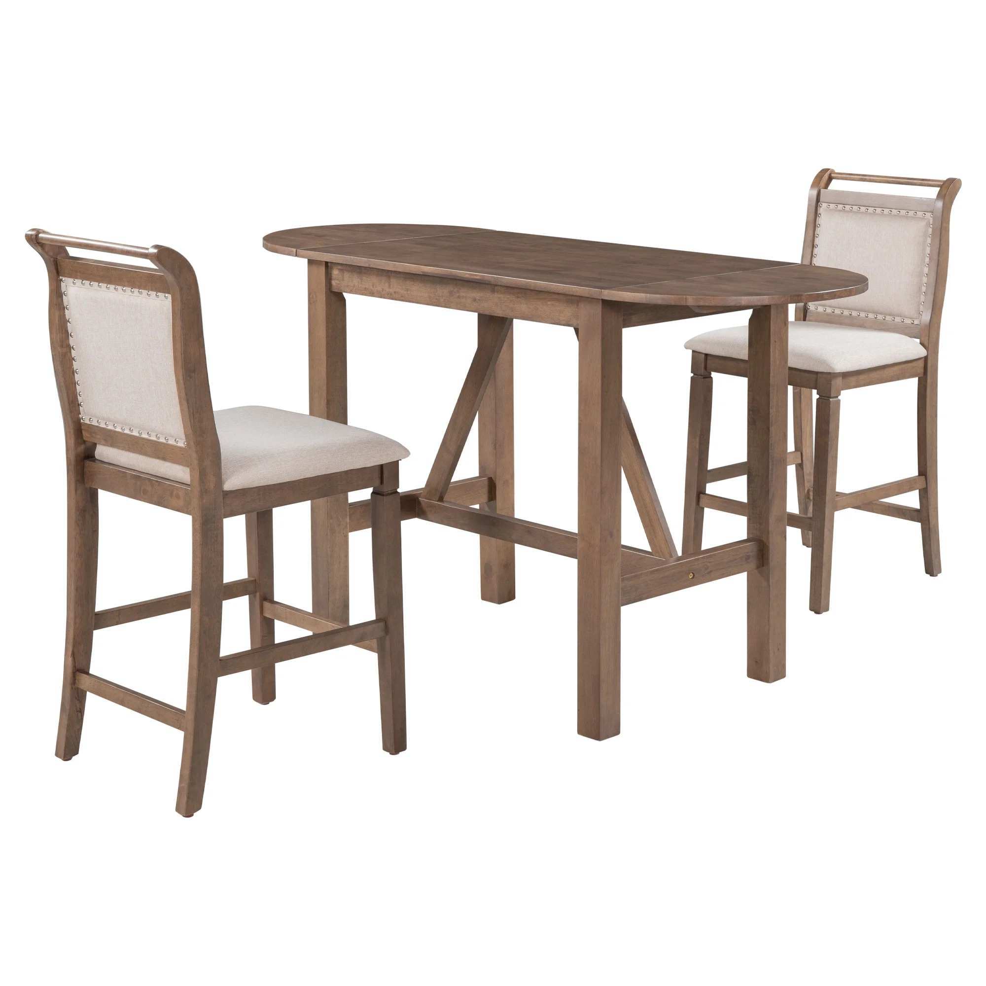 - 【Extendable Drop Leaf Design�?Offer 2 great dining chairs and an attractive kitchen table,this refined dinette set will reinvent your dining room with its extendable drop leaf design. Featured with two foldable half-round sides, this table provides you with the flexibility of creating more living space or eating space as needed.