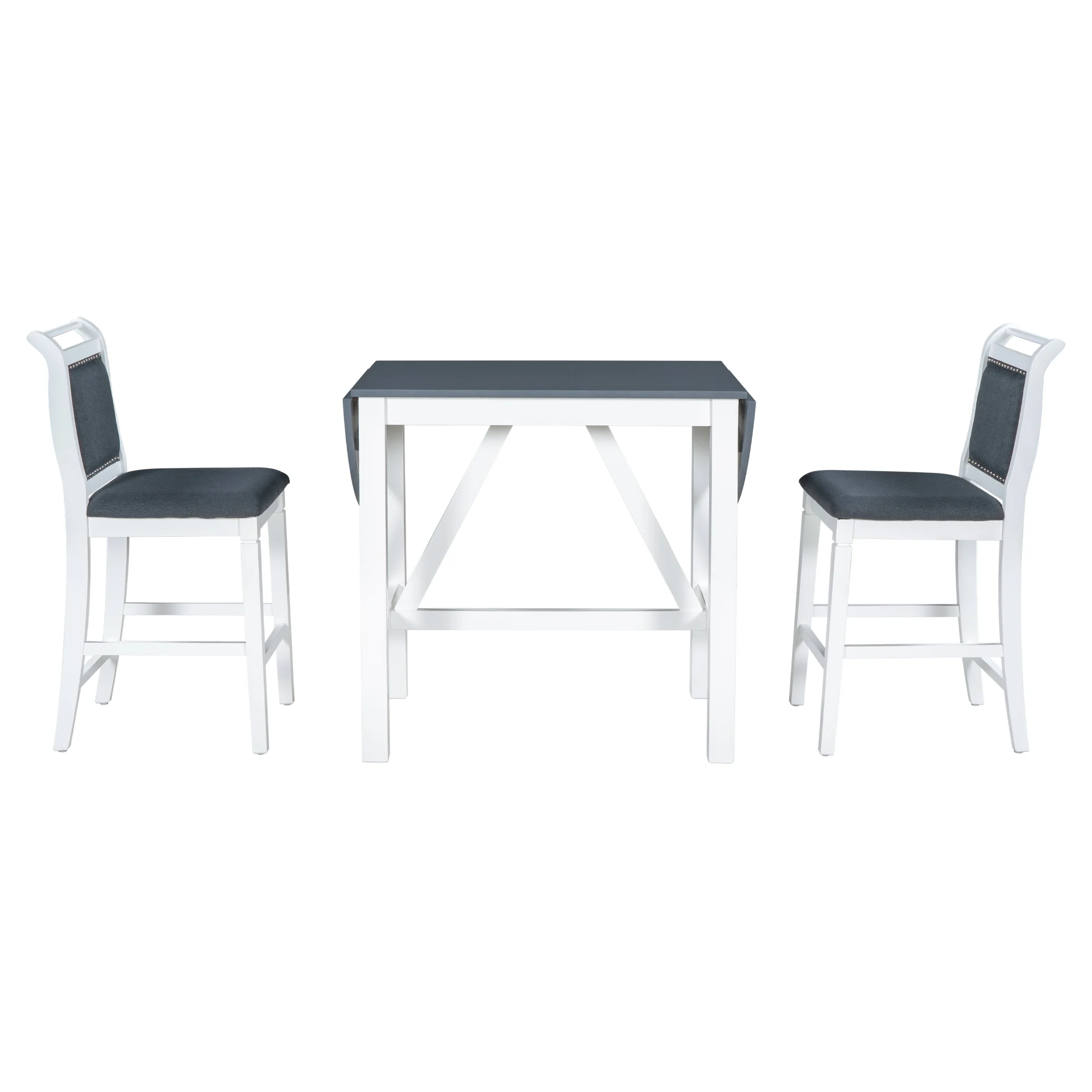 - 【Premium Construction�?Built with solid rubber wood frame, this kitchen set is designed to last for years. The combination of a finished white coating with dark gray cushion is ideal for indoor rustic feelings while the triangular supportive bars and stretcher under table create a sturdy dining experience.