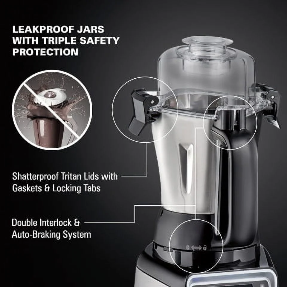- POWERFUL COMMERCIAL-GRADE 2.2 HP MOTOR (1400 WATTS): Built to last, the powerful motor on this mixer-grinder ensures reliable juicing, mixing and grinding performance and resists overheating for uninterrupted use.