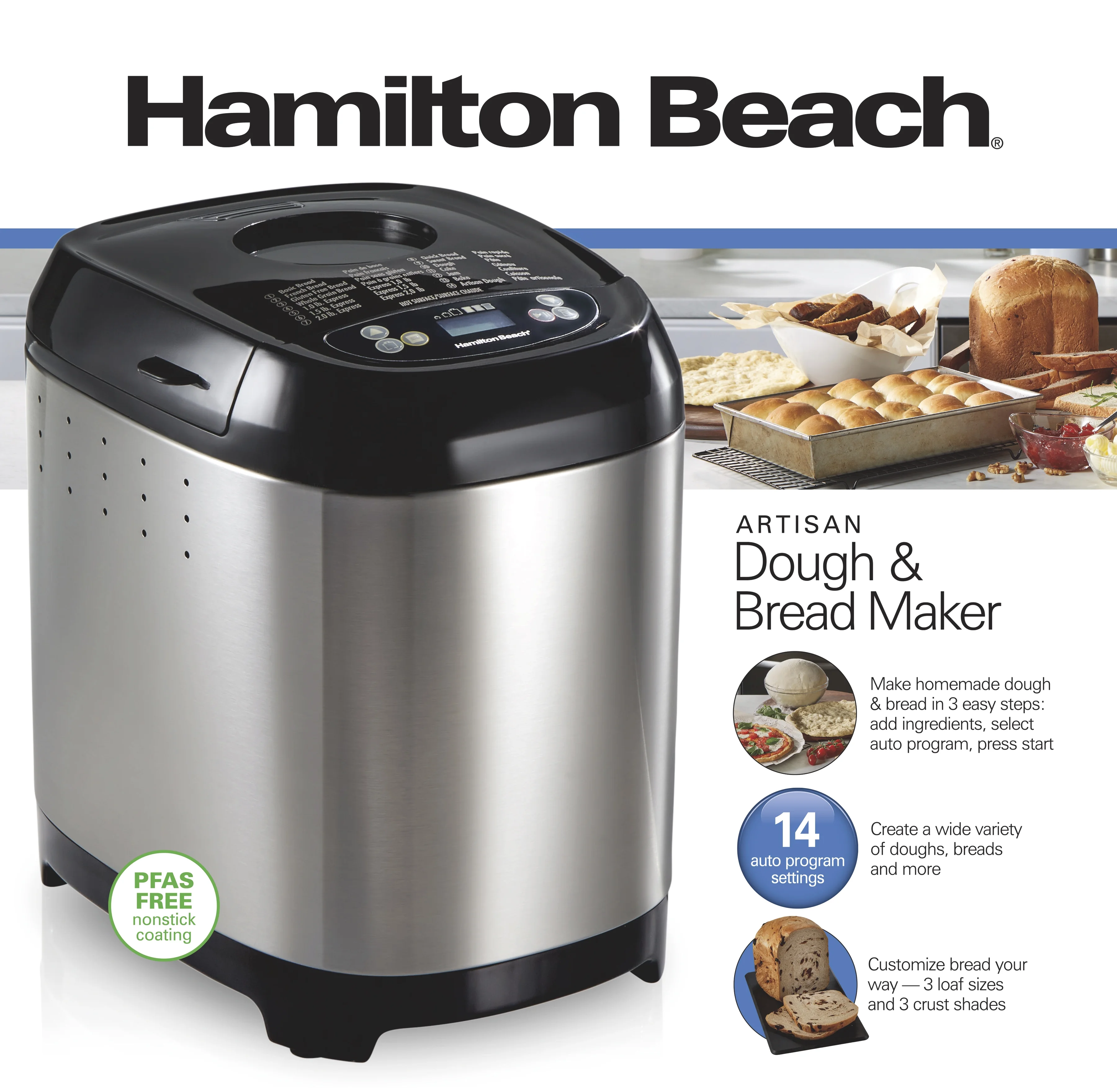 - Easy to Clean: Includes a dishwasher-safe bread pan with PFAS-free, ceramic nonstick coating and kneading paddle for hassle-free cleanup.