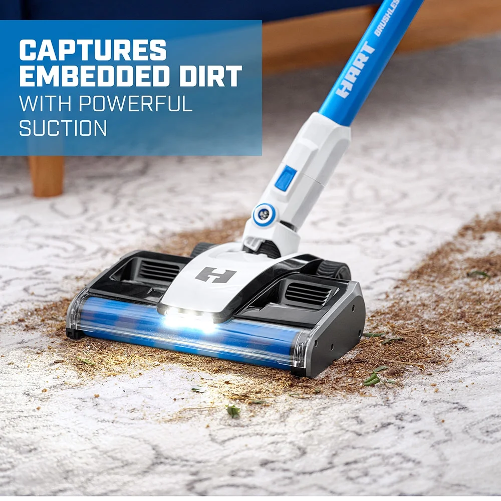 - Cordless stick vacuum with Brushless Motor Technology works efficiently on all surfaces from floor to ceiling
