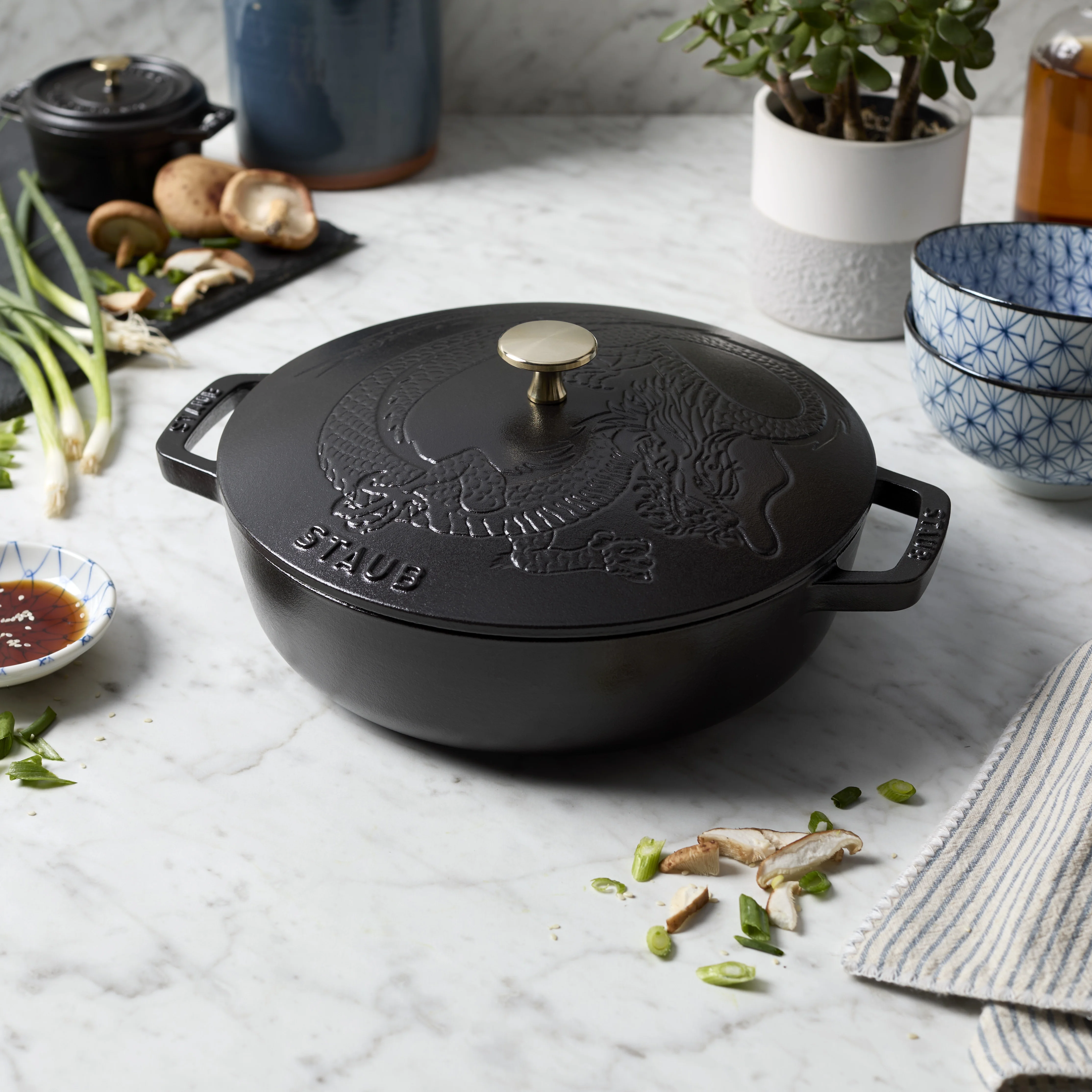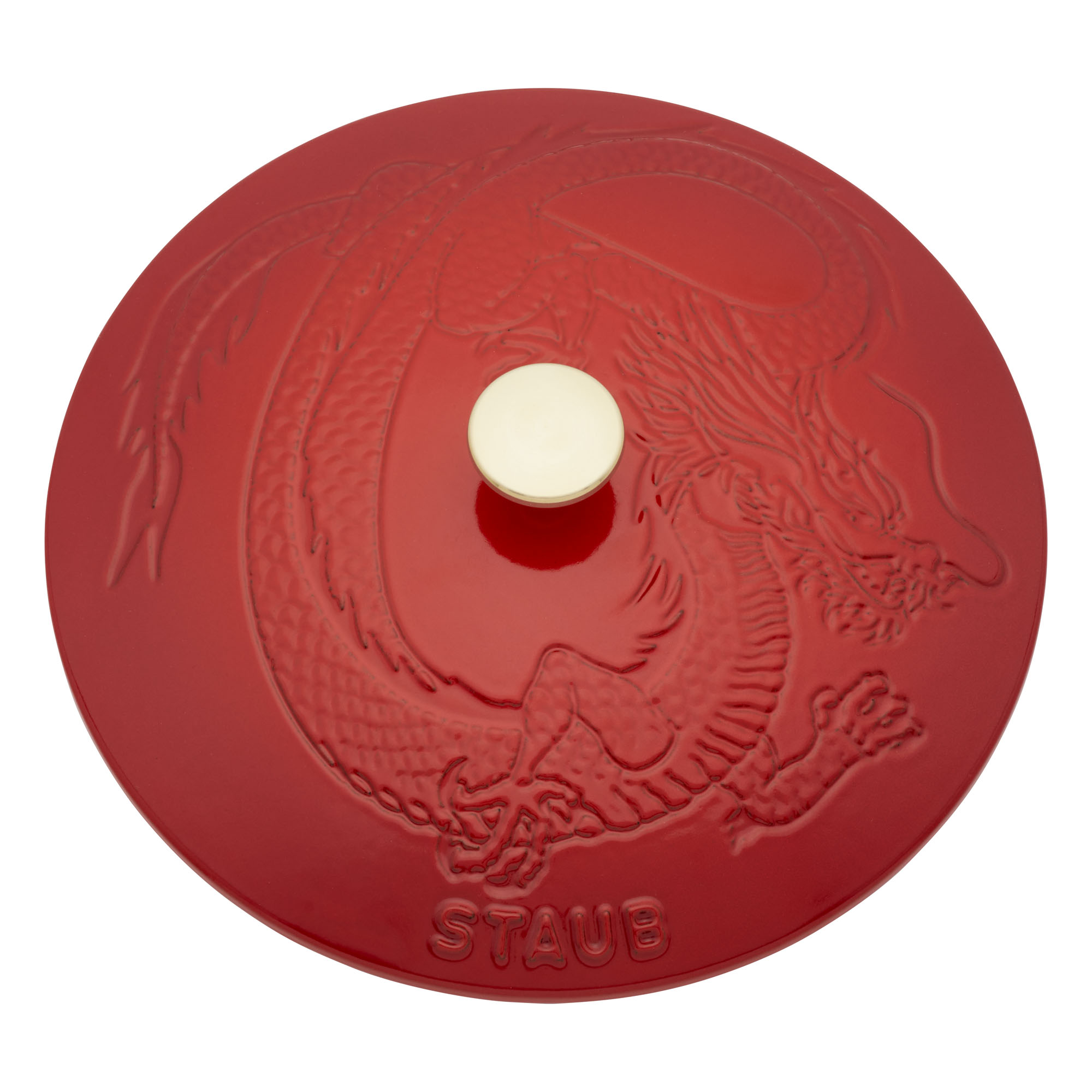 Ignite The Dragon’s fire with this STAUB Braiser featuring an intricate embossed dragon design dotting the lid. The Dragon embraces power, energy, and growth, while the rich, red color represents good luck, fortune, and prosperity. Bring tradition and myth to life—and your table—with this stunning cast iron French oven that’s a perfect addition to any collector’s kitchen.