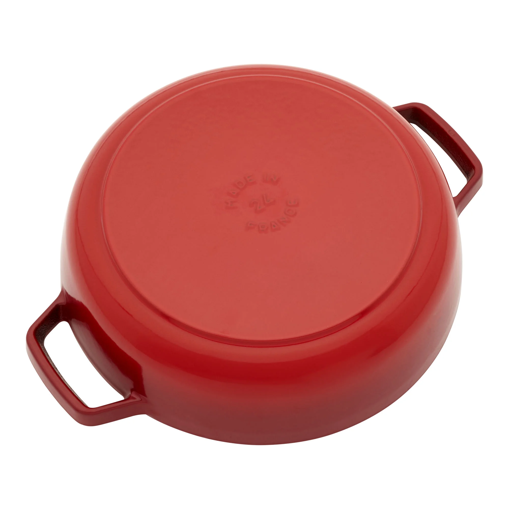 - Cherry red braiser with brass knob