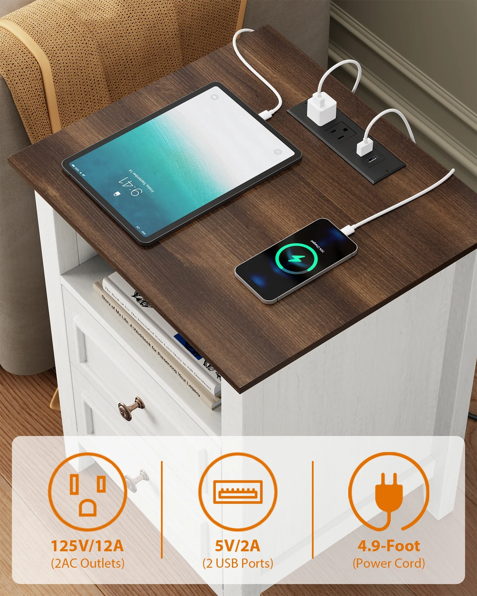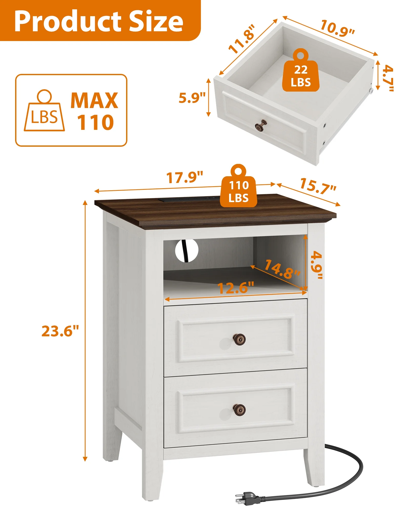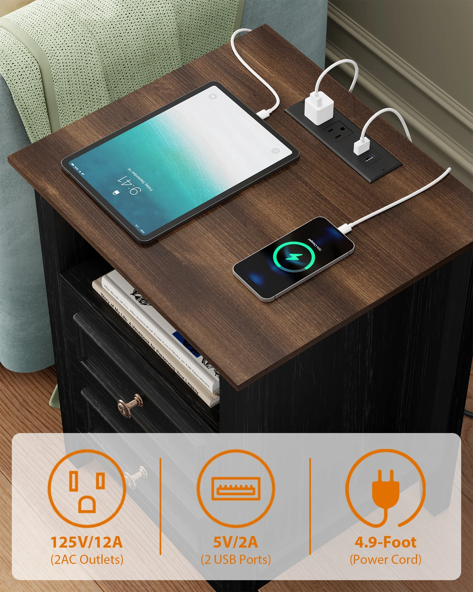 Clever Storage: With 3 deep drawers, this end tables for bedroom provides ample space for all your bedtime essentials. The wide tabletop doubles as a decorative display area for your lamp, alarm clock, or personal items like photos or plants.