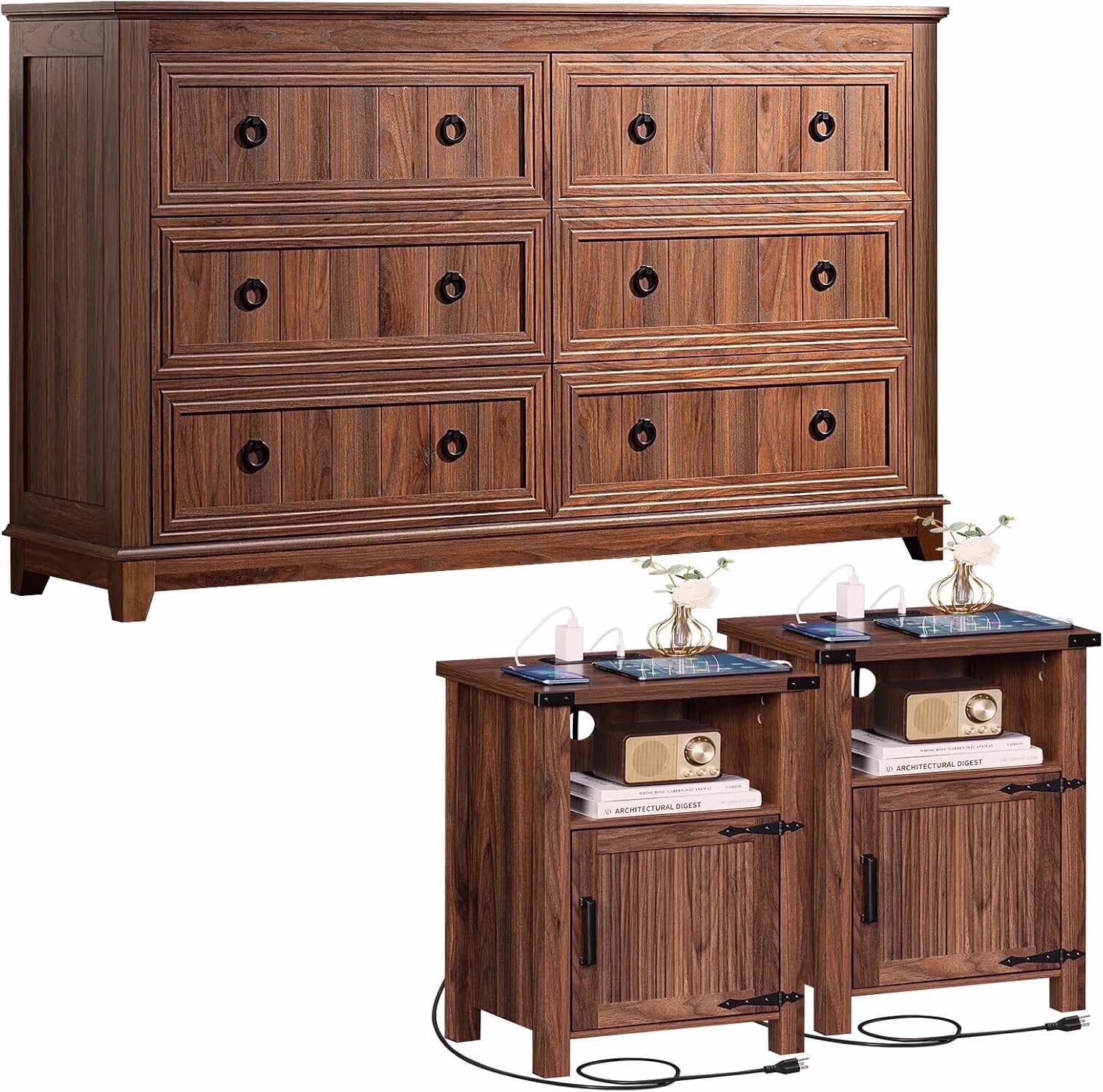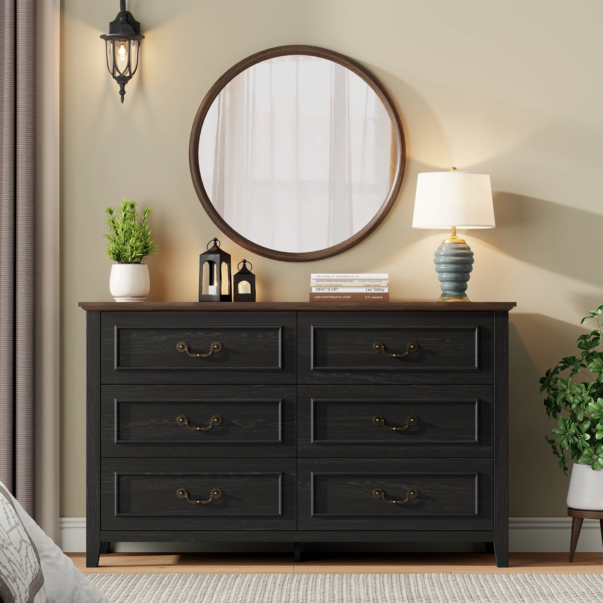 Rustic Charm & Functionality: This 6-drawer dresser blends vintage farmhouse style with modern practicality. The weathered oak finish and thick plank details create a rustic, warm look, while the antiqued metal handles add an elegant touch, making it a standout piece in any room.