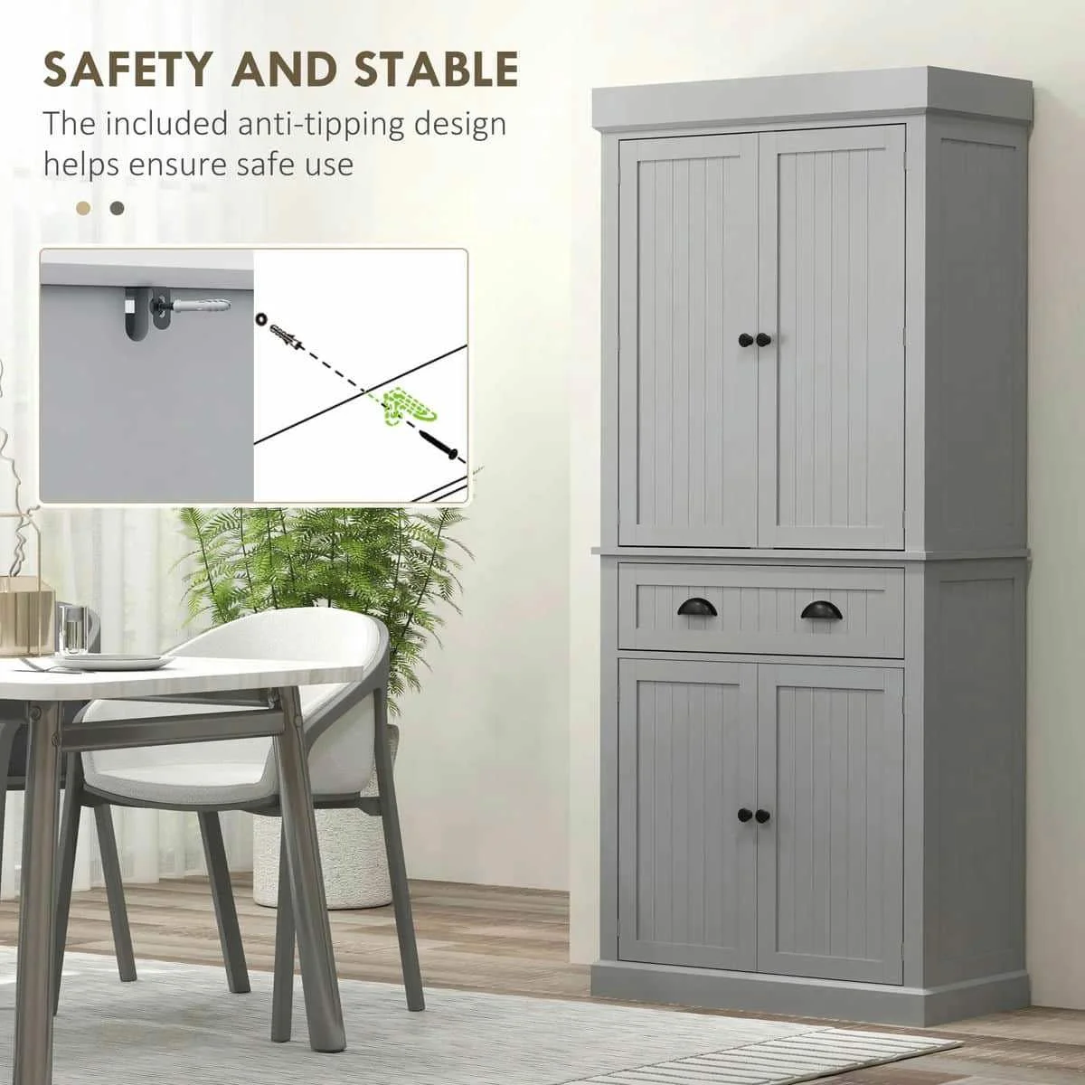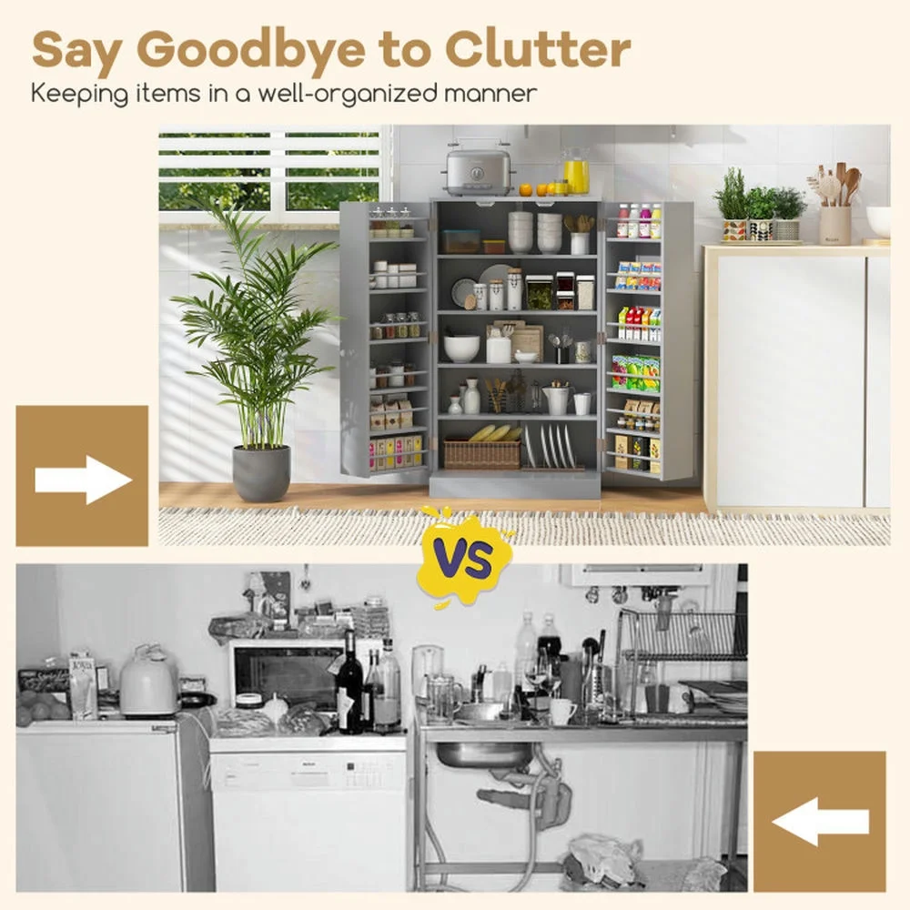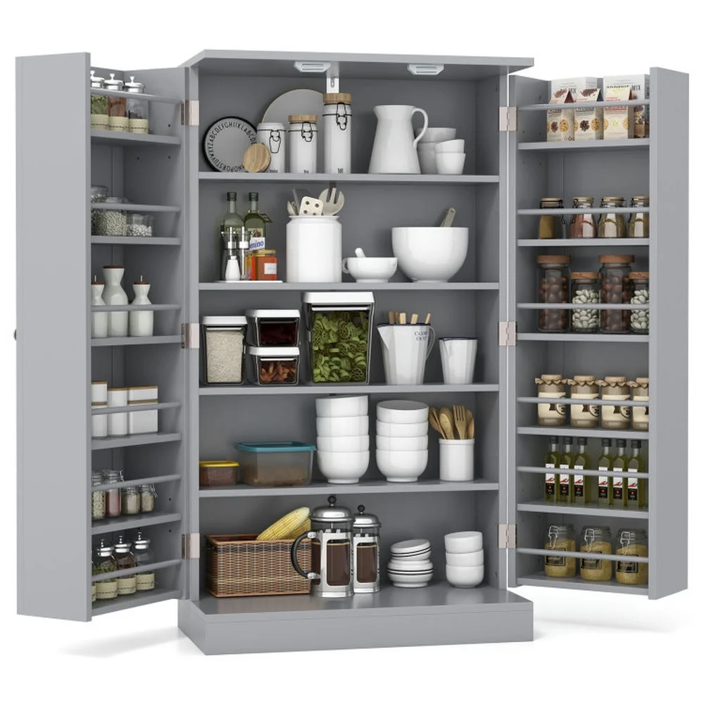 Spaco 17-Tier Kitchen Small Pantry Cabinet with 2 Doors and 6 Adjustable Shelves, Cabinet Pantry, Freestanding 5-Tier Shelving Pantries for Kitchen Storage, Gray
