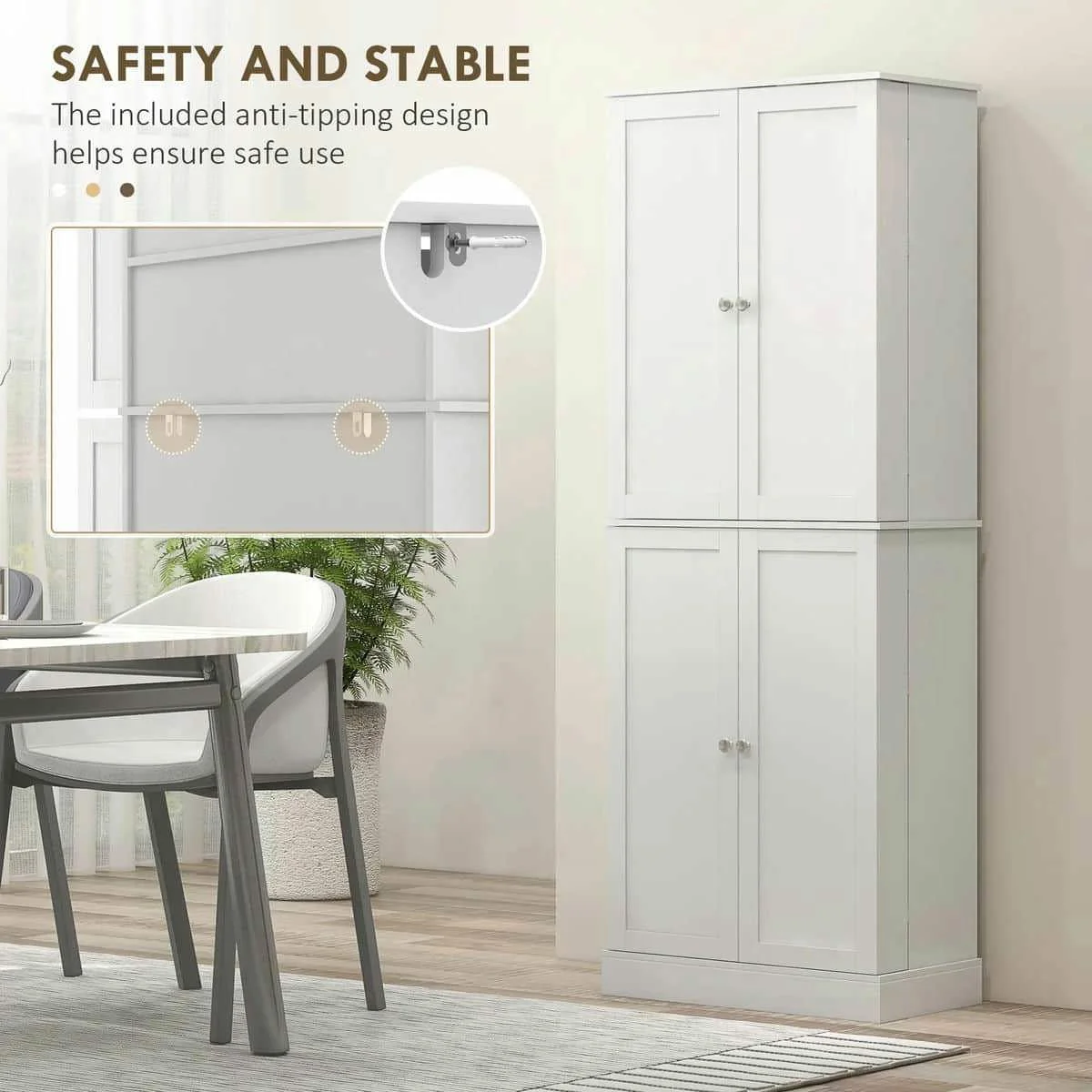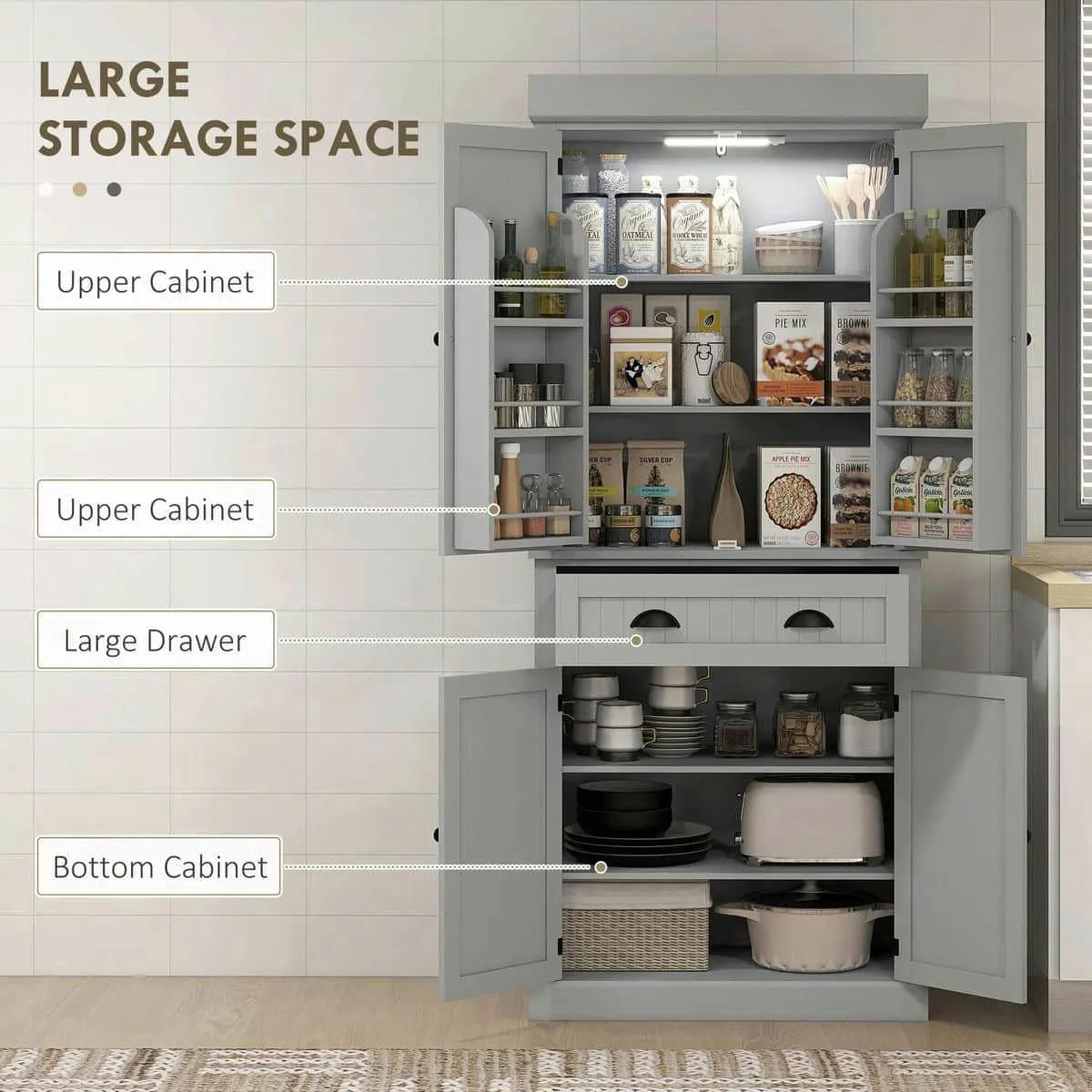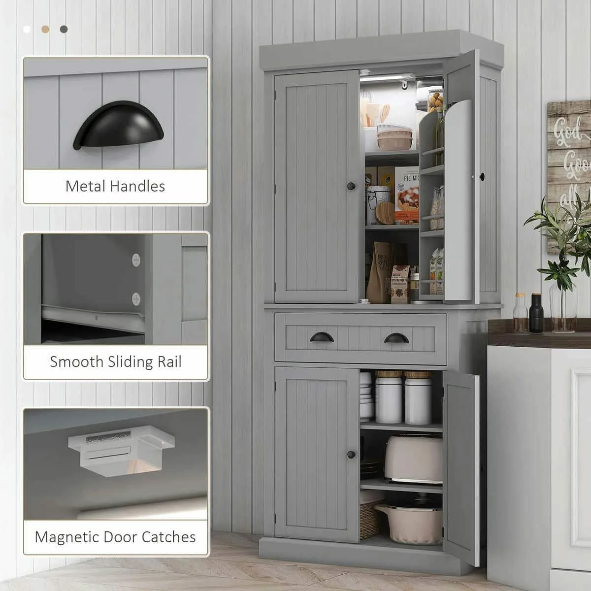 - Stylish Appearance: The polished and painted surface has a distinctive shine when illuminated by light making the kitchen cupboard look more exquisite. Meanwhile, its all-white appearance greatly increases the versatility in terms of decorating styles. Whether it's a modern or vintage style, the portable pantry for small space can fit in perfectly.