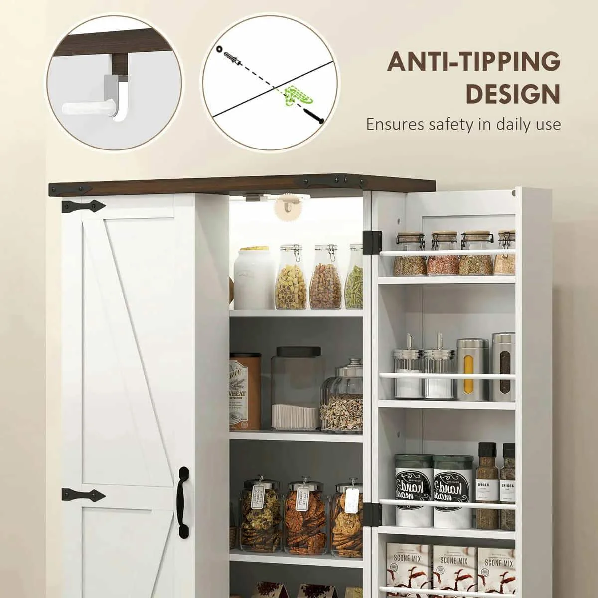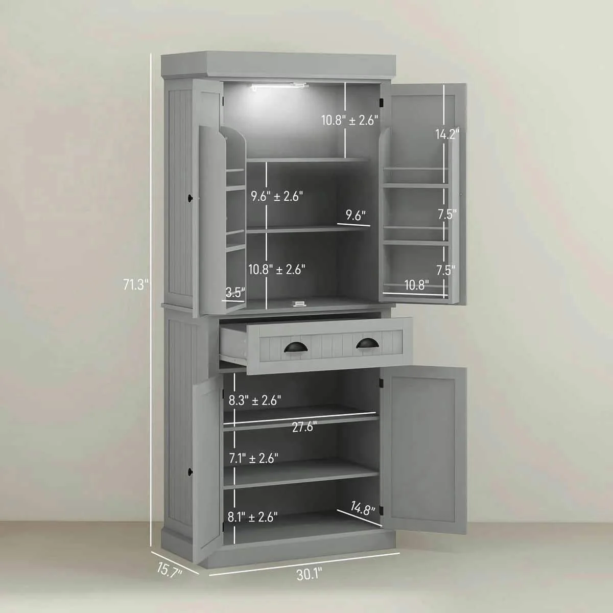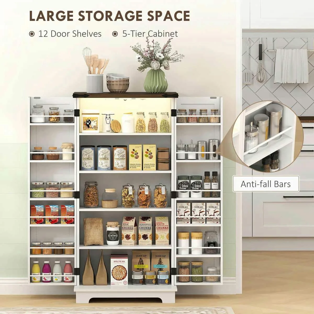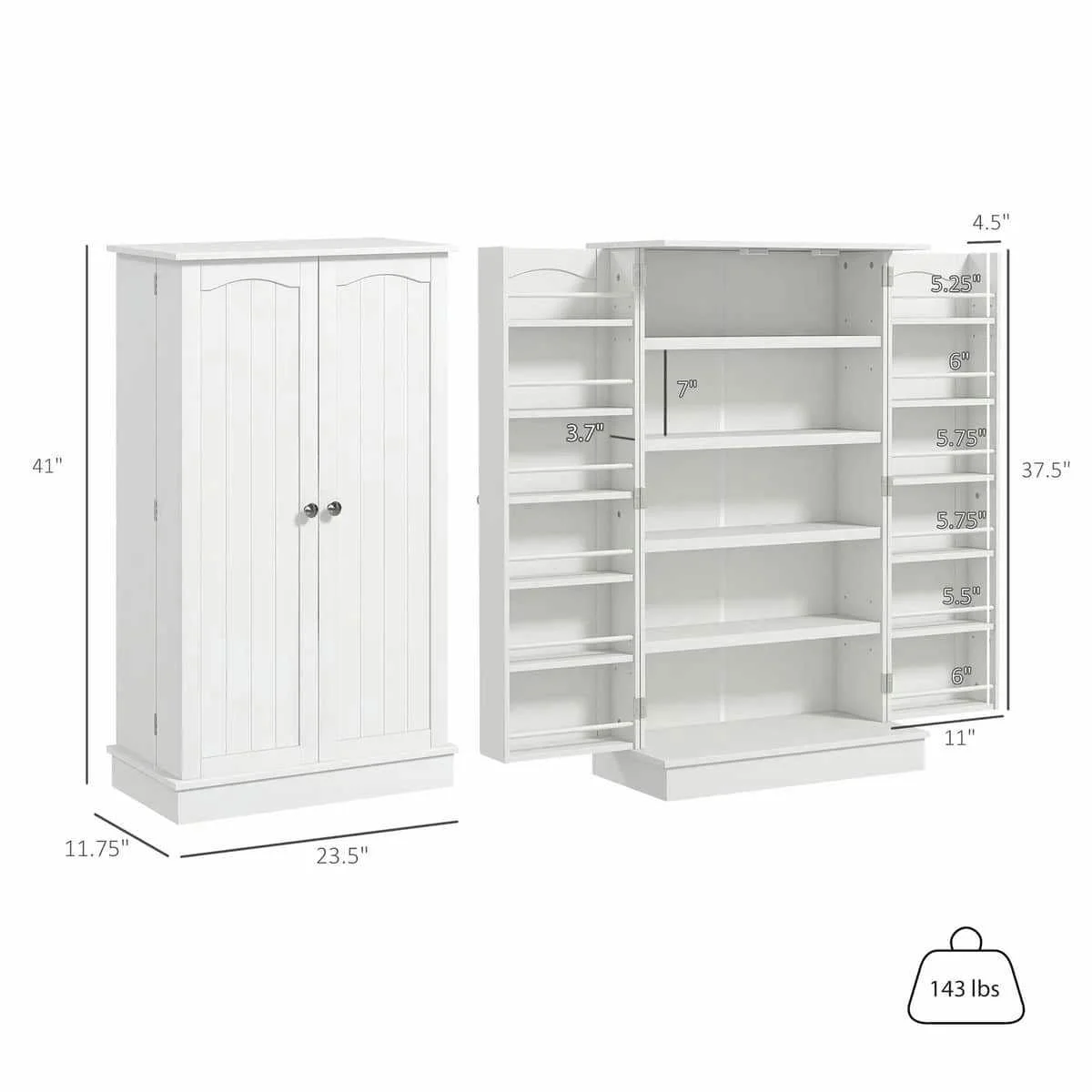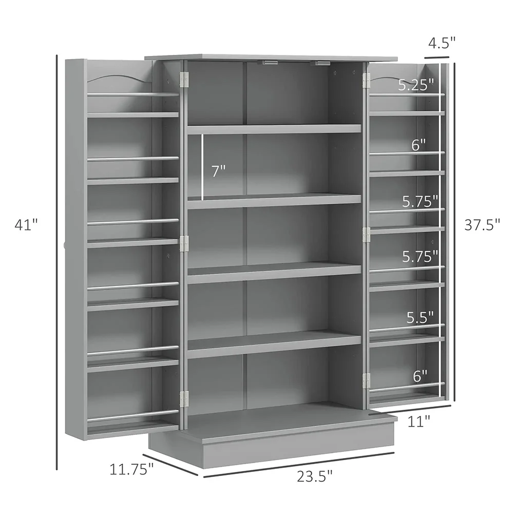 - Multi-Tier Design: Undoubtedly, mini pantry with multi-tier shelved design is a good way to extend storage space and sort diverse items. With two 6-tier shelves and a 5-layer compartment, the small pantry cabinet offers great hidden storage space. Plus, six 3-position adjustable shelves are evenly located inside for customized arrangement.