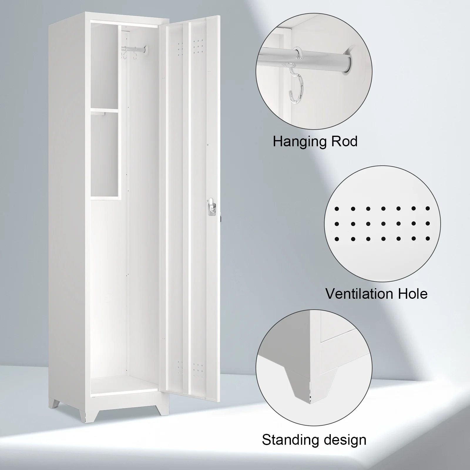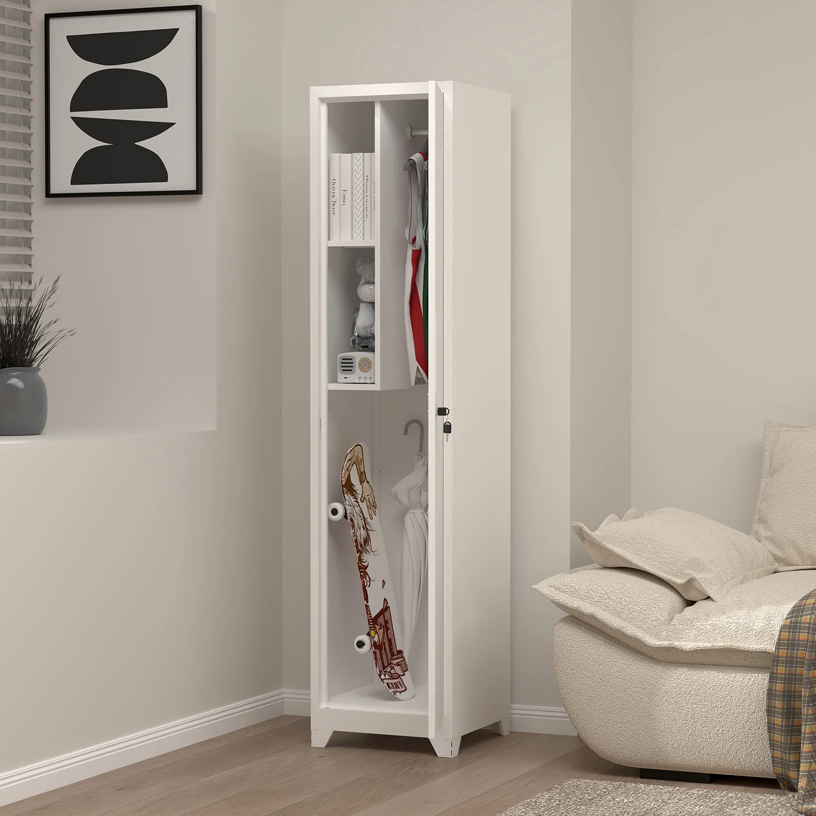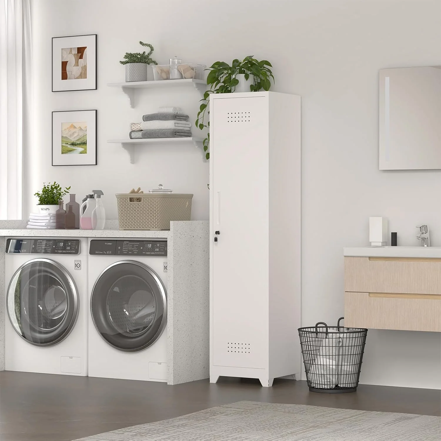Marcree Slim Broom Storage Cabinet, Metal Cabinet with Shelves and Hanging Rod, 65" Utility Storage Cabinet with Locking Door, Tall Cleaning Storage Cabinet for Kitchen, Pantry, Office, Shop, Garage