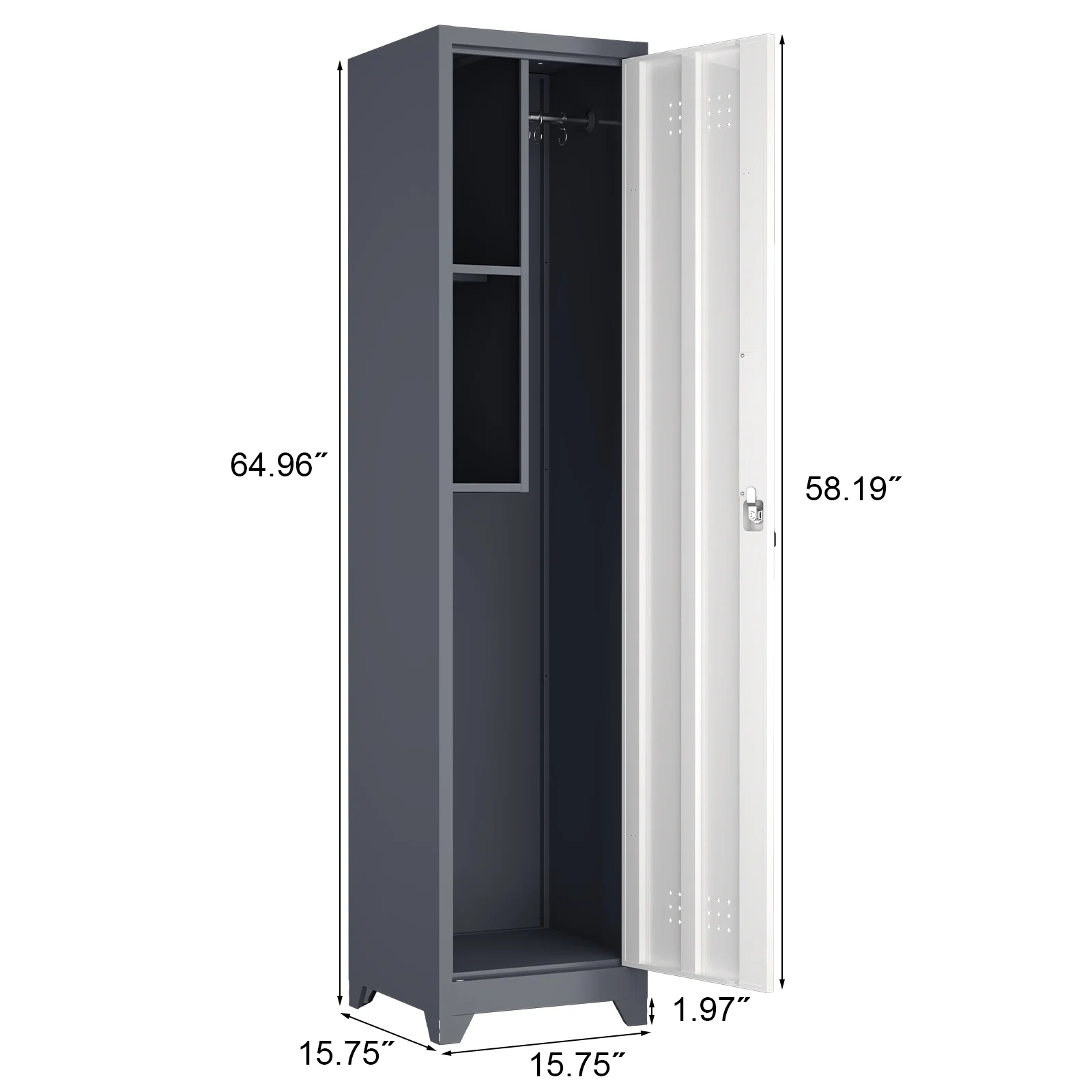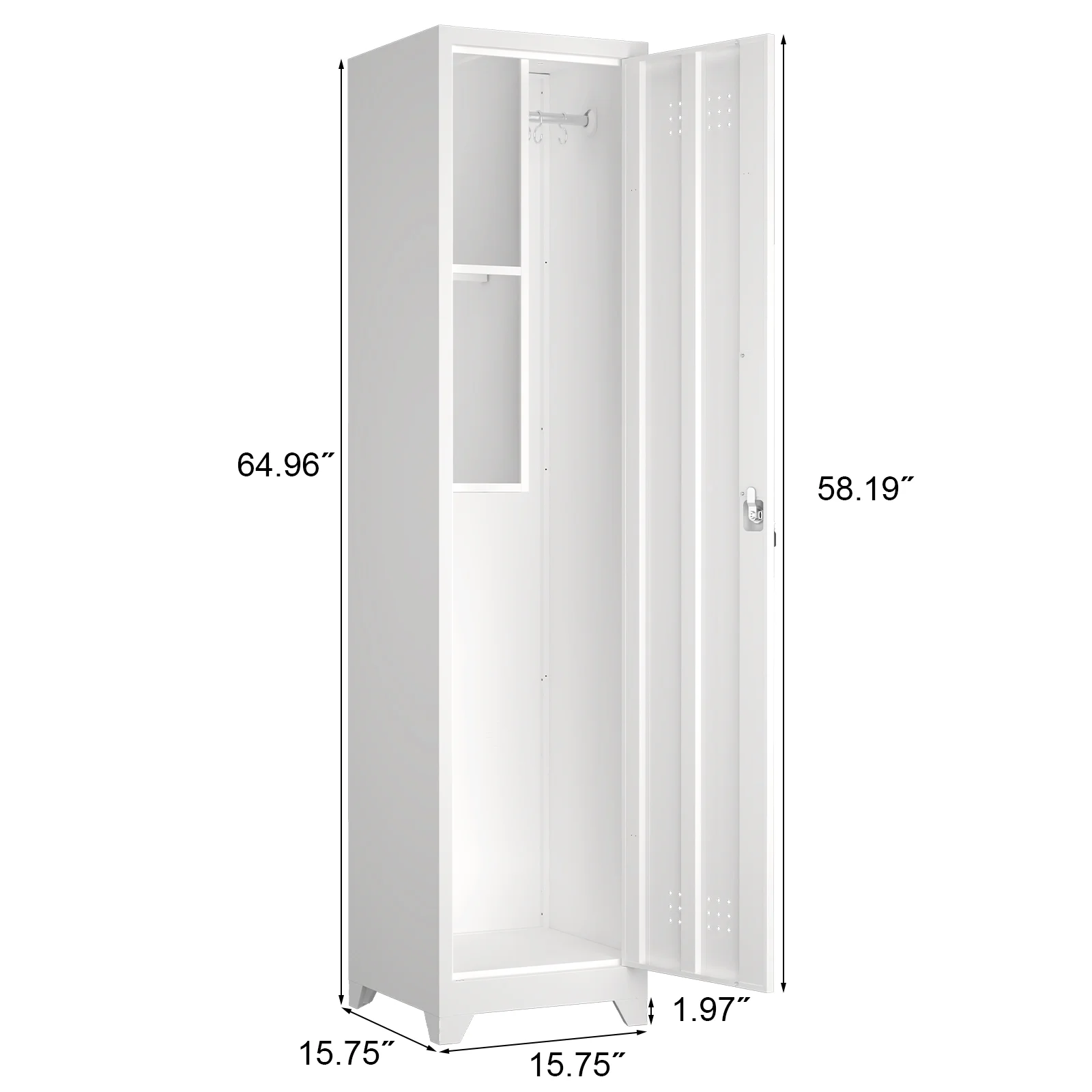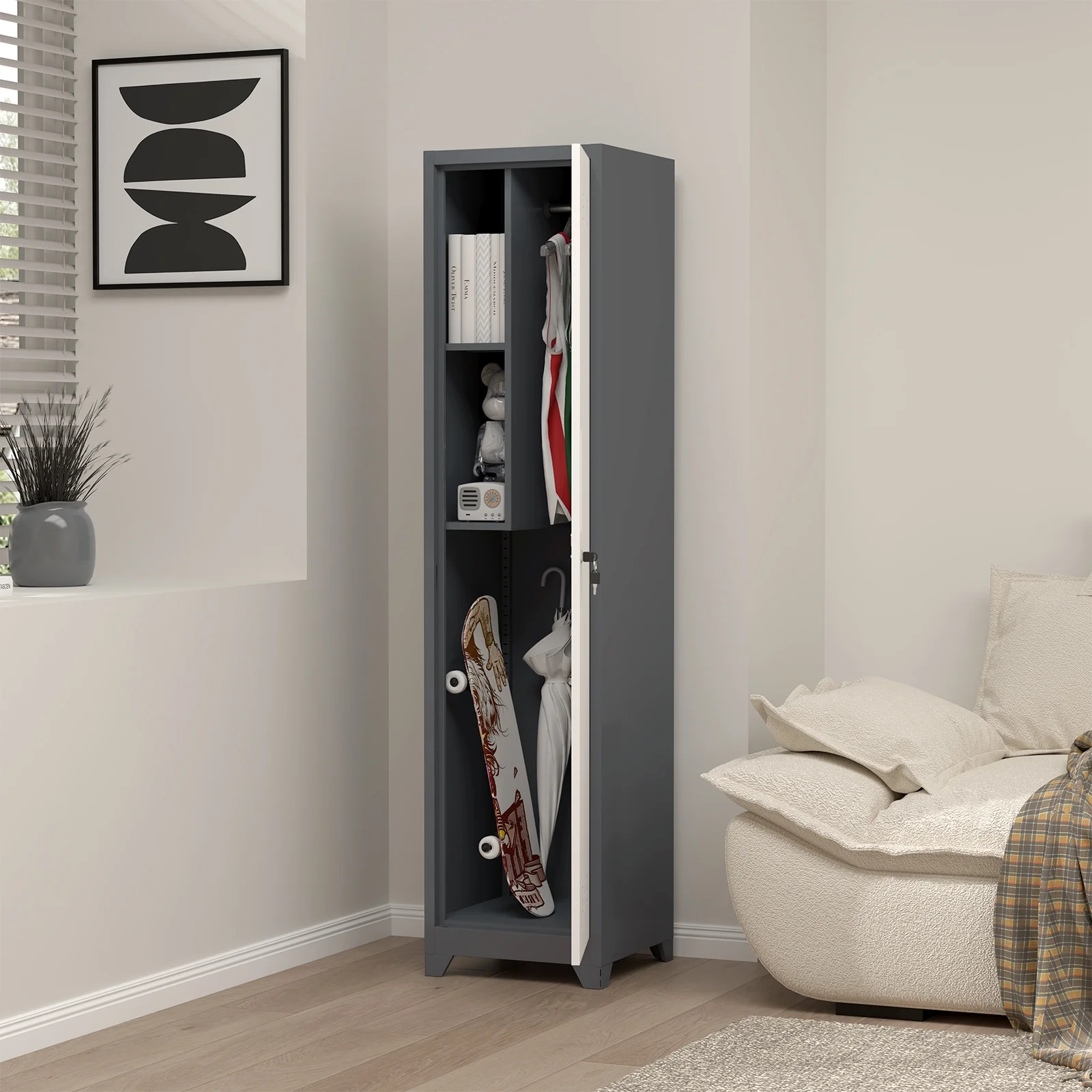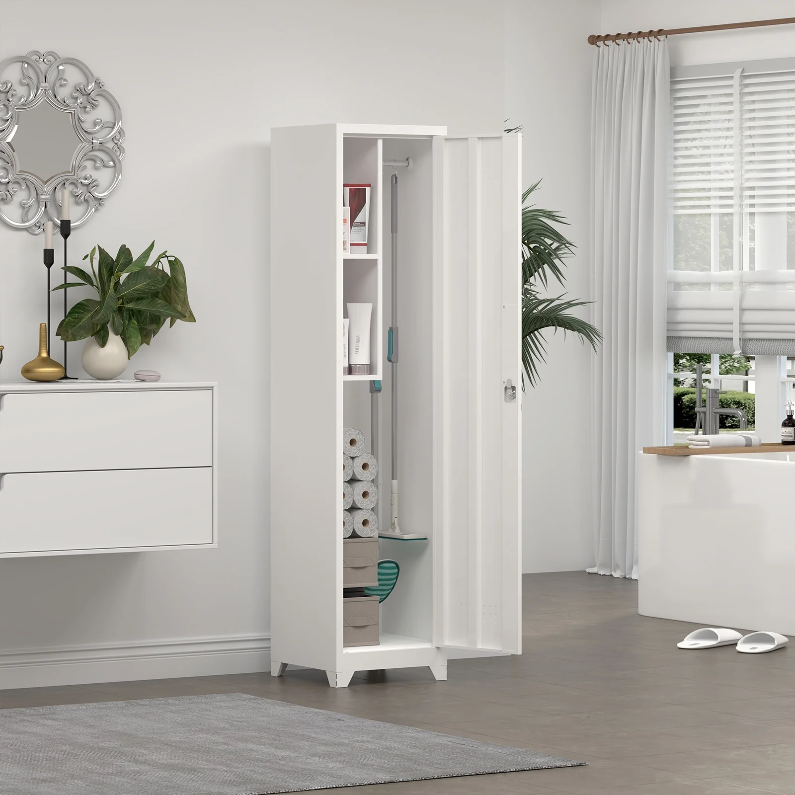 Slim Broom Storage Cabinet, Metal Cabinet with Shelves and Hanging Rod, 65" Utility Storage Cabinet with Locking Door, Tall Cleaning Storage Cabinet for Kitchen, Pantry, Office, Shop, Garage