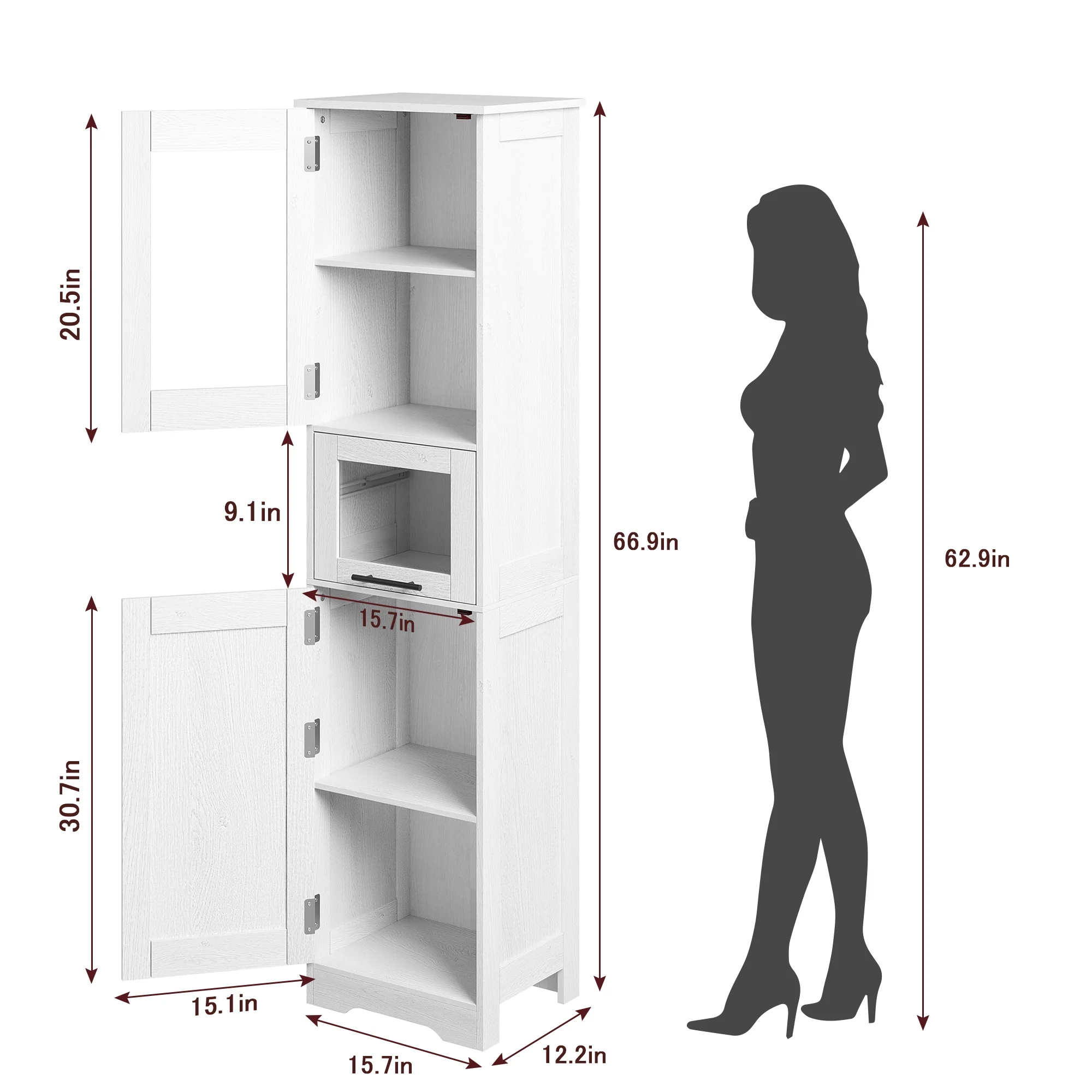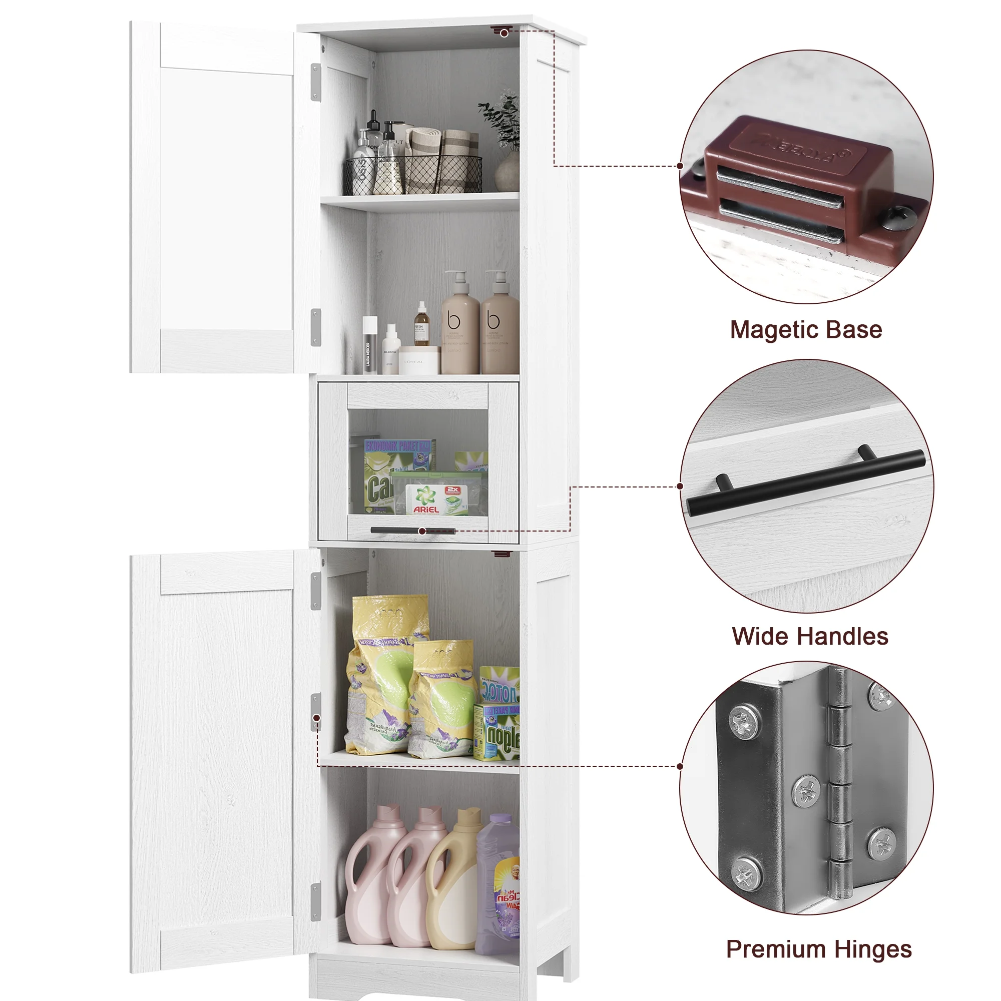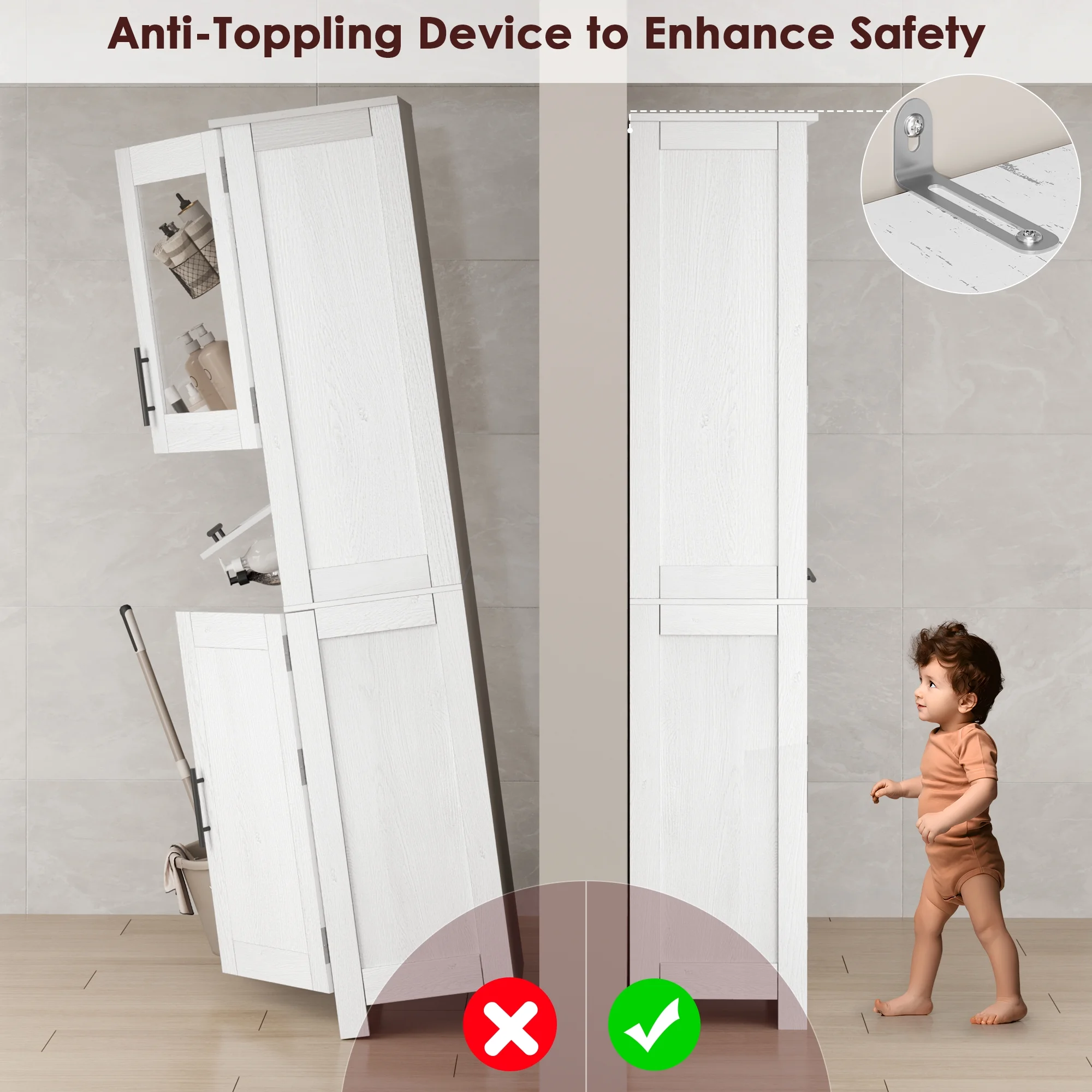 - PREMIUM MATERIALS & SAFE - Crafted from upgraded high-density MDF board with eco-friendly, waterproof paint, this tall bathroom cabinet stands for its durability and sturdiness even in wet environments. With excellent craftsmanship and an added anti-tip device, safety and stability are guaranteed for long-term use.