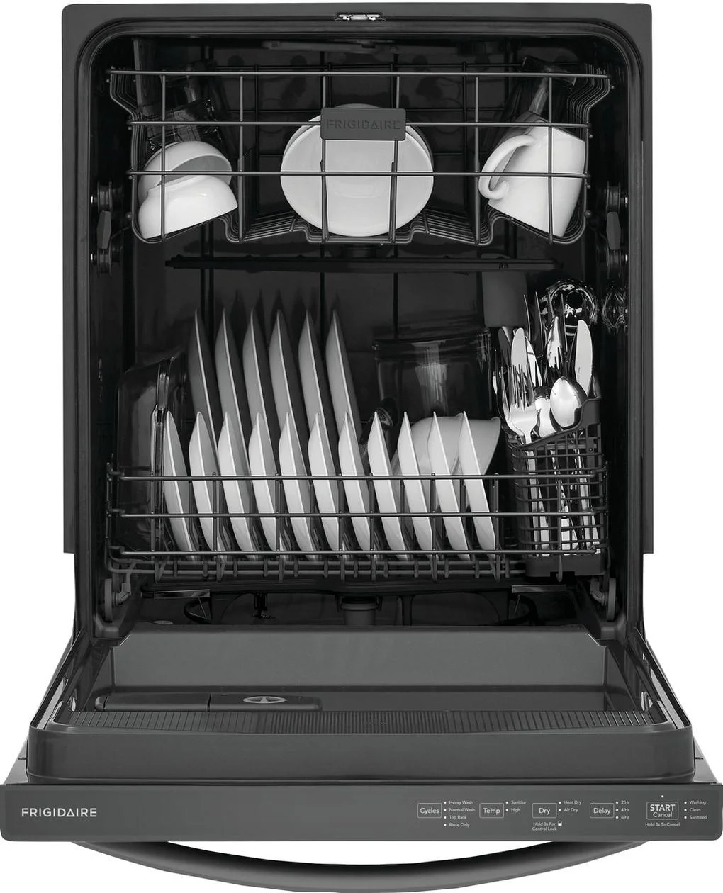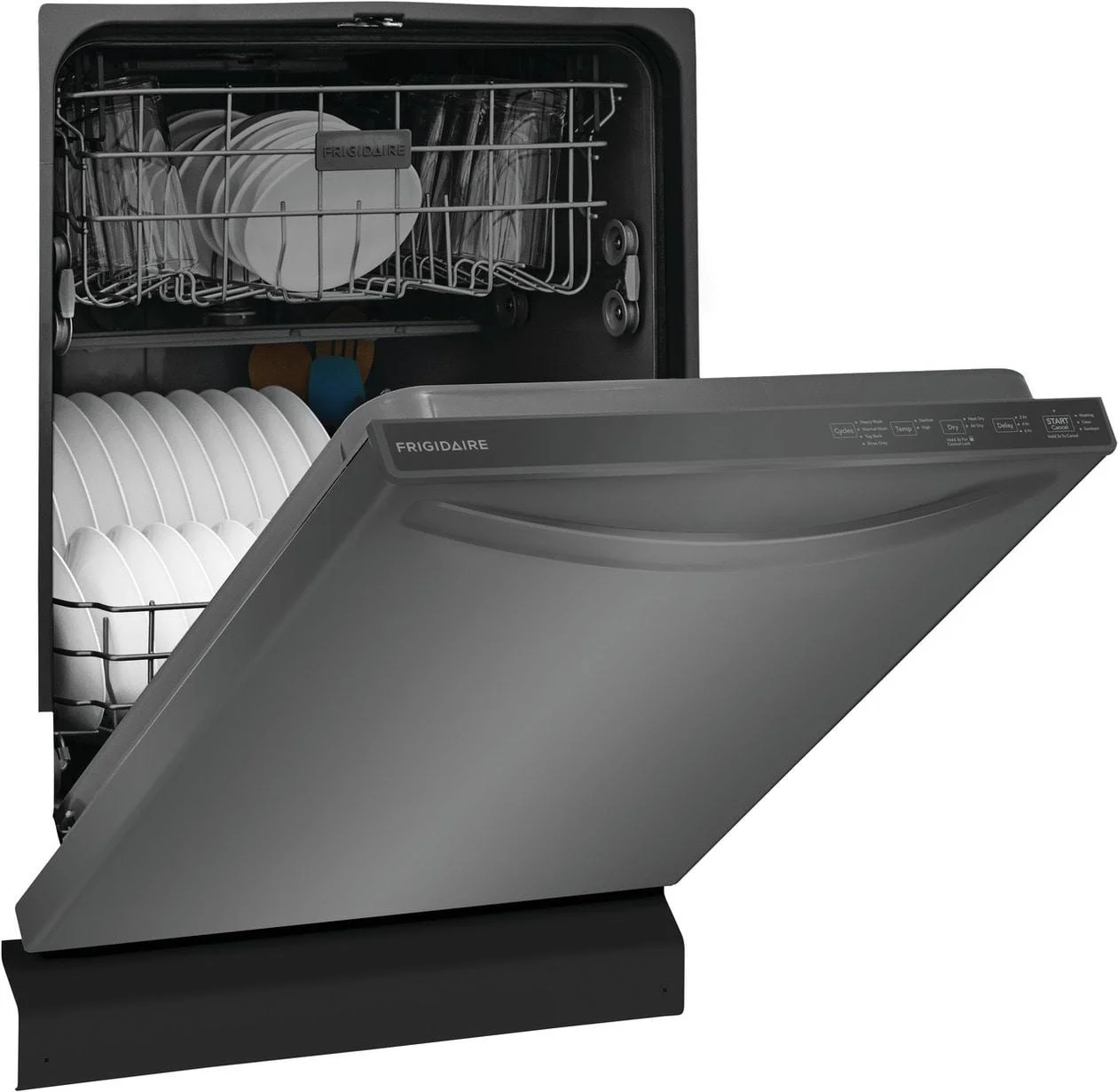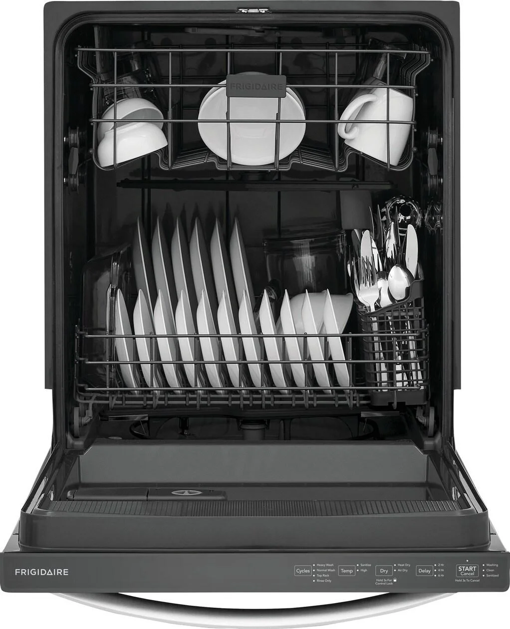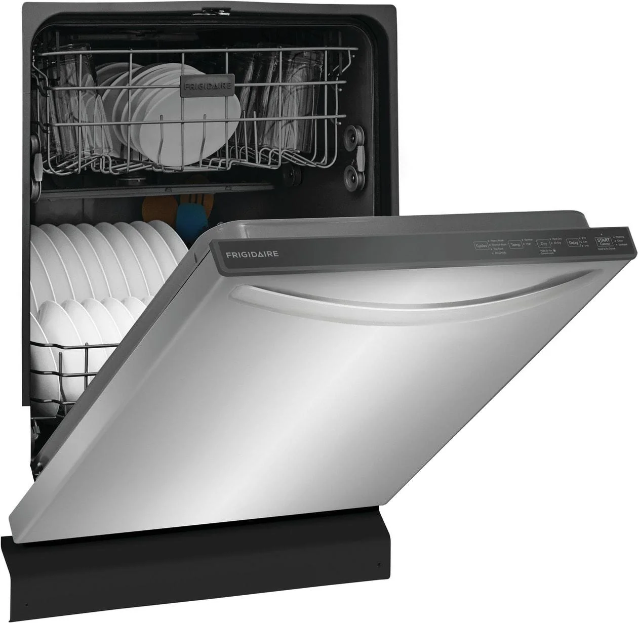 - This reliable and efficient Frigidaire dishwasher guarantees strong performance for years to come, backed by a 1 Year Warranty.