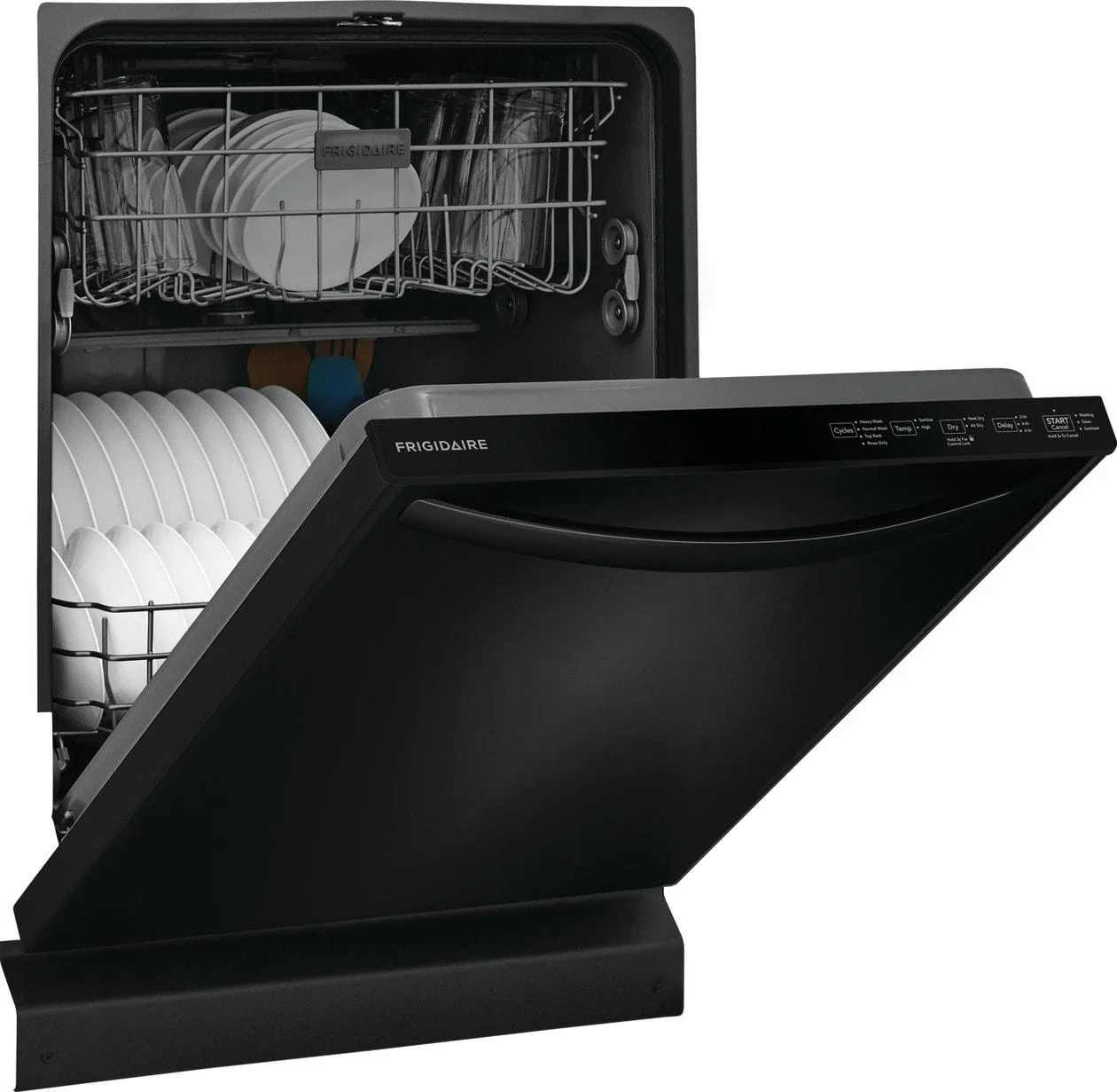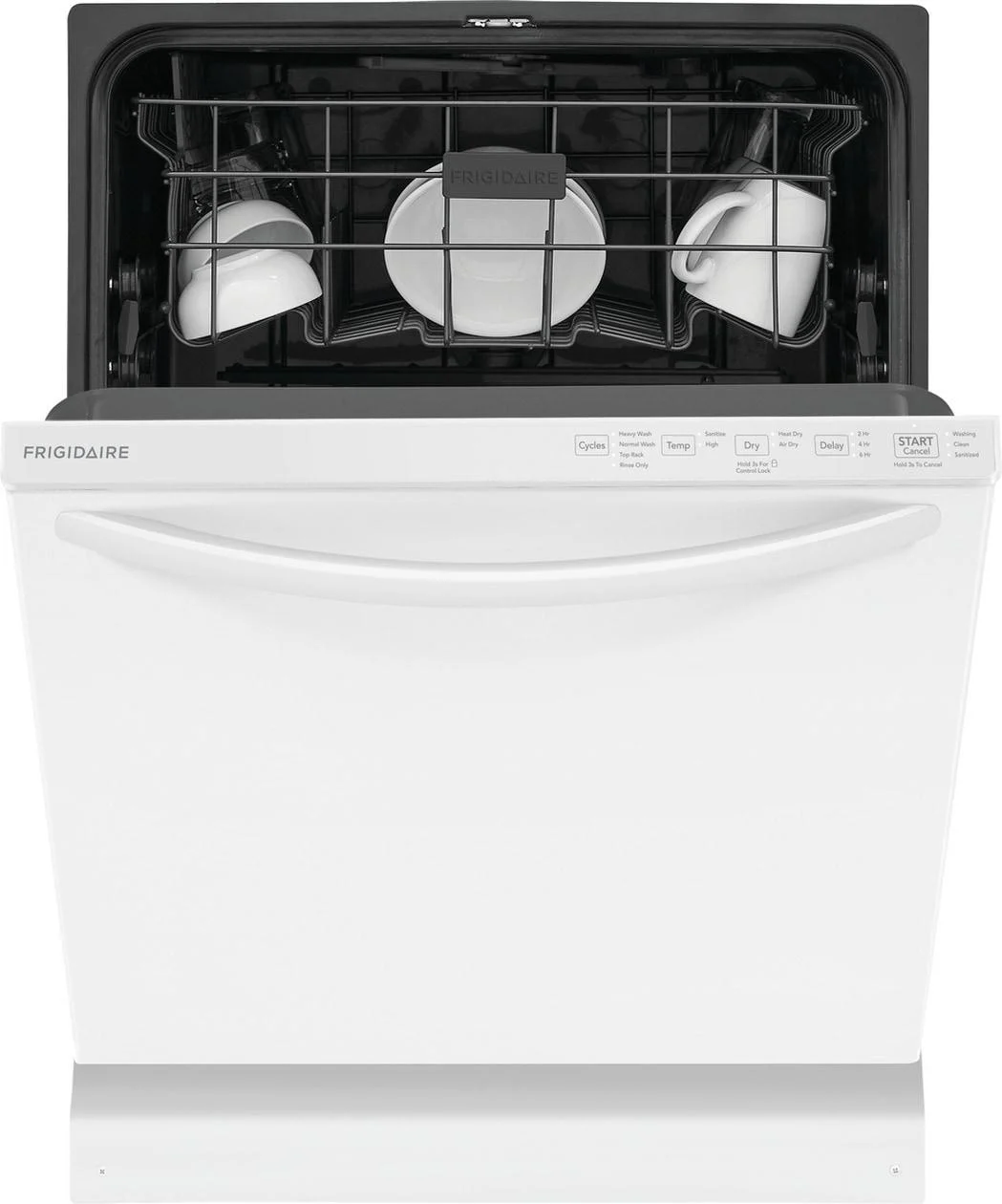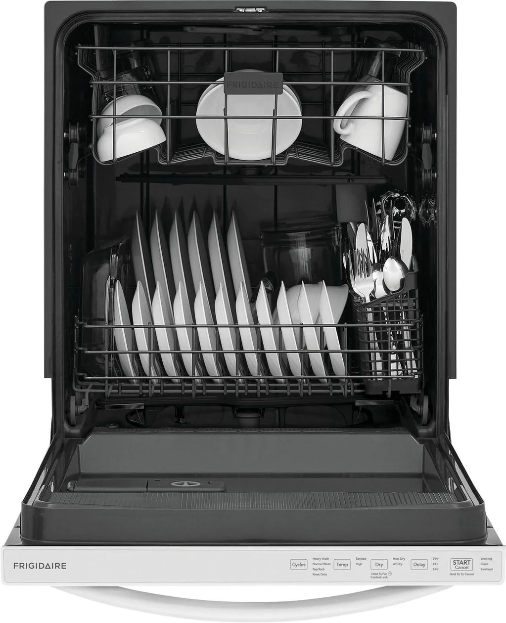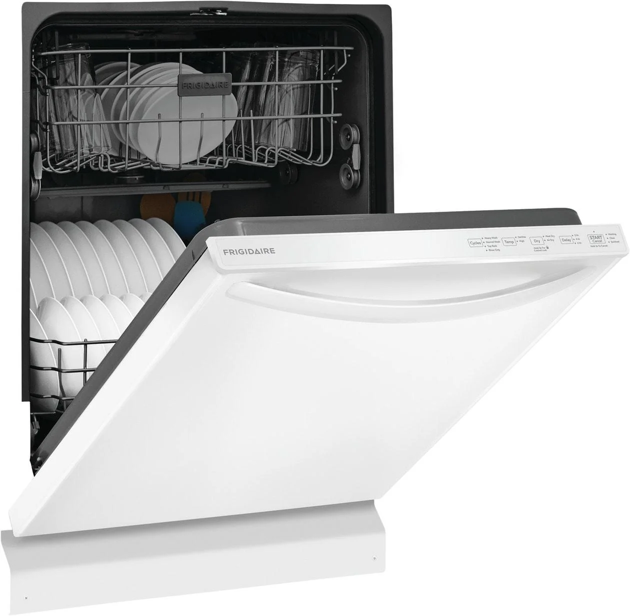 - This reliable and efficient Frigidaire dishwasher guarantees strong performance for years to come, backed by a 1 Year Warranty.
