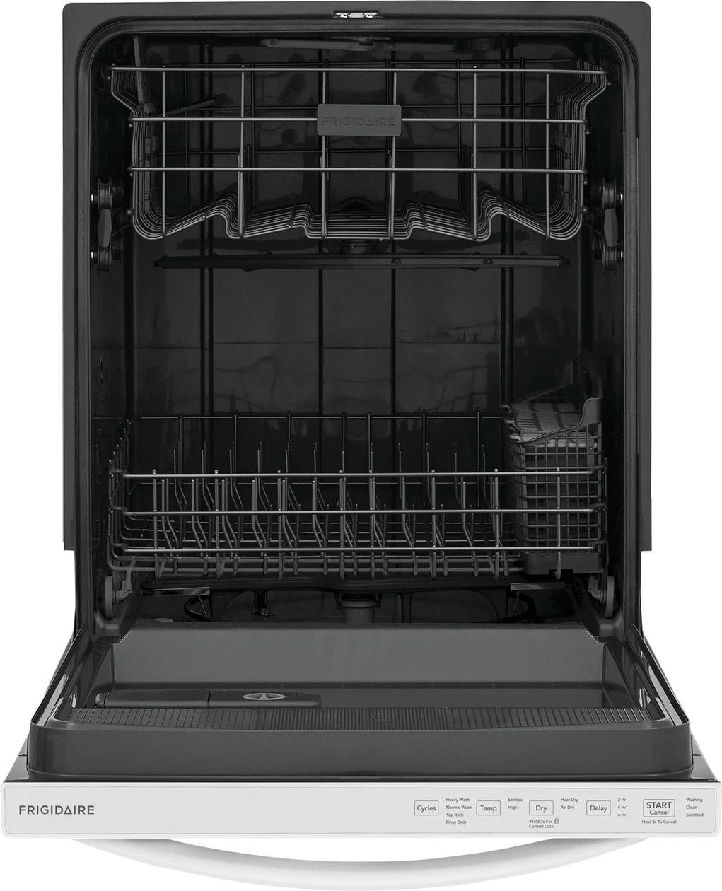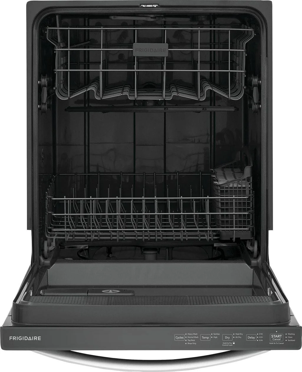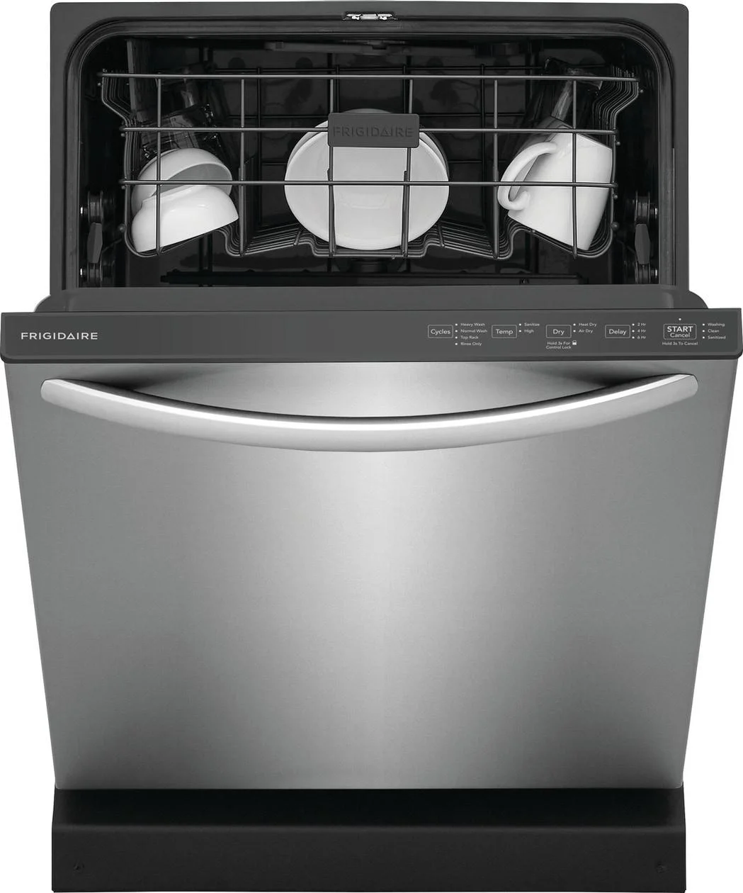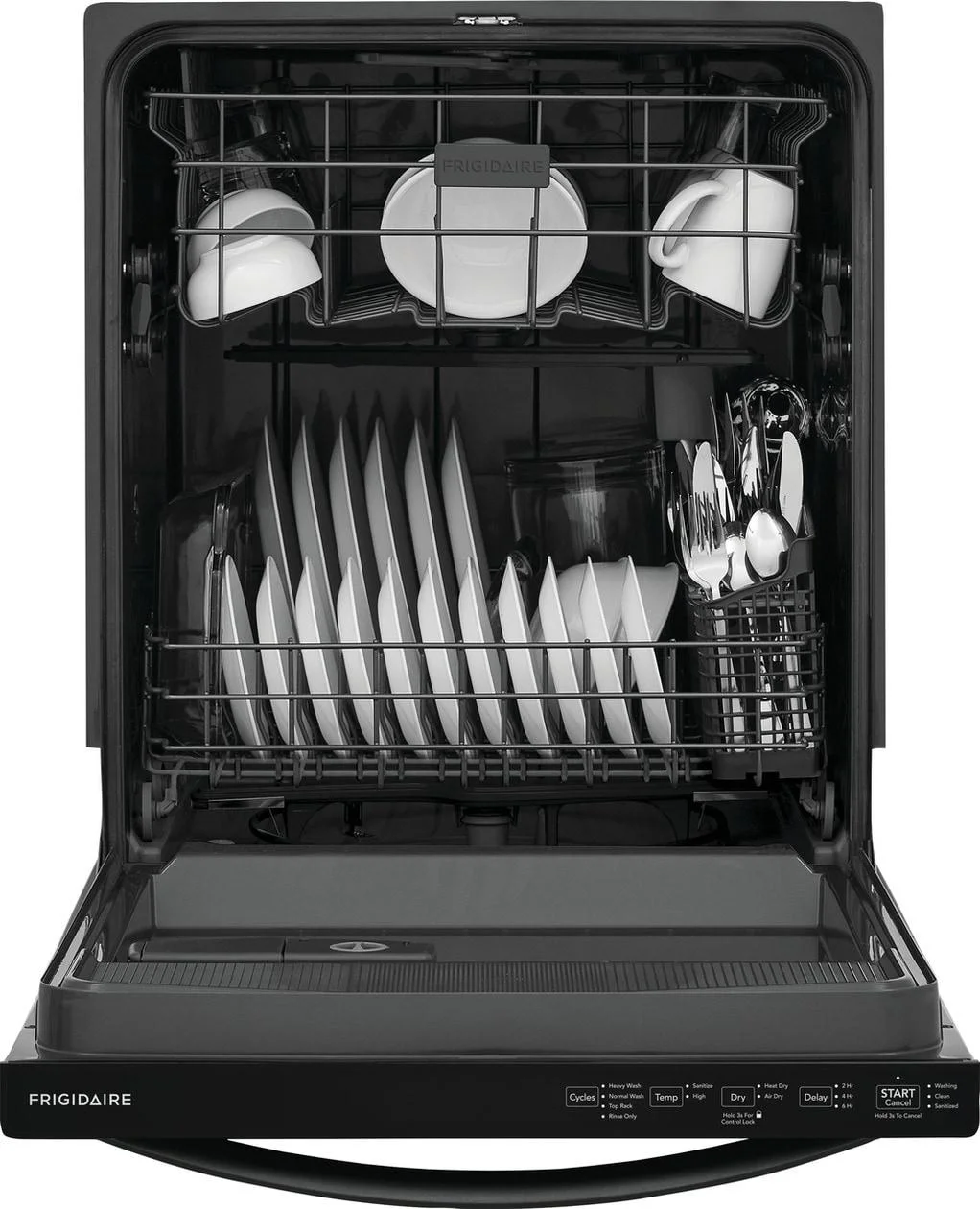 - This reliable and efficient Frigidaire dishwasher guarantees strong performance for years to come, backed by a 1 Year Warranty.