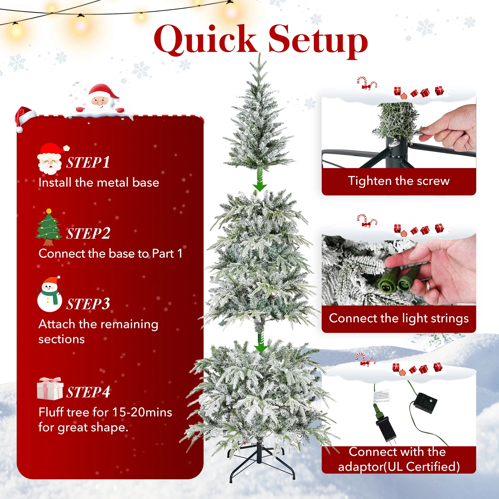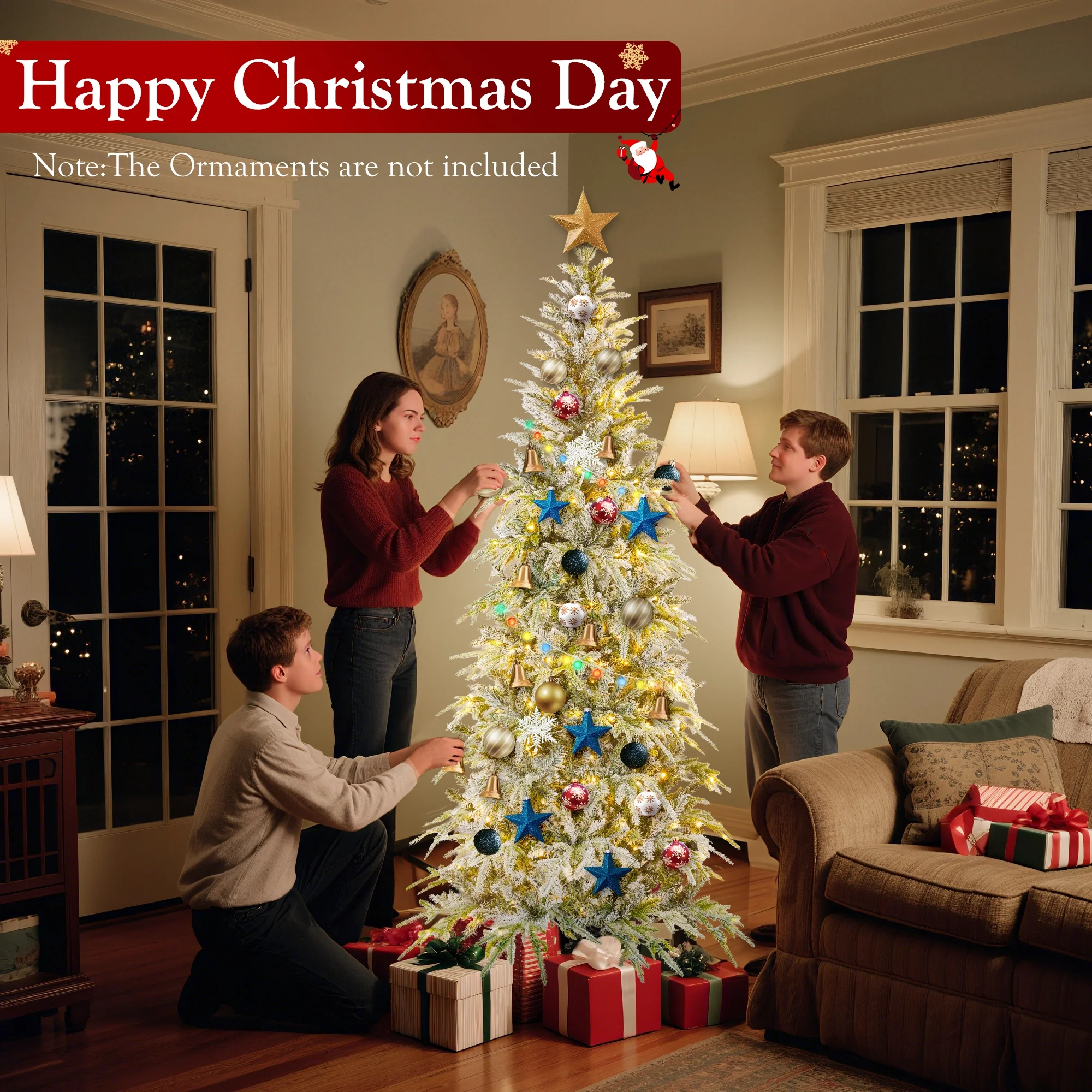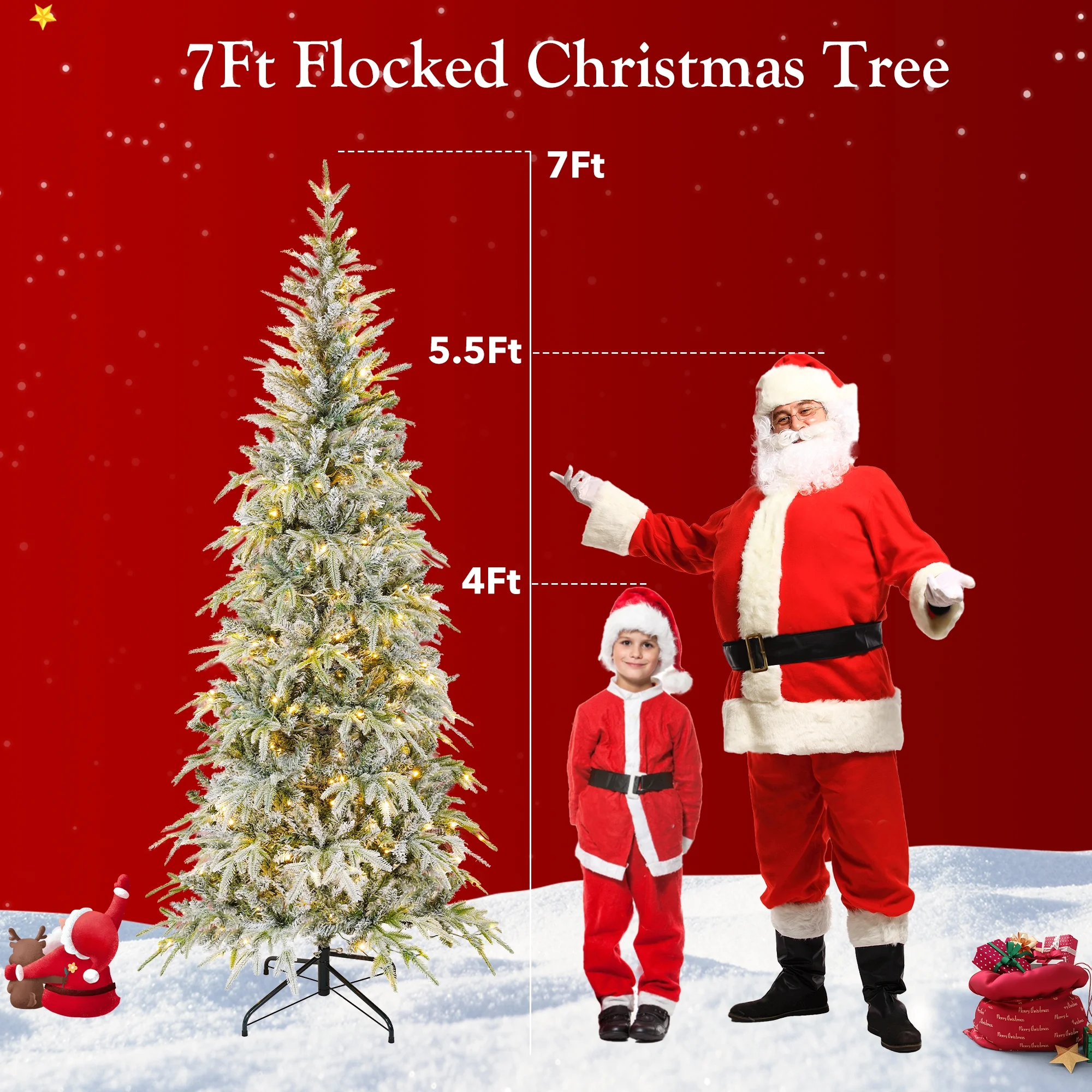 - Qunler 7ft Pre-lit Snow Flocked Artificial Christmas Tree