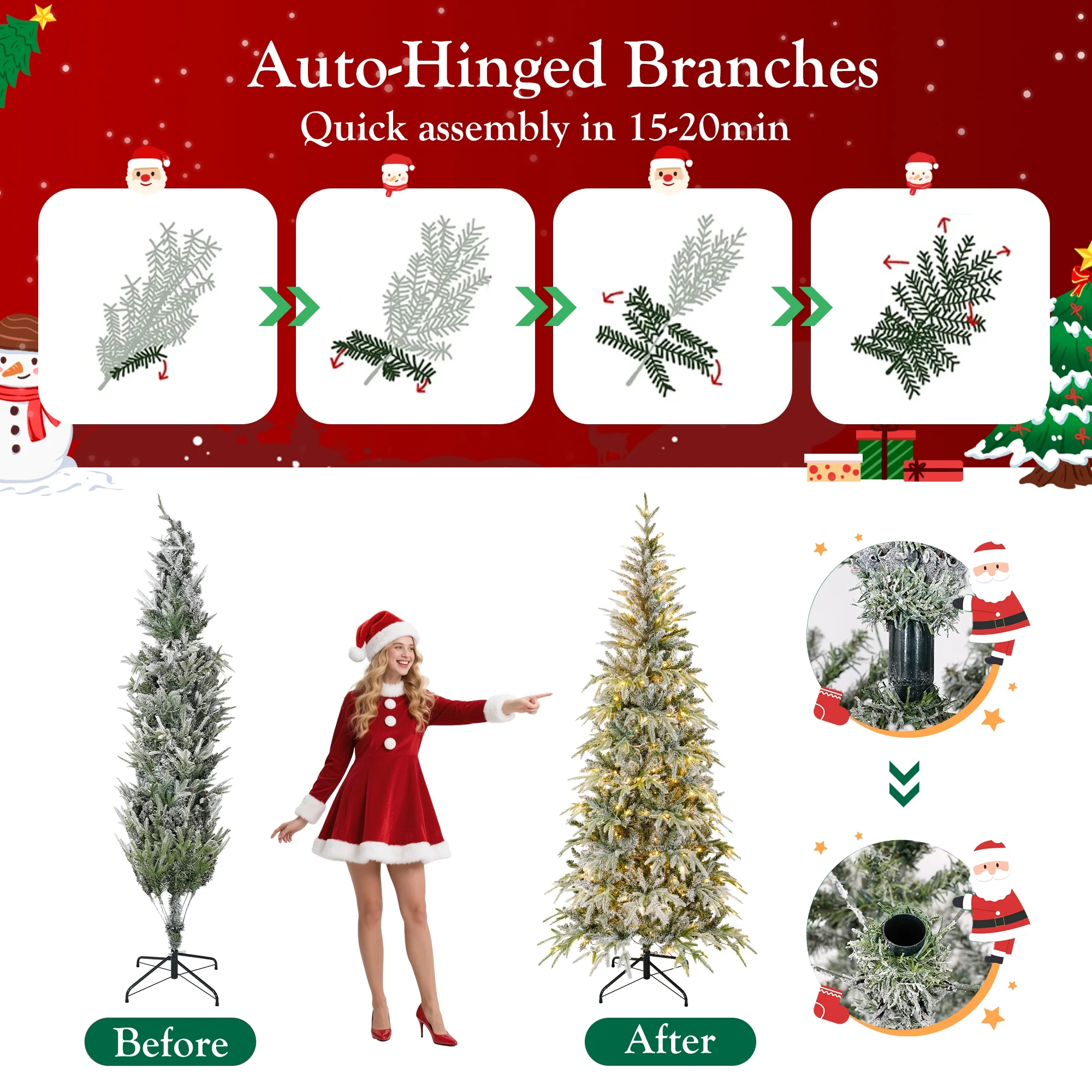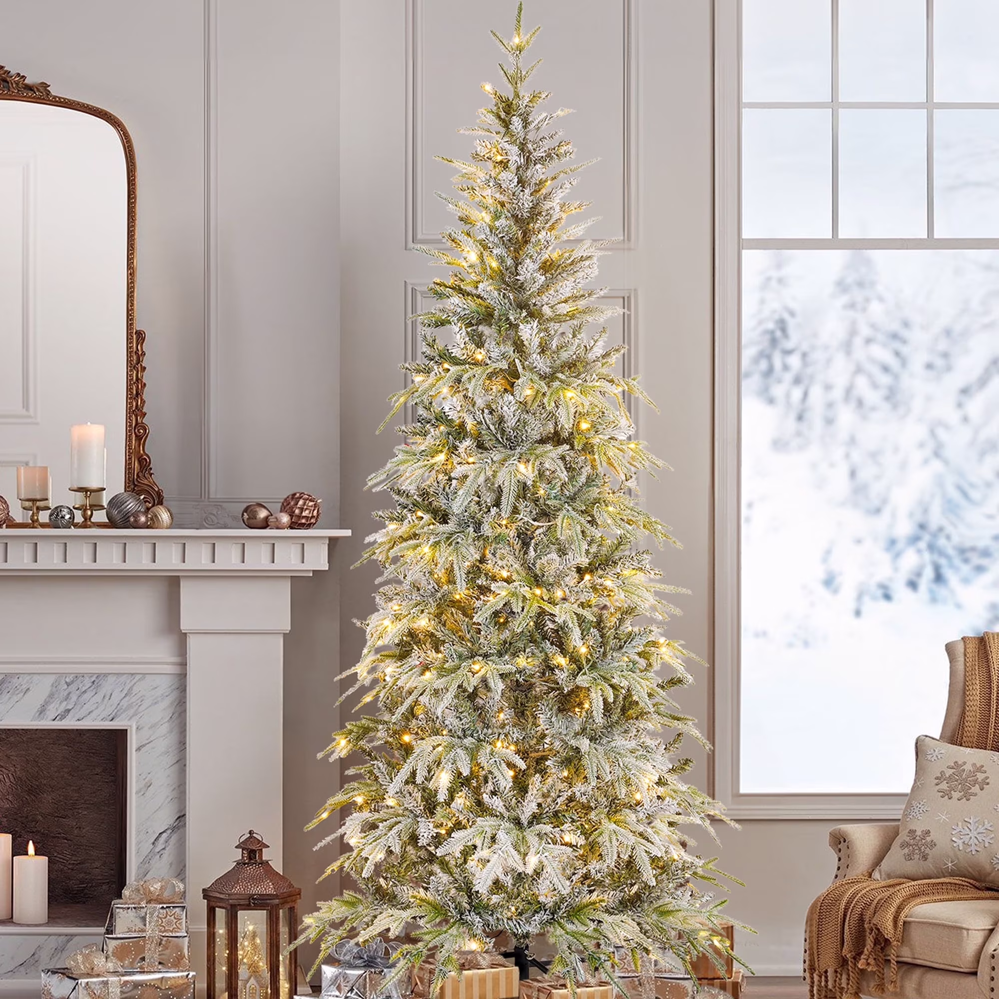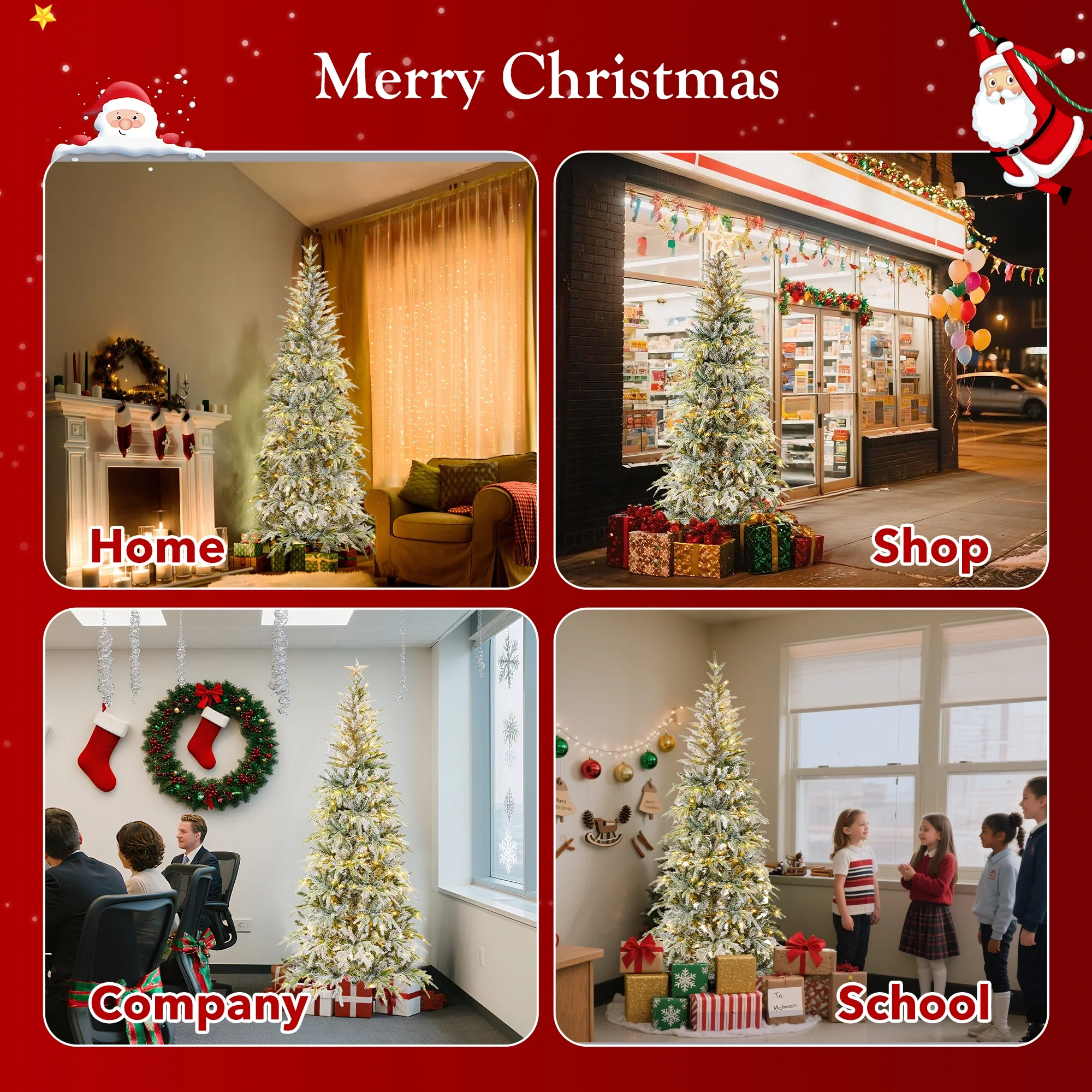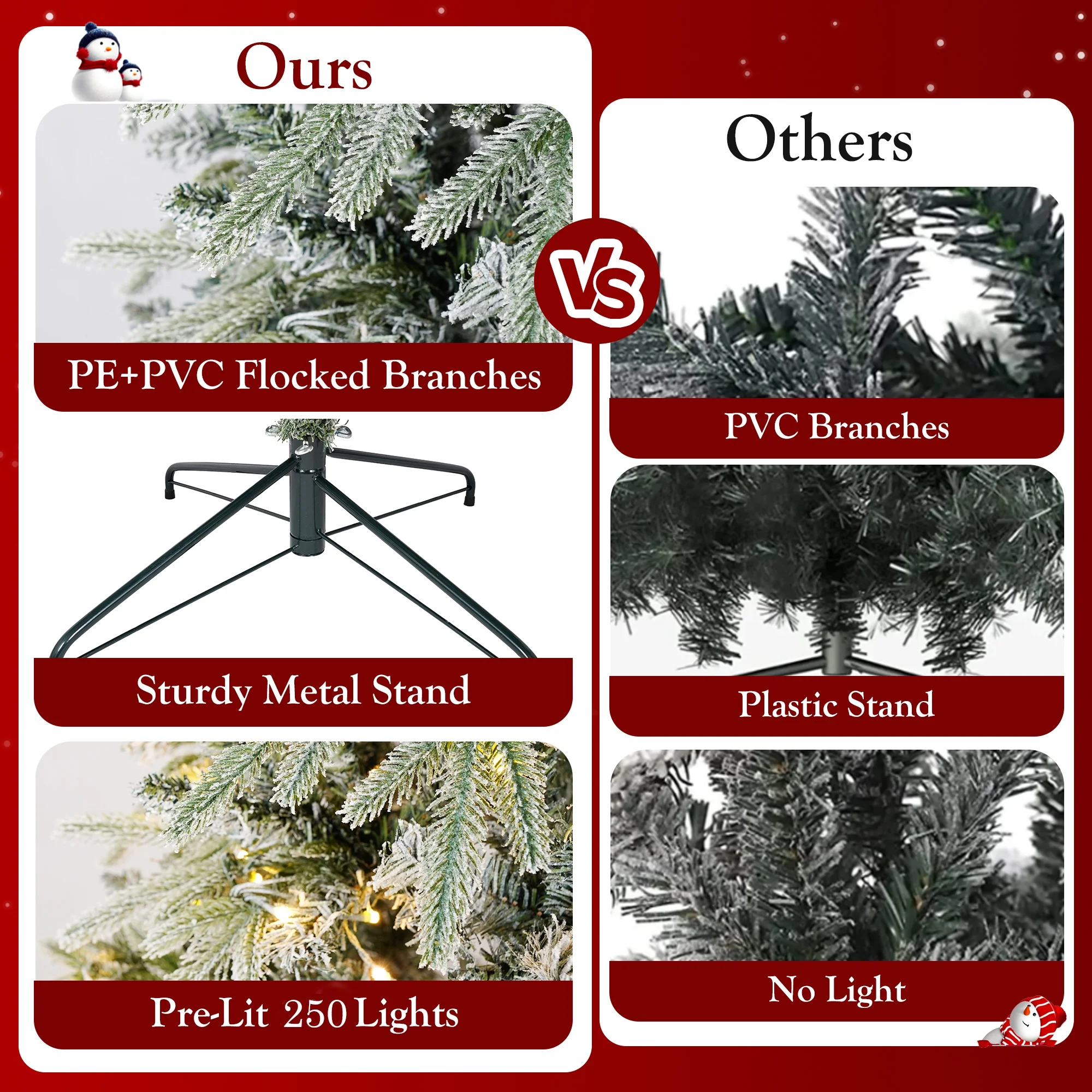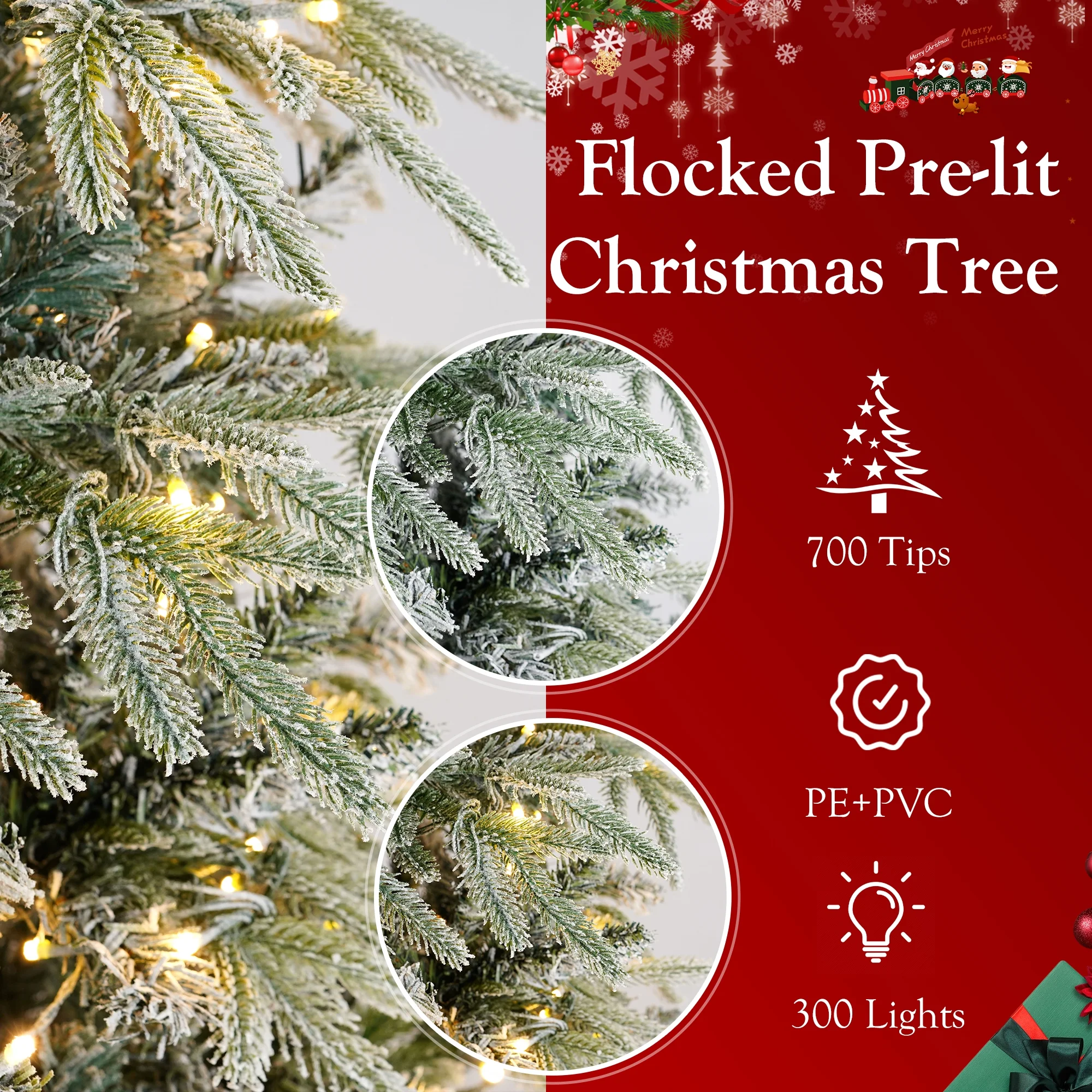 Meet Qunler-2025 new 7ft Pre-Lit Flocked Artificial Christmas Tree for 2025, featuring 300 warm white LED lights and 700 PE+PVC branch tips for a full, natural look. The delicate snow-flocked finish adds a touch of winter magic, creating an elegant centerpiece for your holidays.