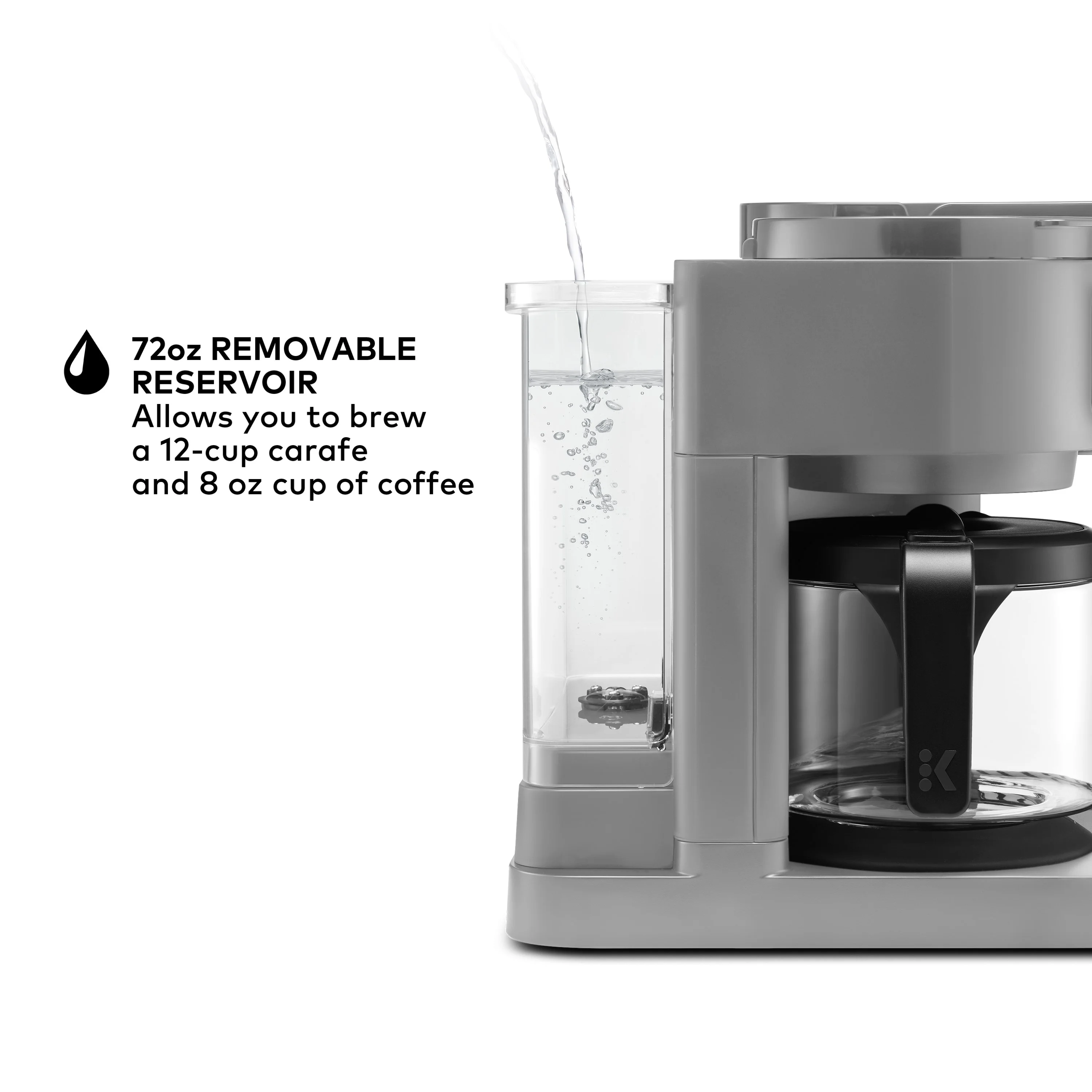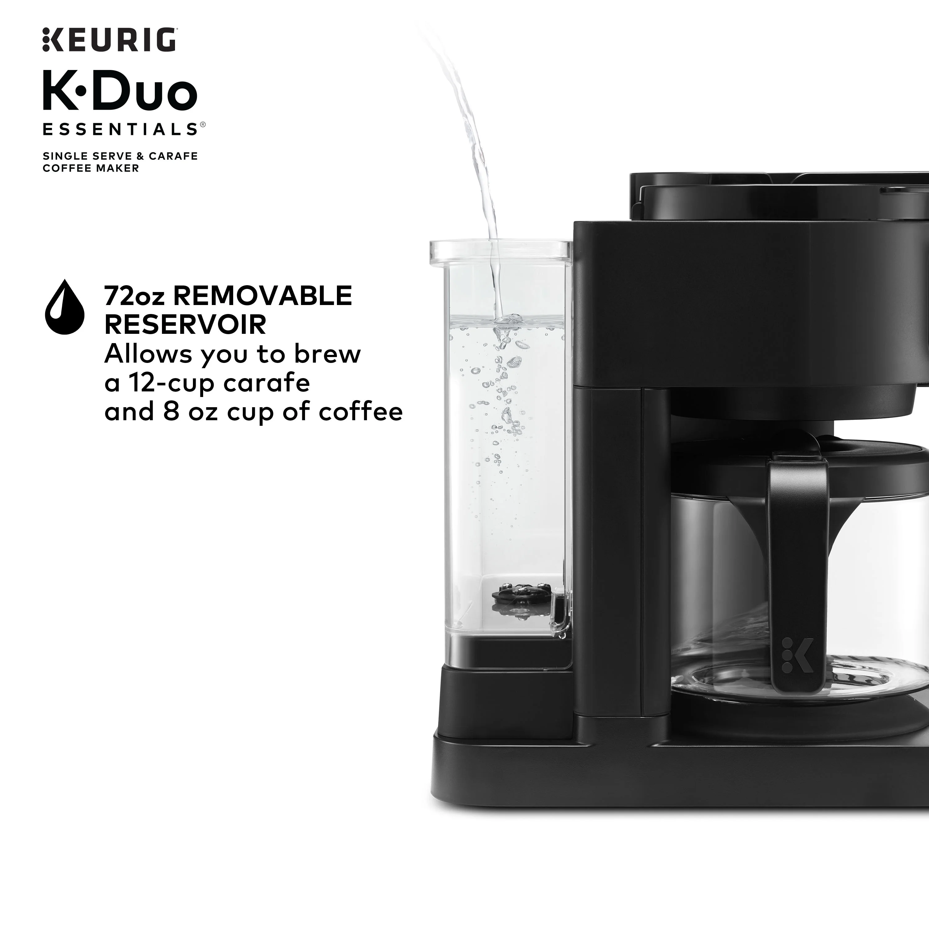 - ONE 72 OZ RESERVOIR: The extra-large 72 oz removable reservoir is shared by both sides for fast, convenient brewing with fewer refills.