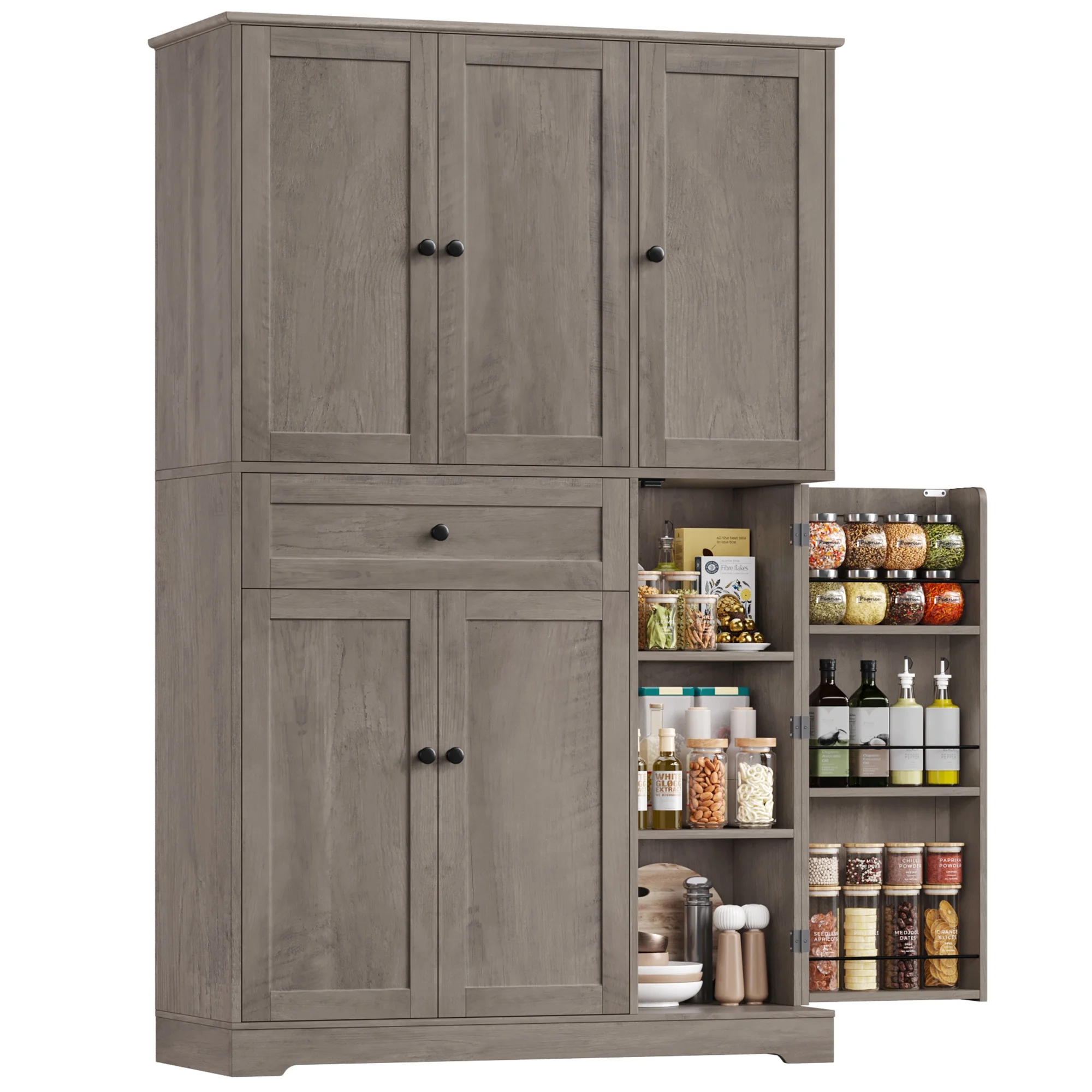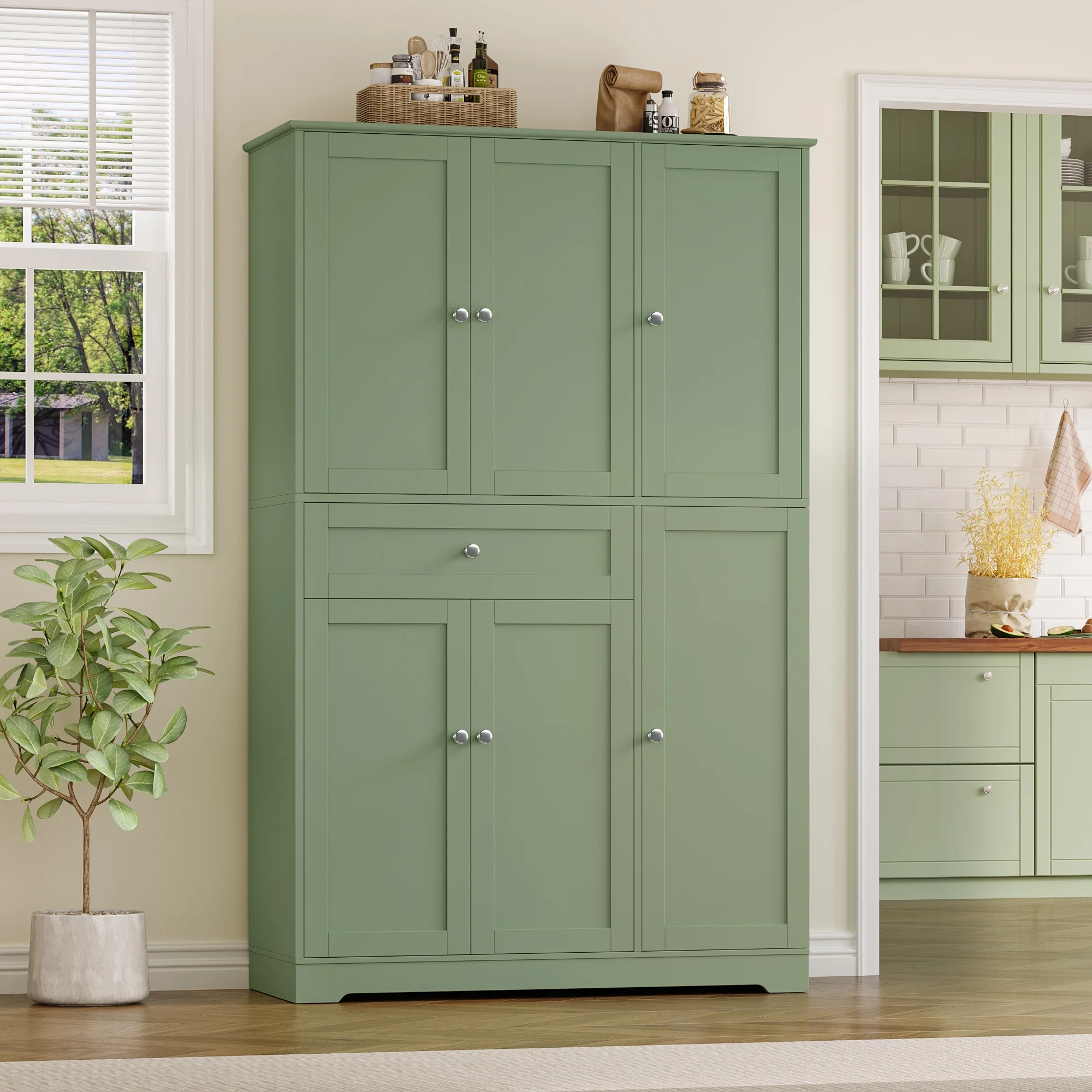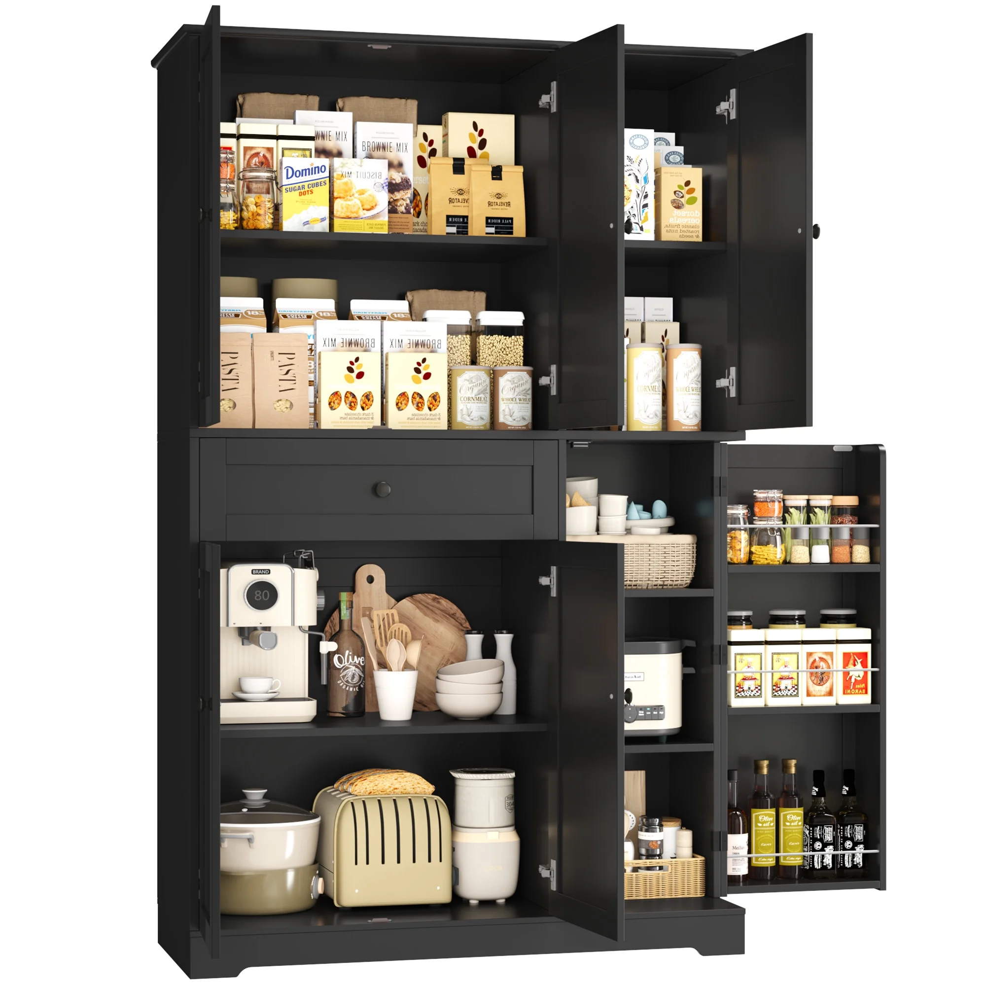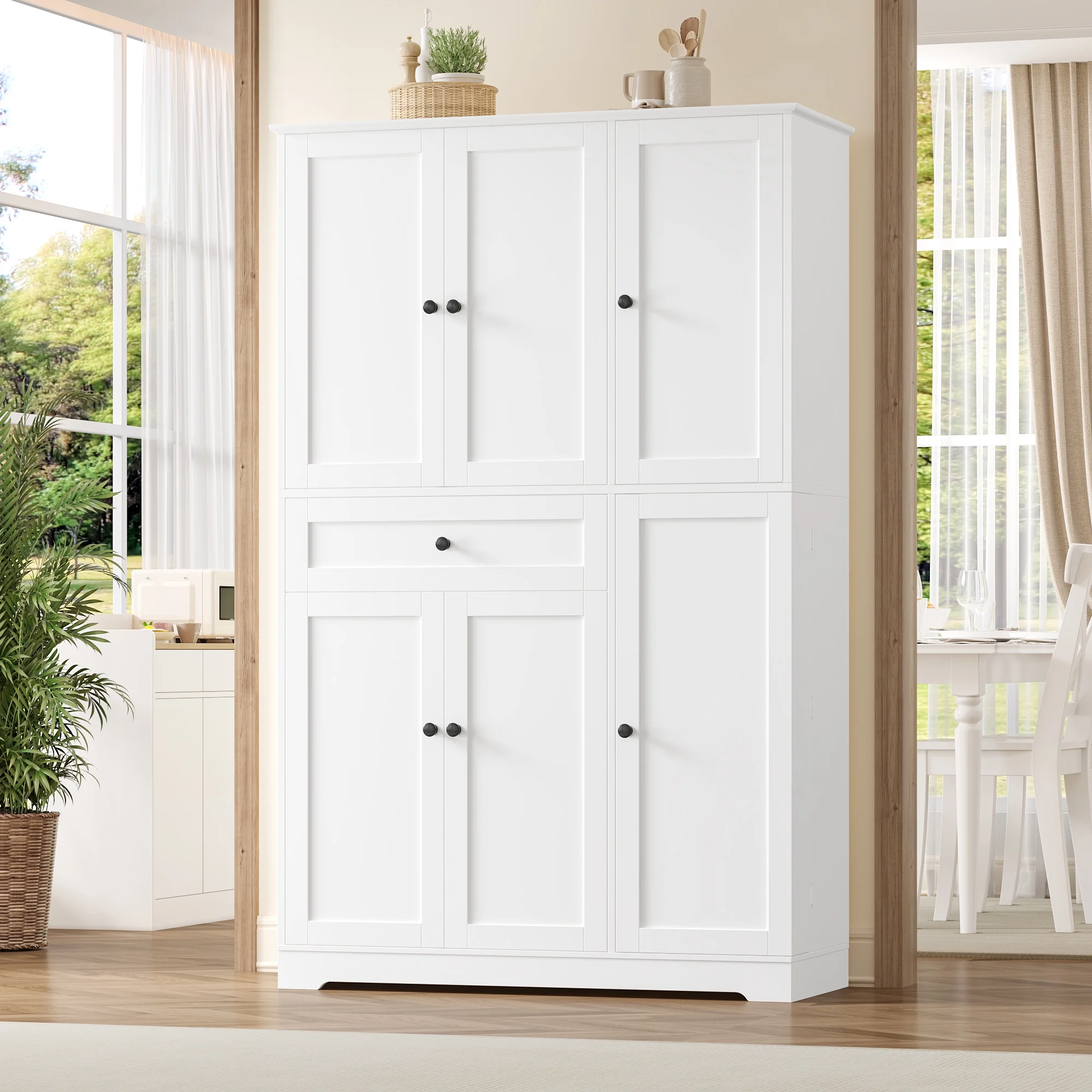 The Kitchen Pantry Cabinet has 6 tightly closing doors and 1 drawer to keep your food and snacks away from moisture and safe for consumption while providing a versatile storage solution for your kitchen and dining room.Whether it's a family gathering, a buffet, or daily dining, this tall food pantry cabinet is an ideal choice to enhance the quality of life. Dimensions: 68.1''H x 40.9''W x 15.7''D.