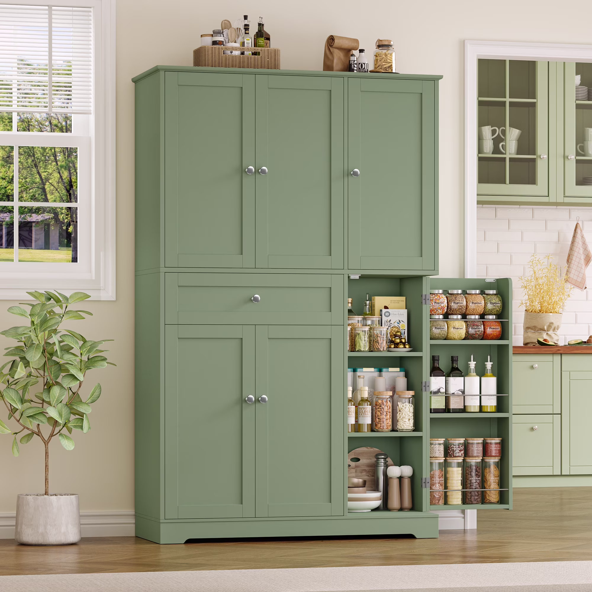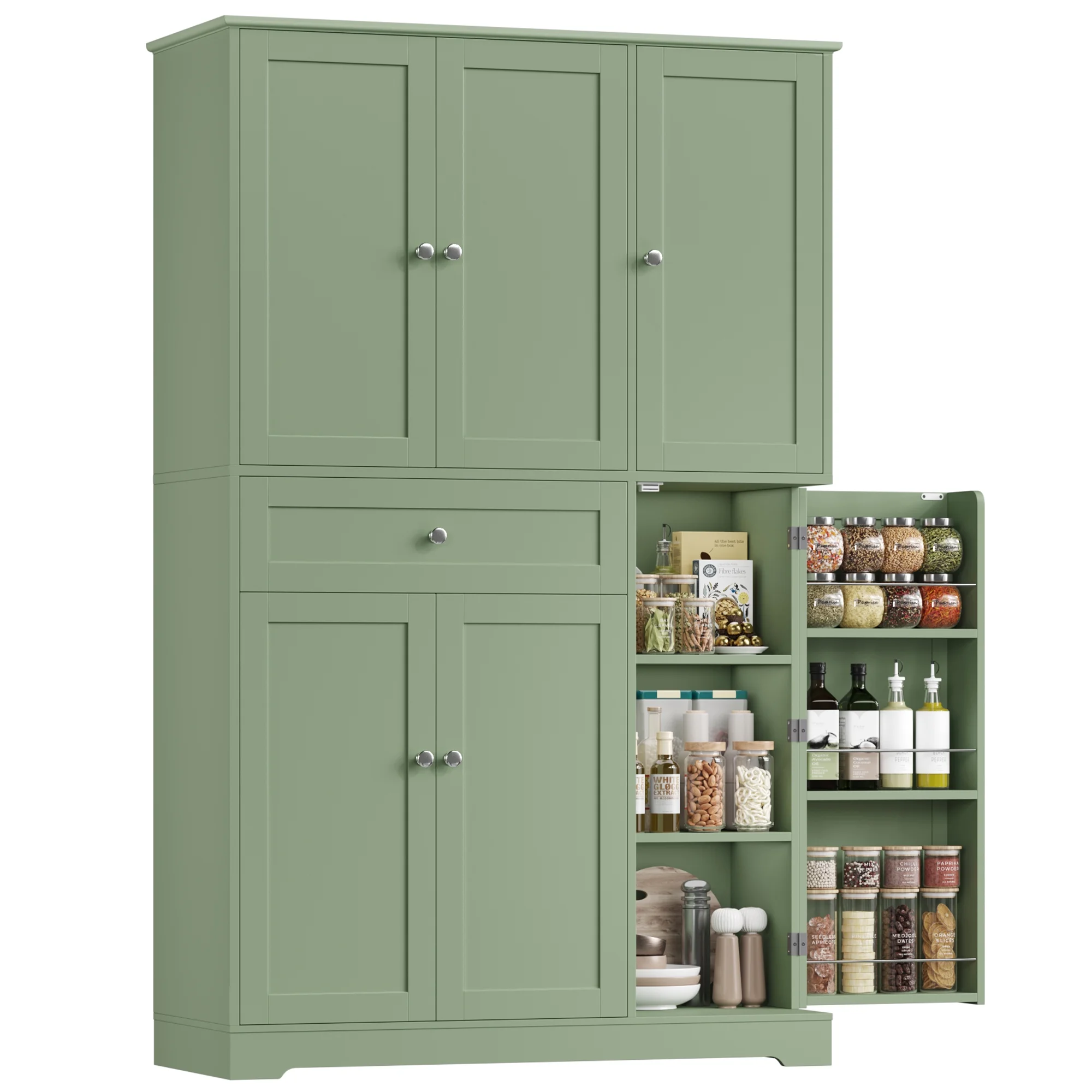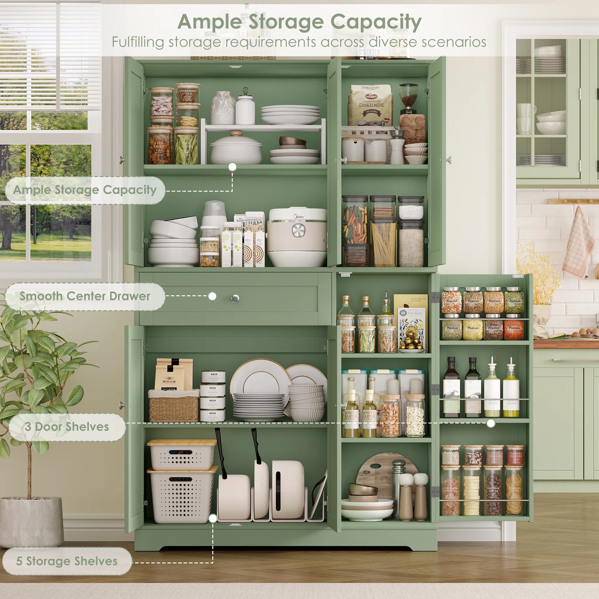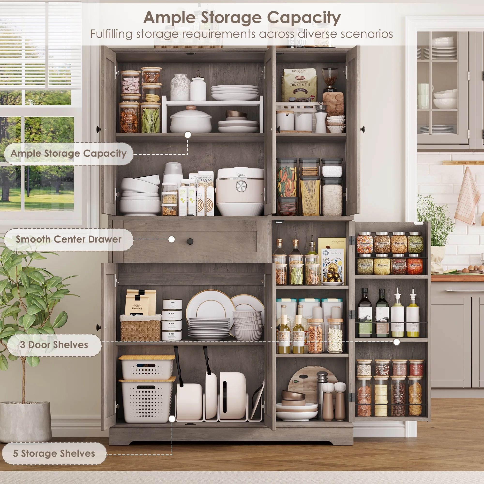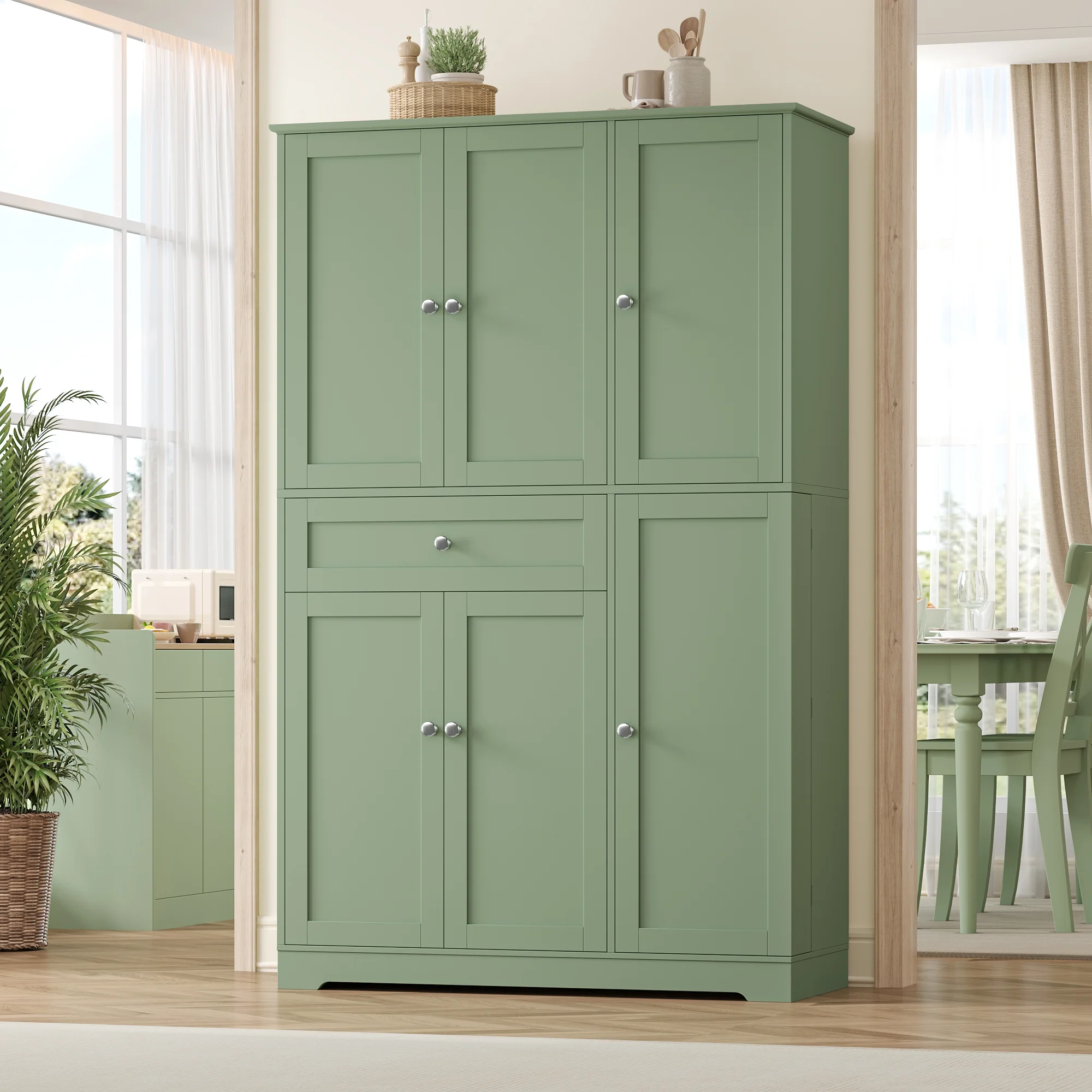 The Kitchen Pantry Cabinet has 6 tightly closing doors and 1 drawer to keep your food and snacks away from moisture and safe for consumption while providing a versatile storage solution for your kitchen and dining room.Whether it's a family gathering, a buffet, or daily dining, this tall food pantry cabinet is an ideal choice to enhance the quality of life. Dimensions: 68.1''H x 40.9''W x 15.7''D.