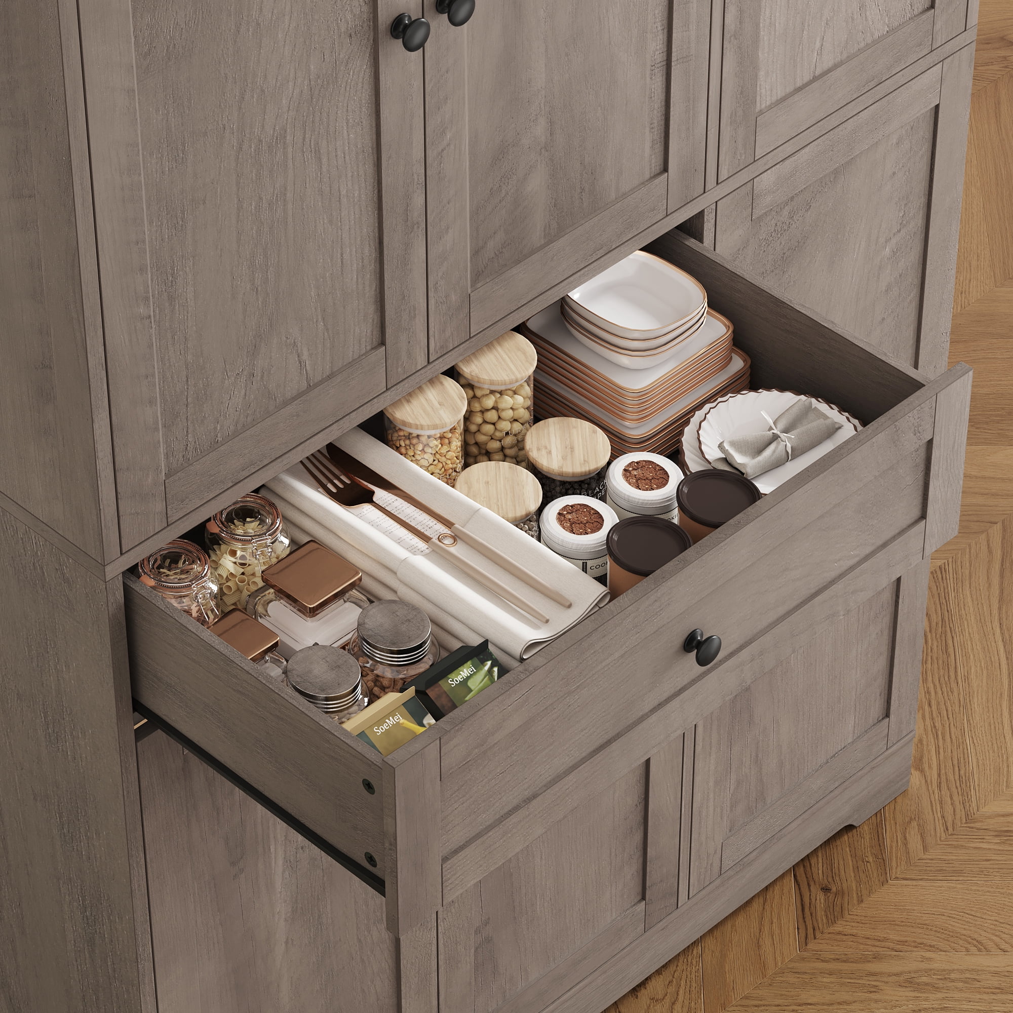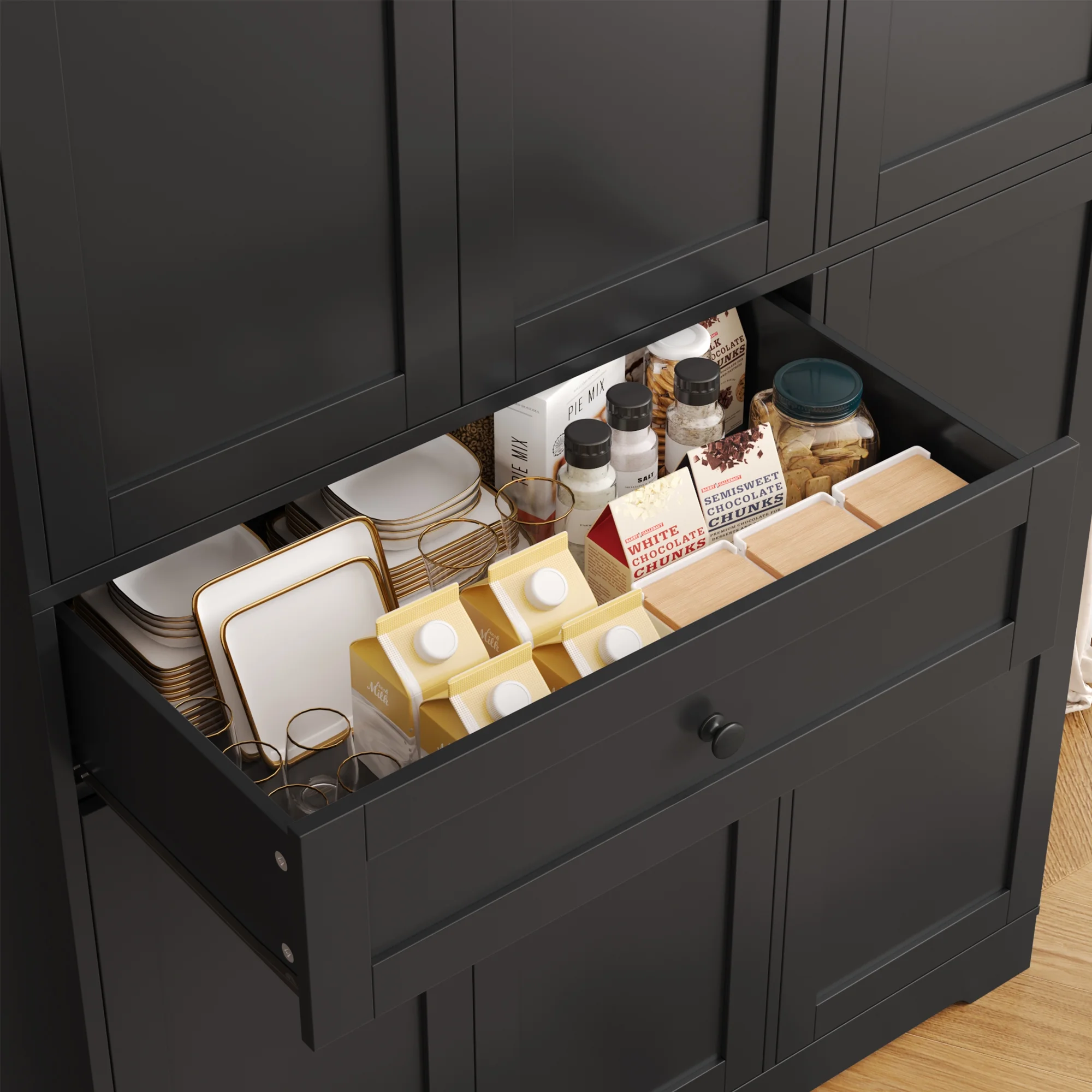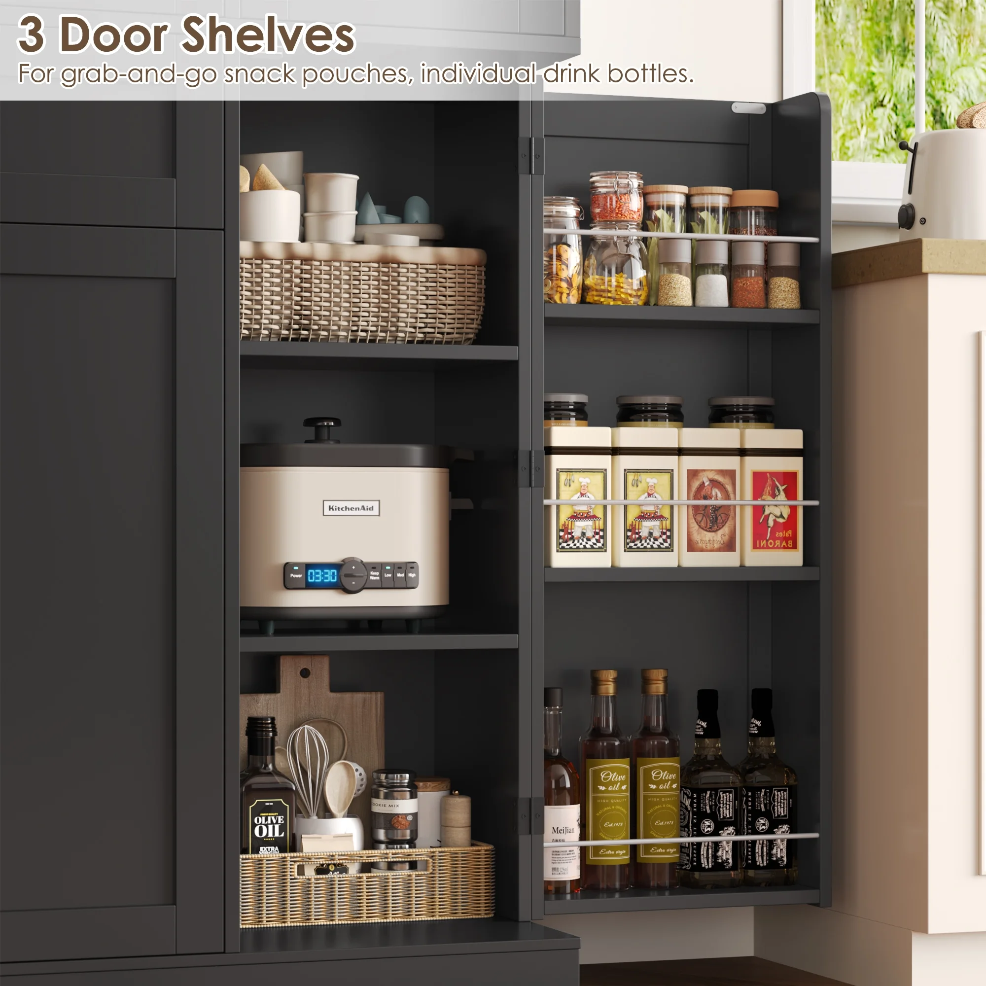 - ��Door Storage Rack��The tall pantry cabinet with drawer has a 3-tier door shelf, providing additional storage space, usually suitable for items such as condiments, spices, or smaller containers. They maximize the use of vertical space, ensuring that you can easily see and access commonly used ingredients.