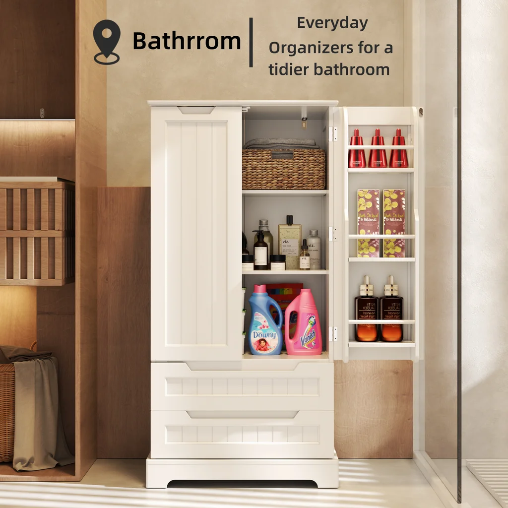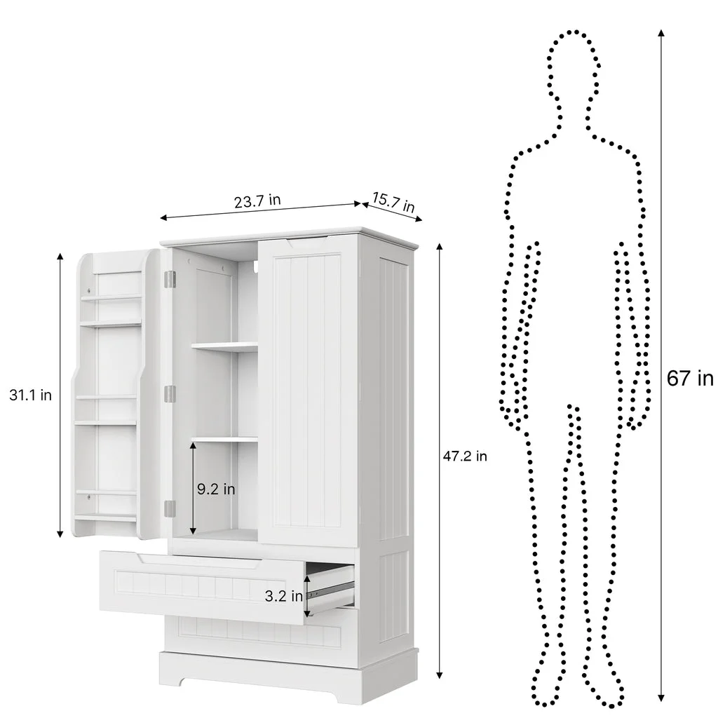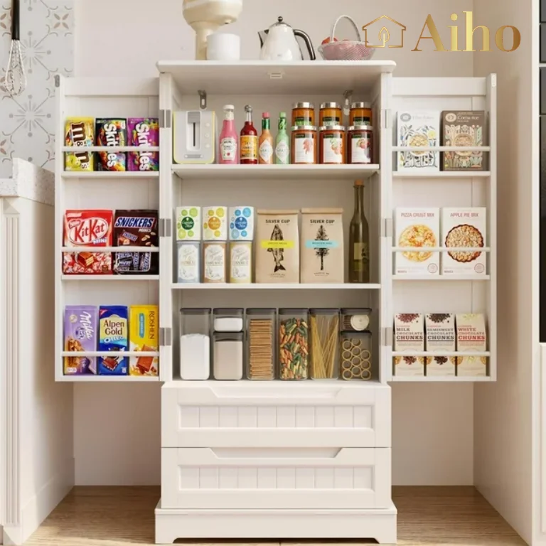 Aiho storage cabinet offers a solution for your storage. With 2 shelves, 2 large drawers and 6 side door shelves, this kitchen pantry cabinet offers plenty of space for storing sandwich bags, spice bottles and dishes for organized storage. Suitable for kitchen, studio, dining room, living room and bathroom. It also comes with an anti-tip device that prevents the kitchen storage cabinet from tipping over. You will love this kitchen storage cabinet in your kitchen!