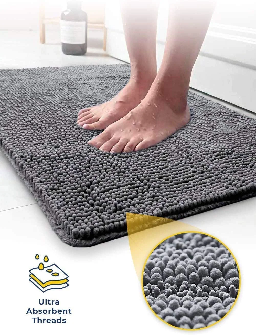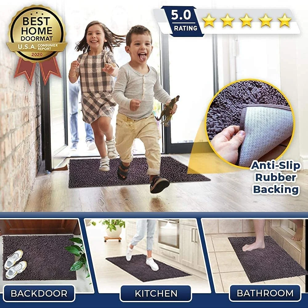 (4 Pack) Muddy Mat® SHOWN ON TV Highly Absorbent Microfiber Door Mat and Pet Rug Non Slip Thick Washable Area and Bath Mat Soft Chenille for Kitchen Bathroom Bedroom Indoor and Outdoor - Grey Medium 30"x19"