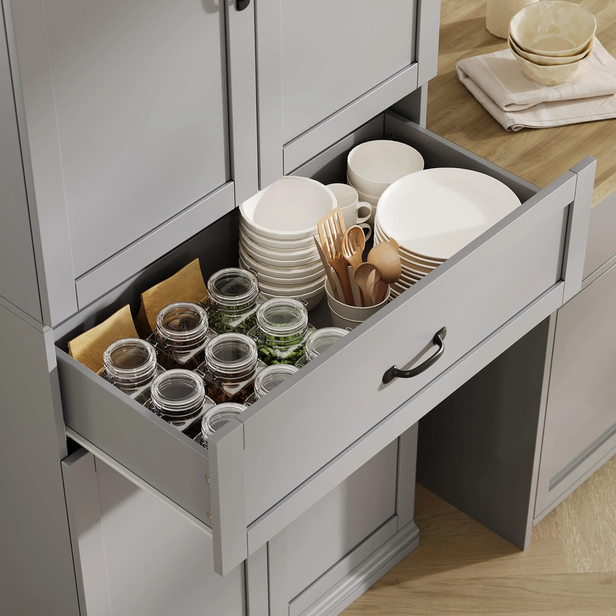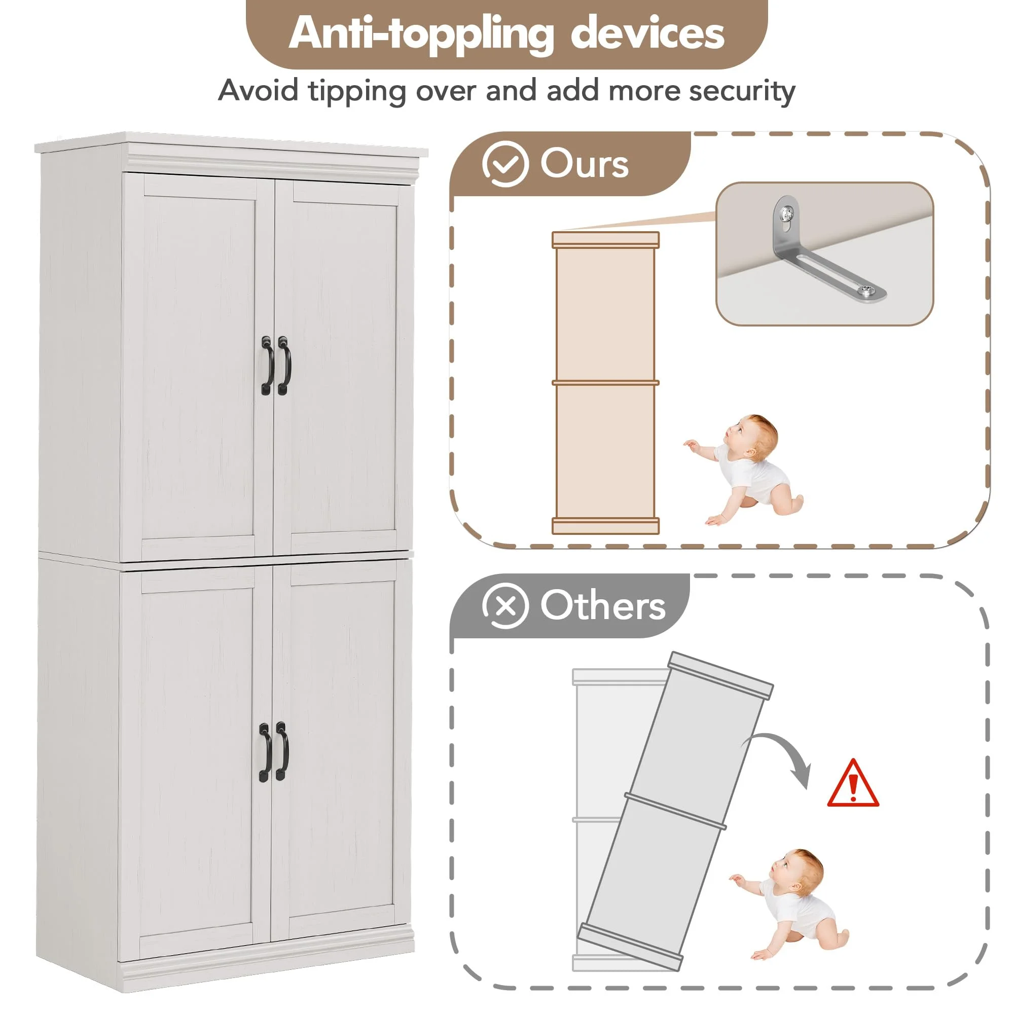 - Durable and Safe: Experience peace of mind with storage designed for lasting durability and safety. This kichen cabinet is crafted from high-quality P2-engineered wood and metal, ensuring a strong and durable structure for everyday use. It includes a wall anchor kit for secure installation, preventing tipping, and ensuring safety