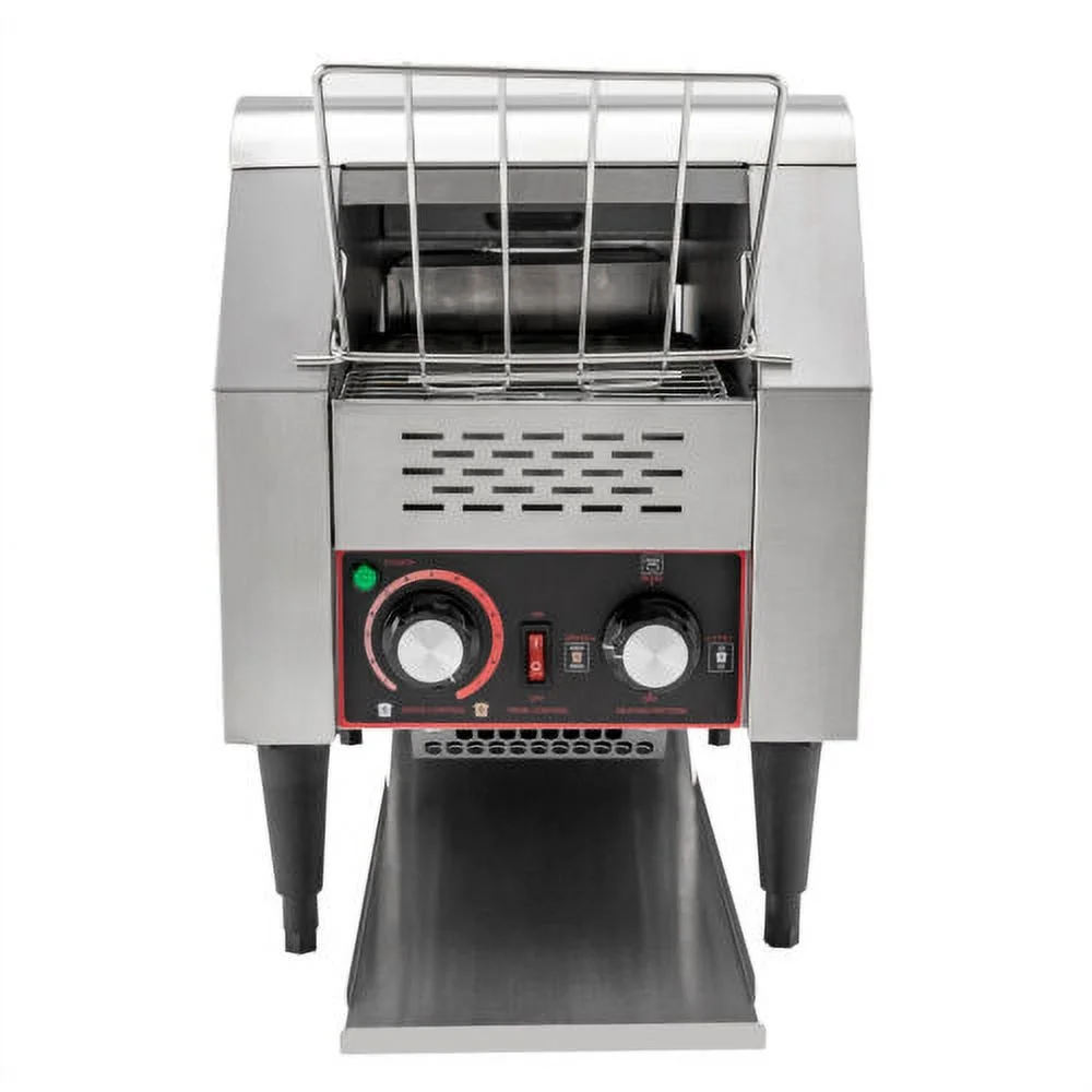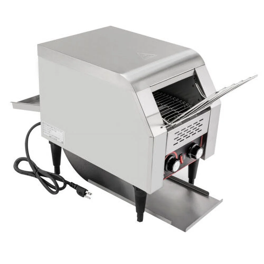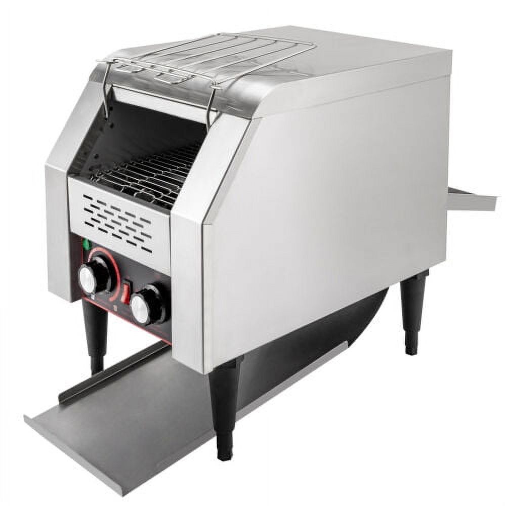 - High Efficiency: With 1300W power and upper and lower three-ring heating tubes, this commercial conveyor toaster can bake 150 pieces of bread per hour, allowing you to please your guests with the best bread and a short wait.