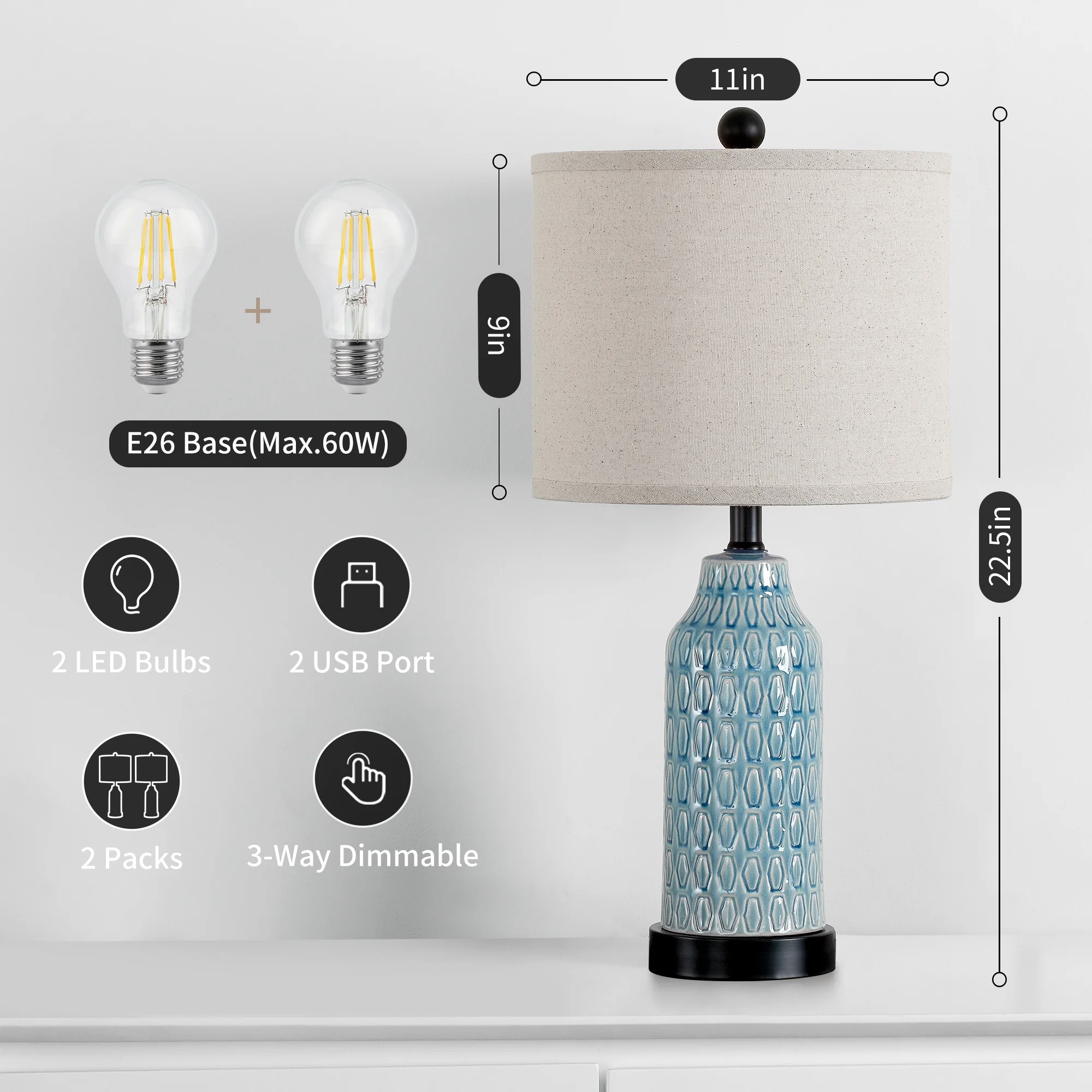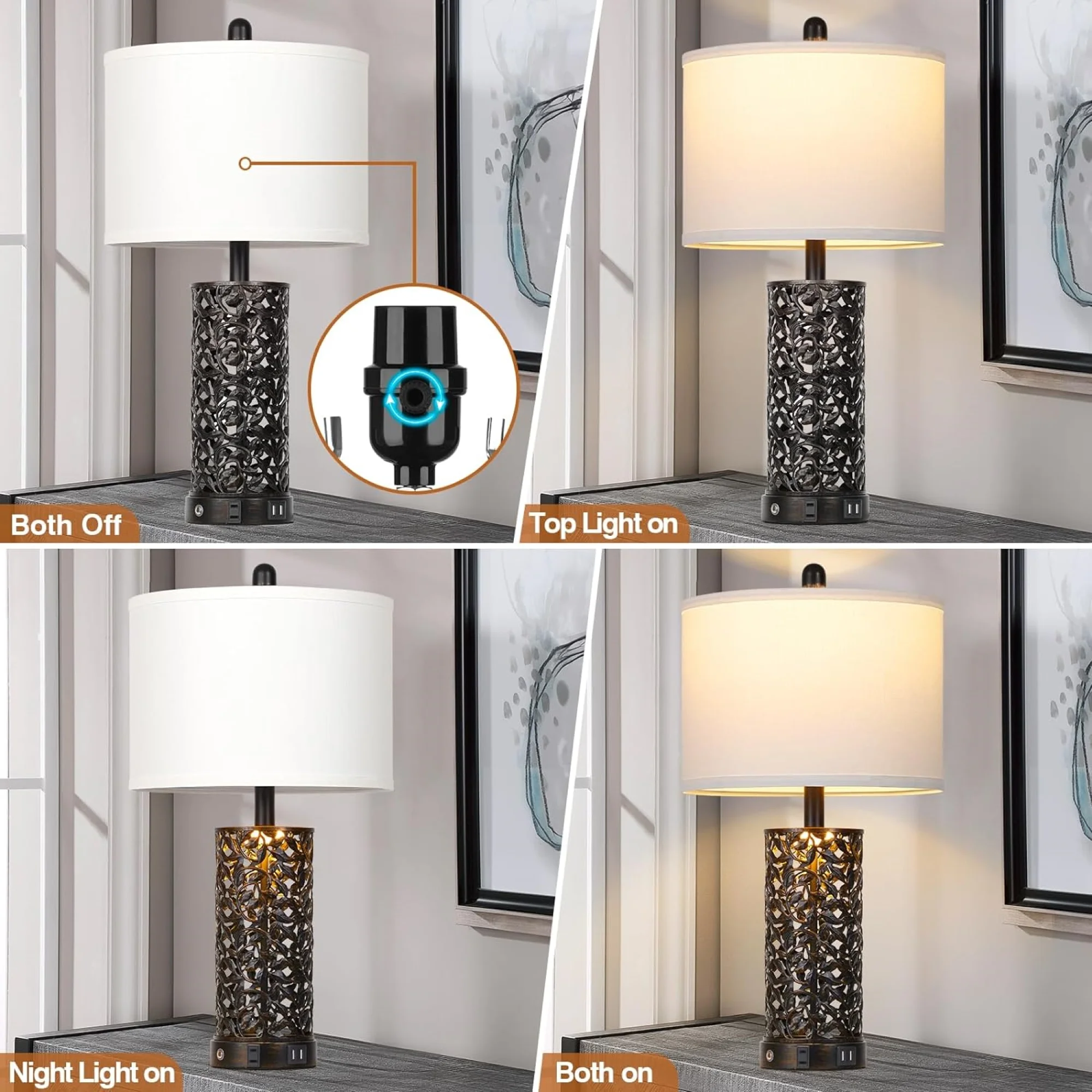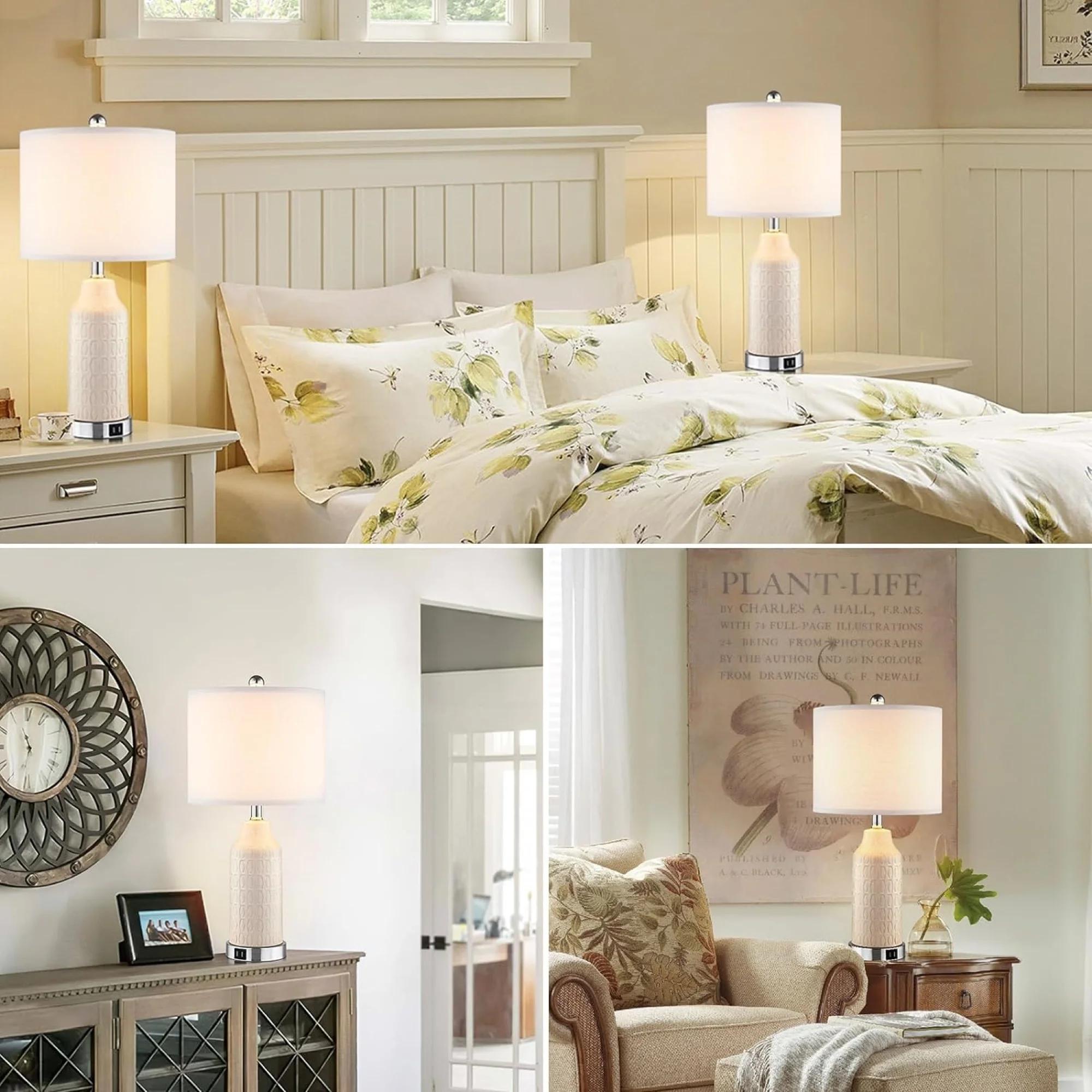 - 3 Way Dimmable Touch Control Table Lamp with Nightlight : white farmhouse table lamps features a rotary switch for the top main light and a 3-way dimmable touch control for the nightlight. Rotary switch can turn on/off main light, the silver sensor touch switch on the lamp base can turn on/off nightlight and offers three levels of brightness (low, medium, high), you can choose the lighting according to your various brightness requirements such as sleeping, reading, study, working or daily use. Two energy-efficient LED bulbs included, standard E26 bulb base can compatible with incandescent (60W), LED, CFL, halogen or Edison bulbs.