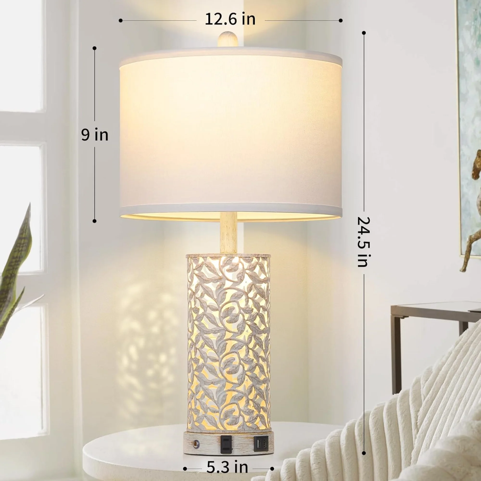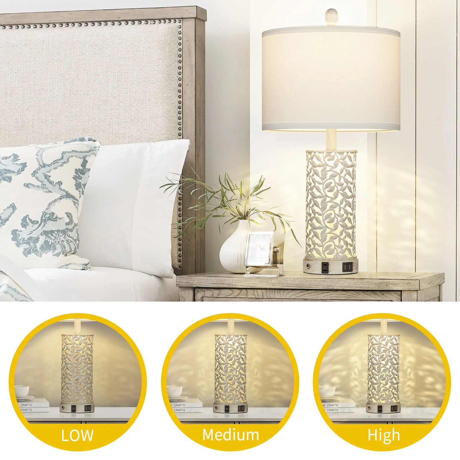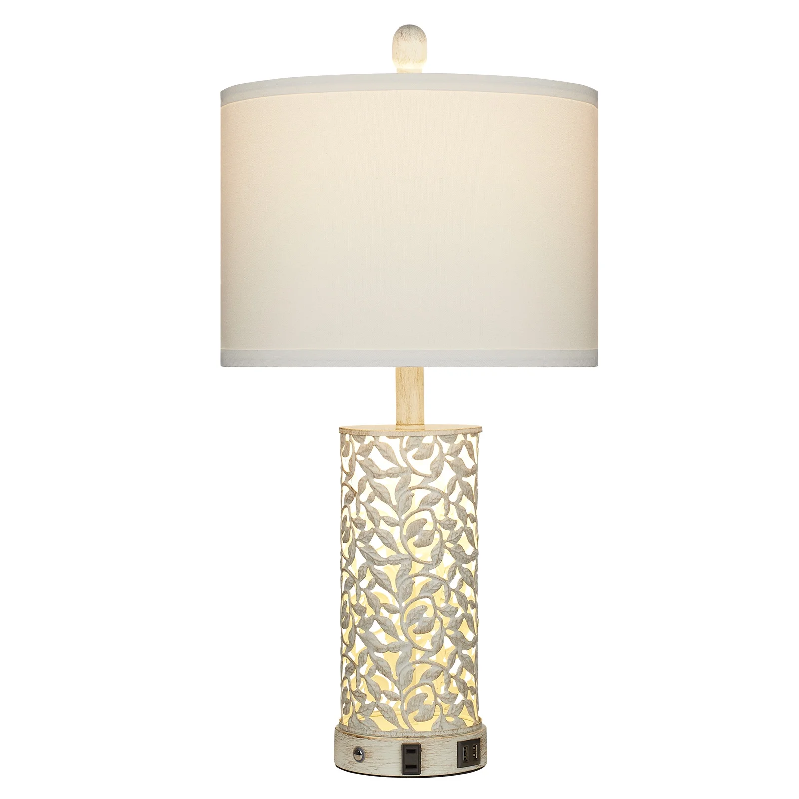 - Vintage Floral Table Lamps for Bedroom : retro modern white table lamps set of 2 crafted with white metal hollow floral carved antique lamp body and round lamp base complement any home decor style. The beige linen fabric lampshade can soften the light, greatly eliminates eye fatigue and protects your eyes, add a lot of warmth atmosphere to your home. Ideal gift for birthday, Valentine's Day, Easter, Mother's Day, Father's Day, Christmas, New Year.