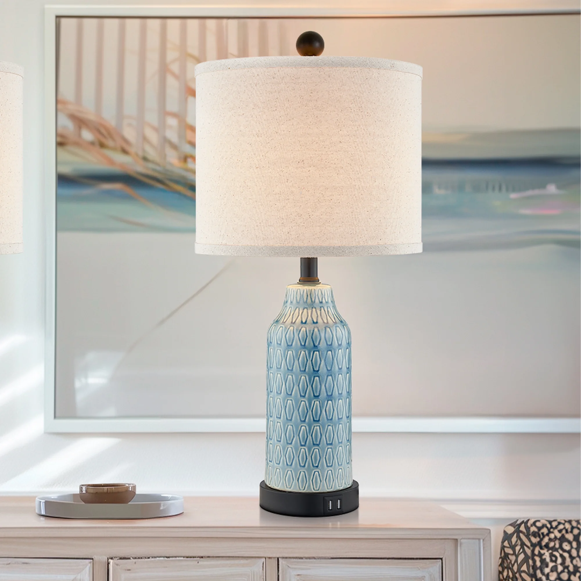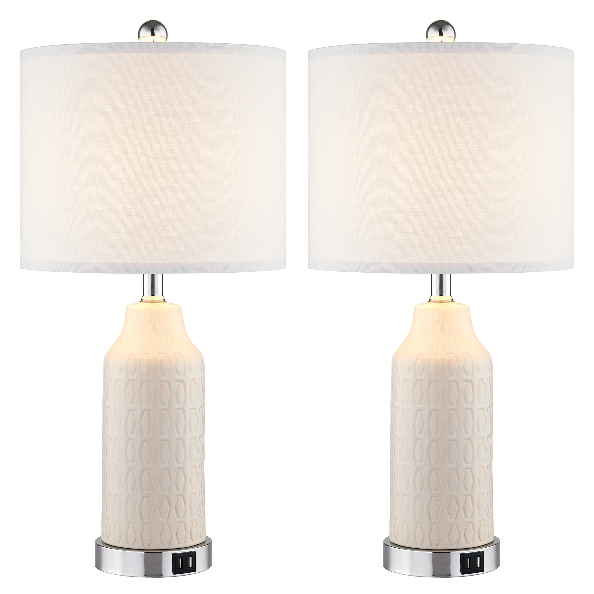 A: Table lamps come with two USB charging ports and AC outlet, suitable for charging multiple devices