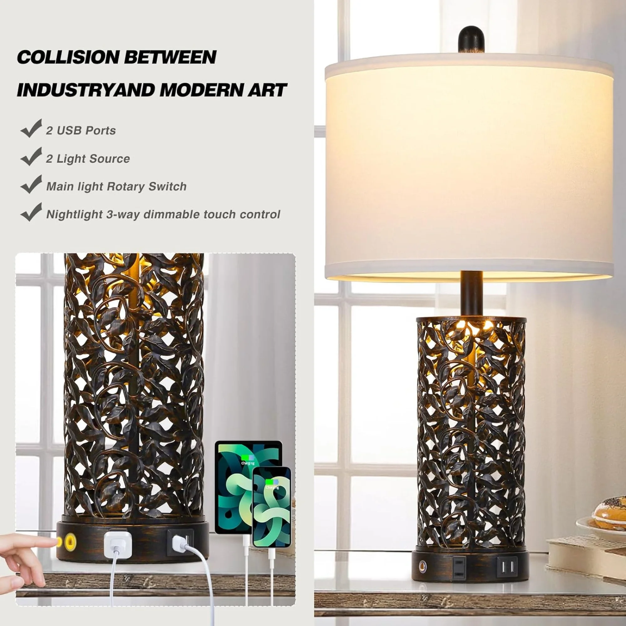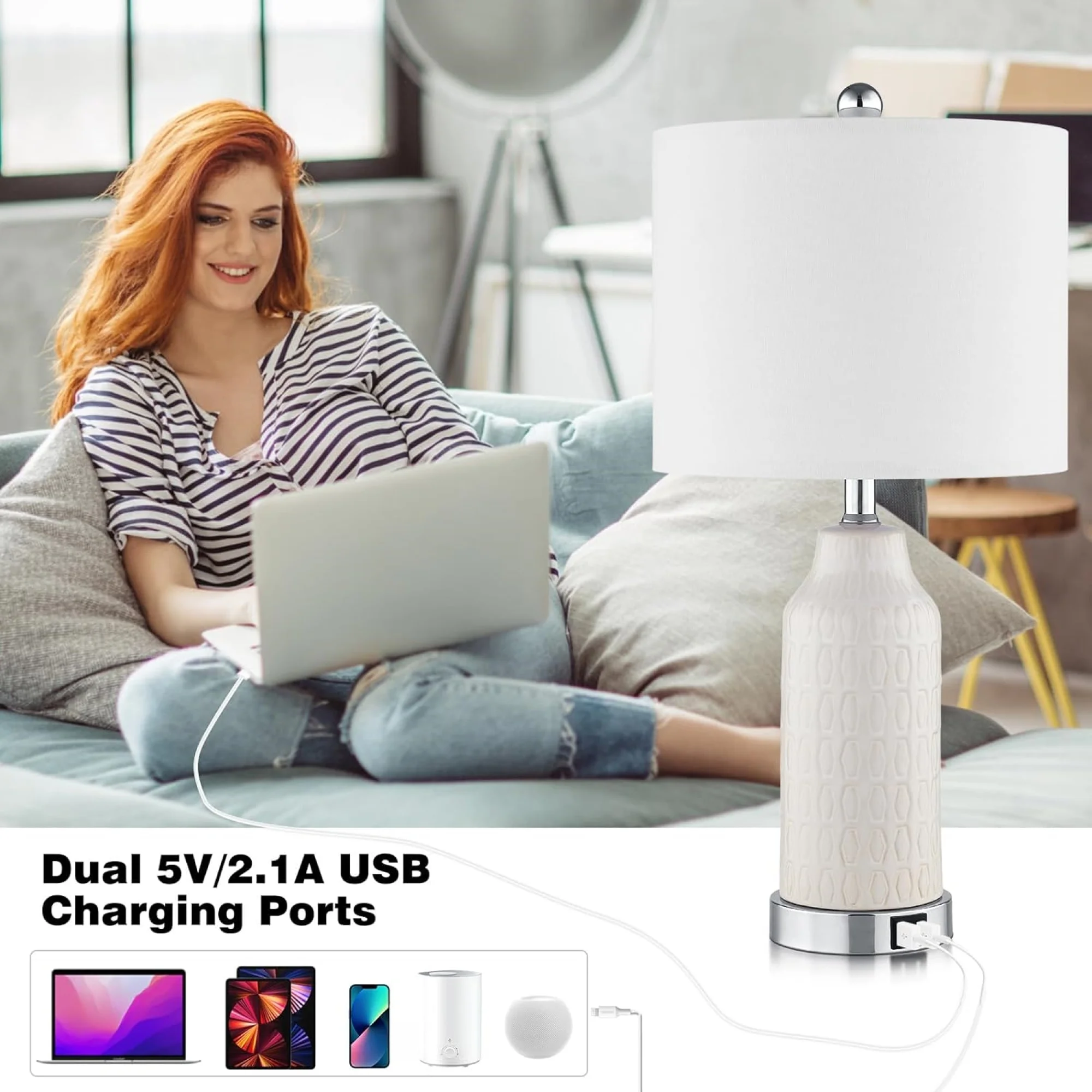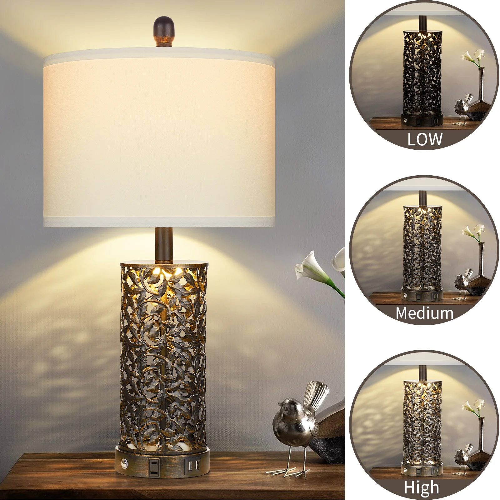 - Table Lamps with 2 USB Ports : table lamp has two 5V/2.1A USB ports and one 120V AC outlet, allowing you to quickly charge 3 devices at the same time, convenient for charging your mobile phone, tablet PC, humidifier, speaker and other electronic devices at any time, fully saving your time and space. Perfect for living room, bedroom, dining room, study, or office.