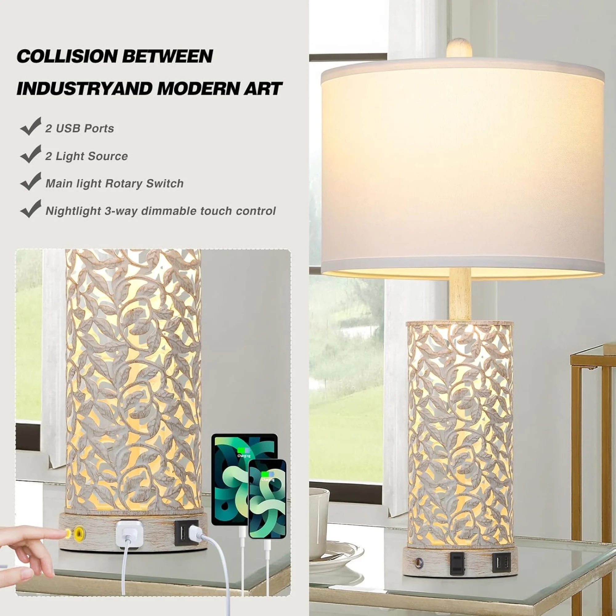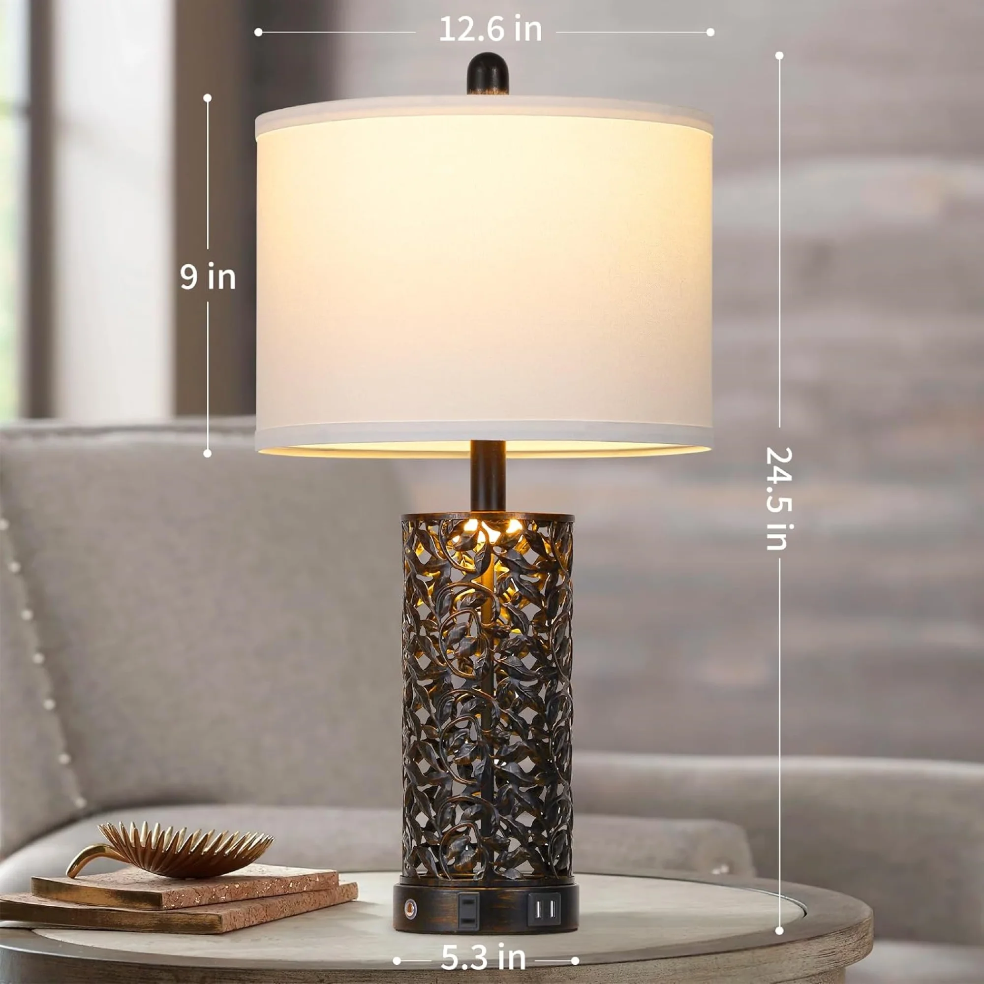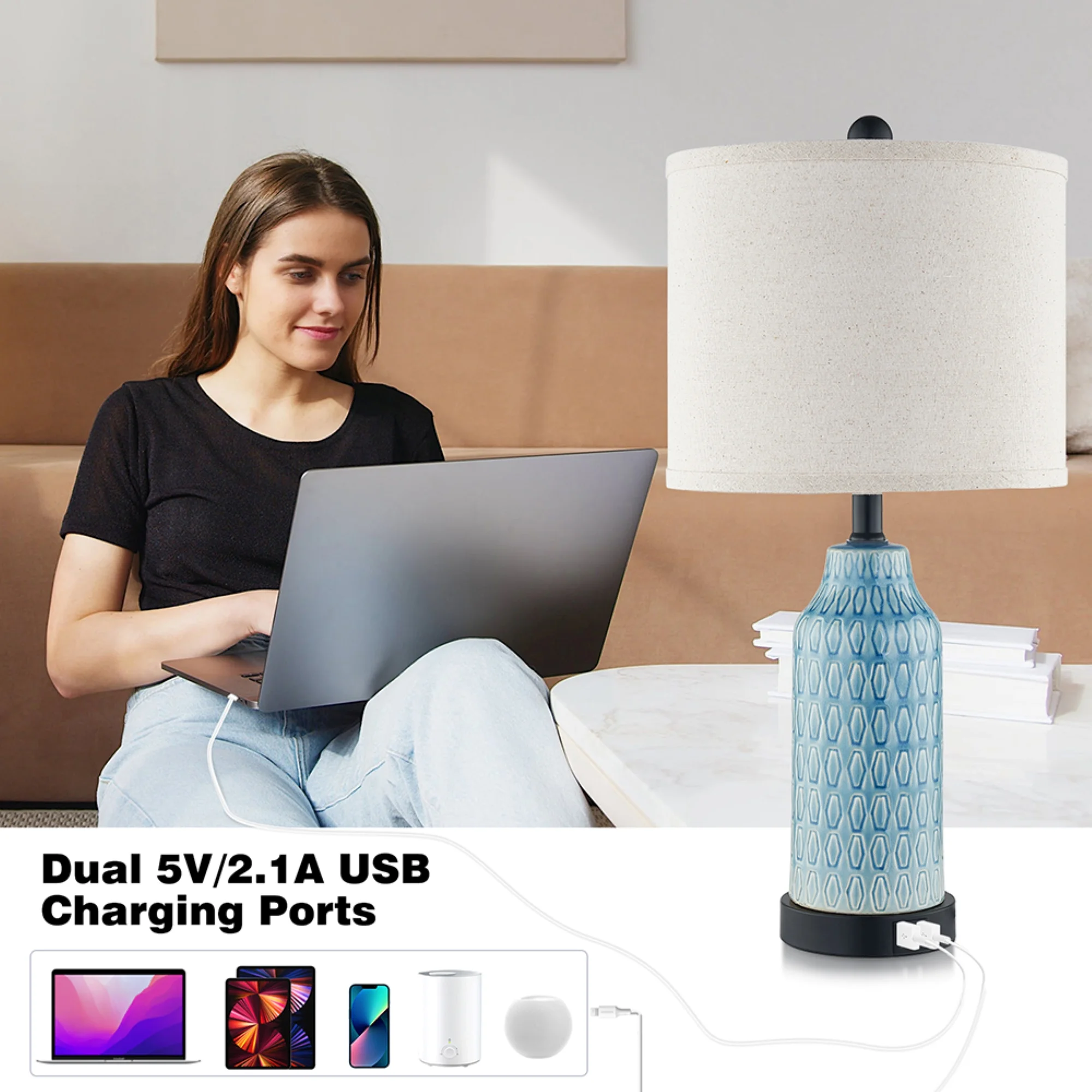 - Table Lamps with 2 USB Ports : table lamp has two 5V/2.1A USB ports and one 120V AC outlet, allowing you to quickly charge 3 devices at the same time, convenient for charging your mobile phone, tablet PC, humidifier, speaker and other electronic devices at any time, fully saving your time and space. Perfect for living room, bedroom, dining room, study, or office.