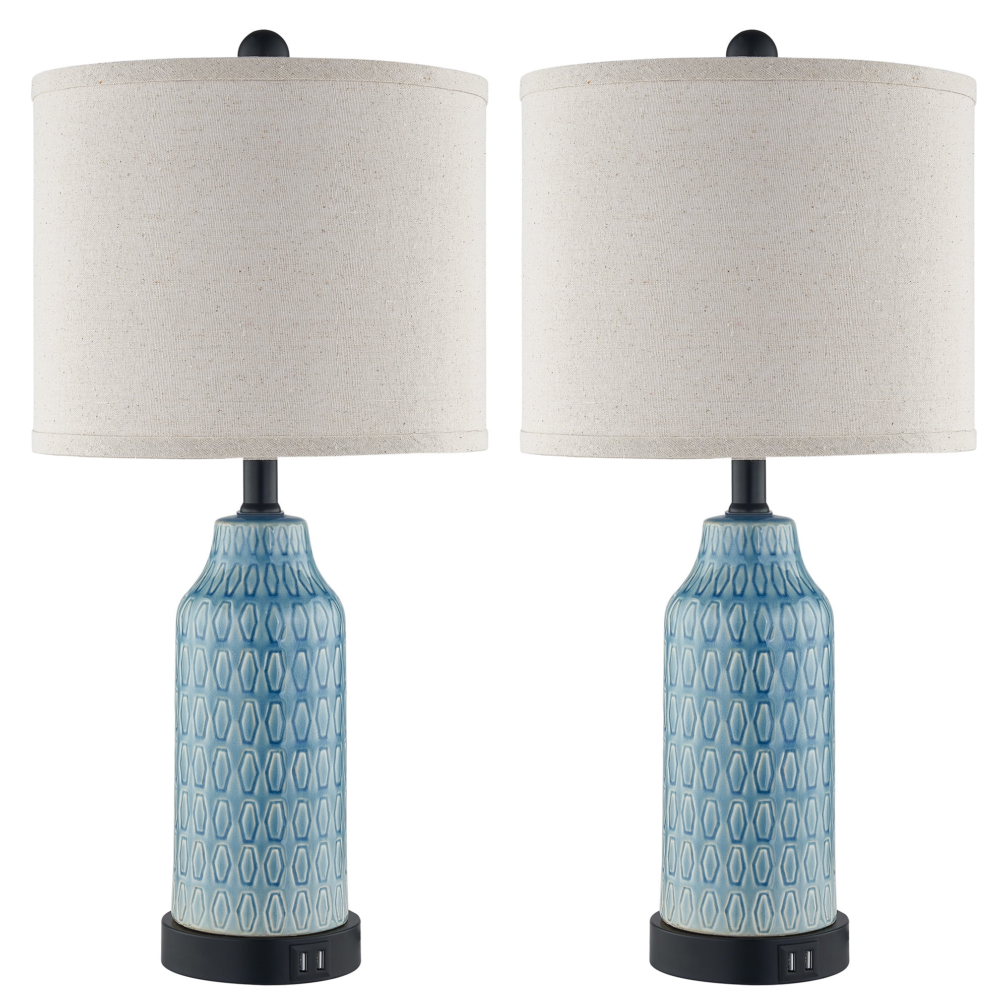 - Farmhouse Table Lamps Dimensions : overall lamp height 24.5 inches; drum linen lampshade 12.6" W x 12.6" D x 9" H, round lamp base is 5.3" W x 5.3" D x 1.25" H. Lampshade need to be assembled.
