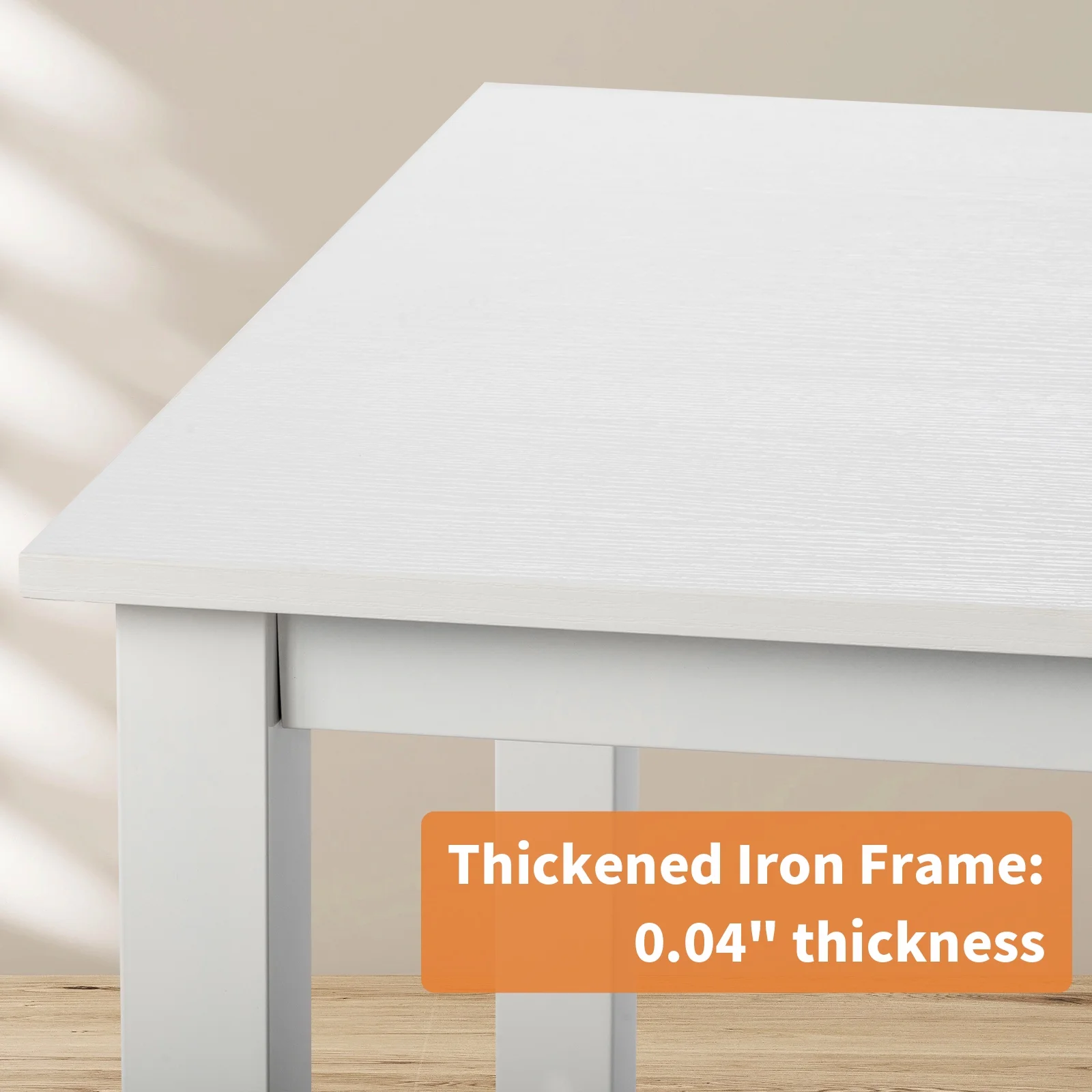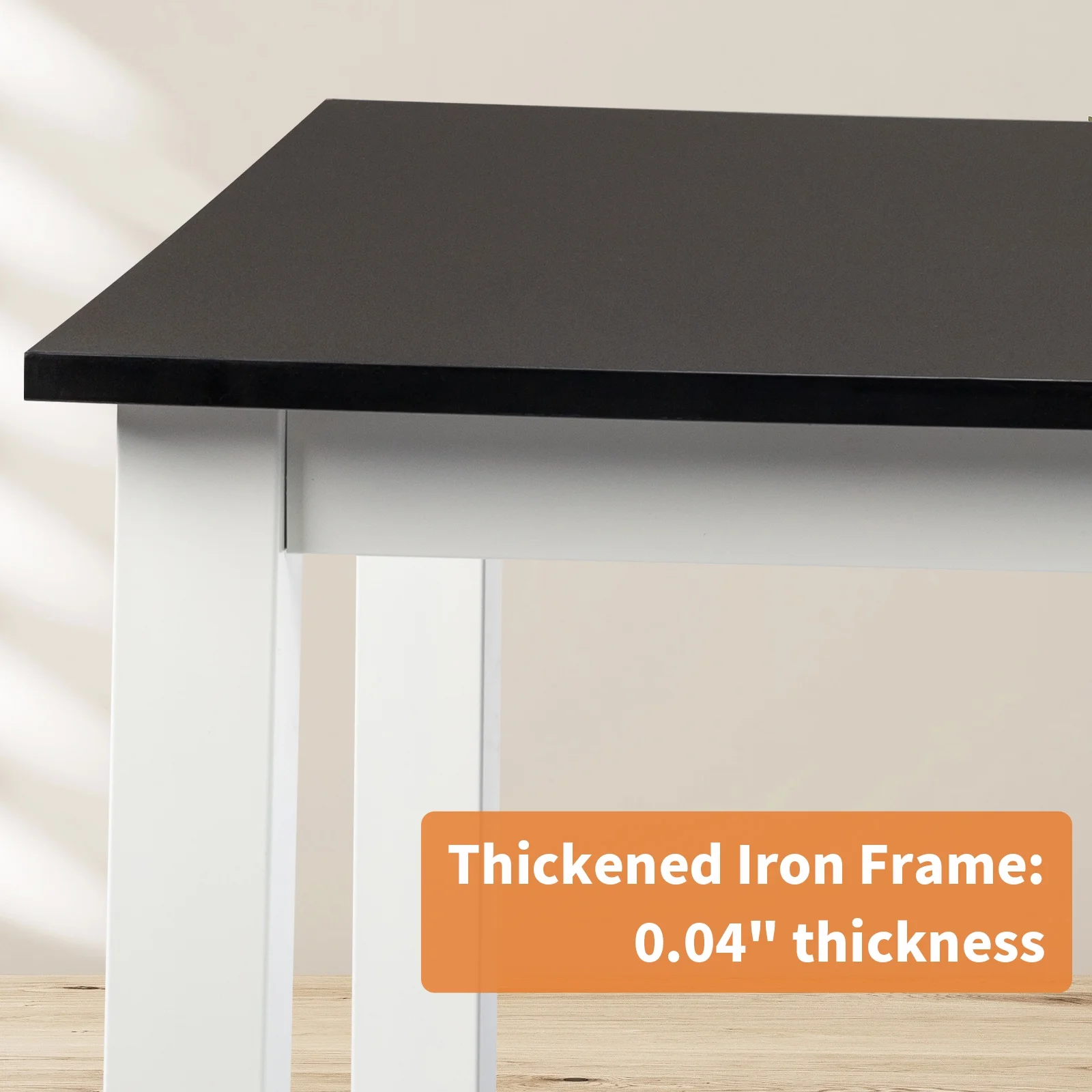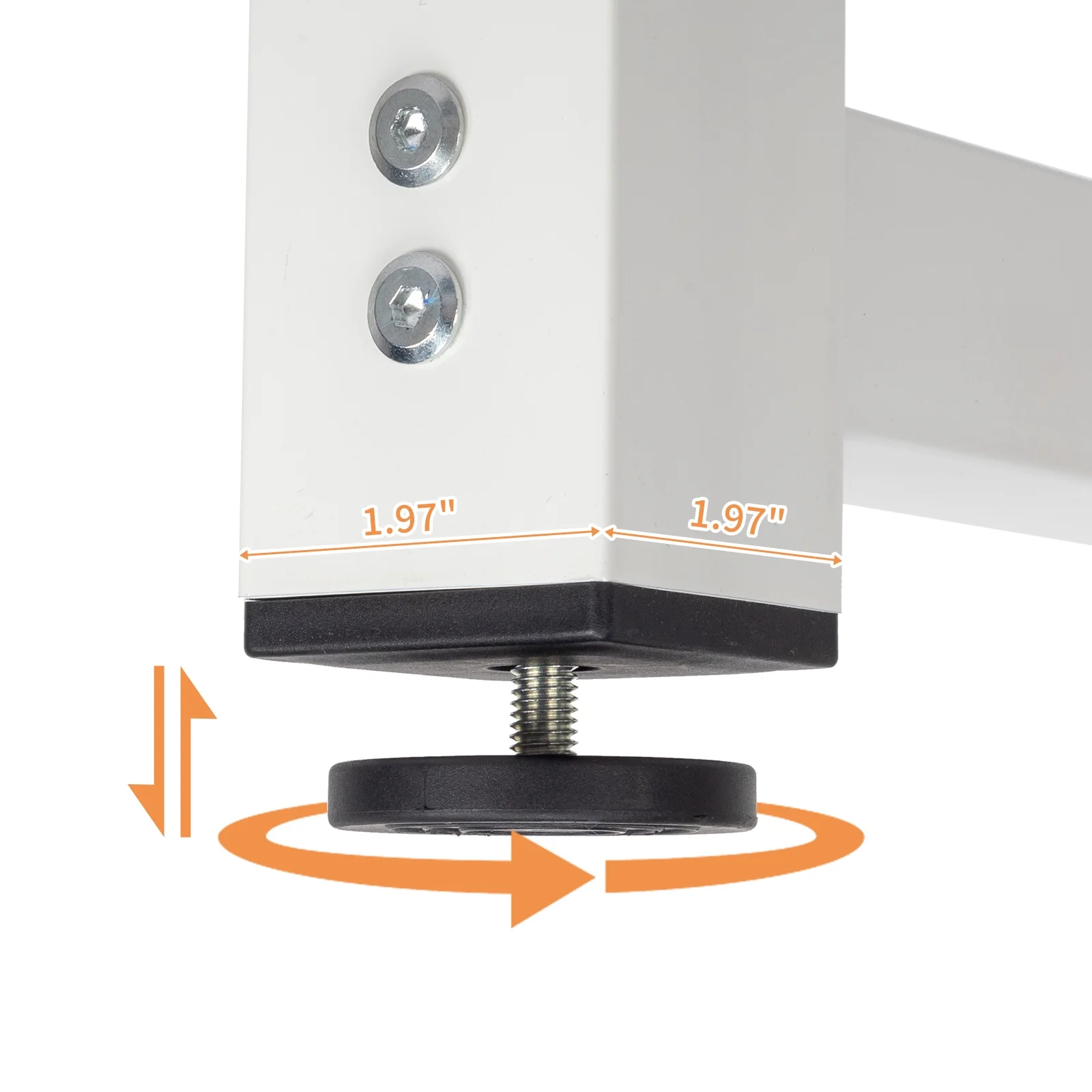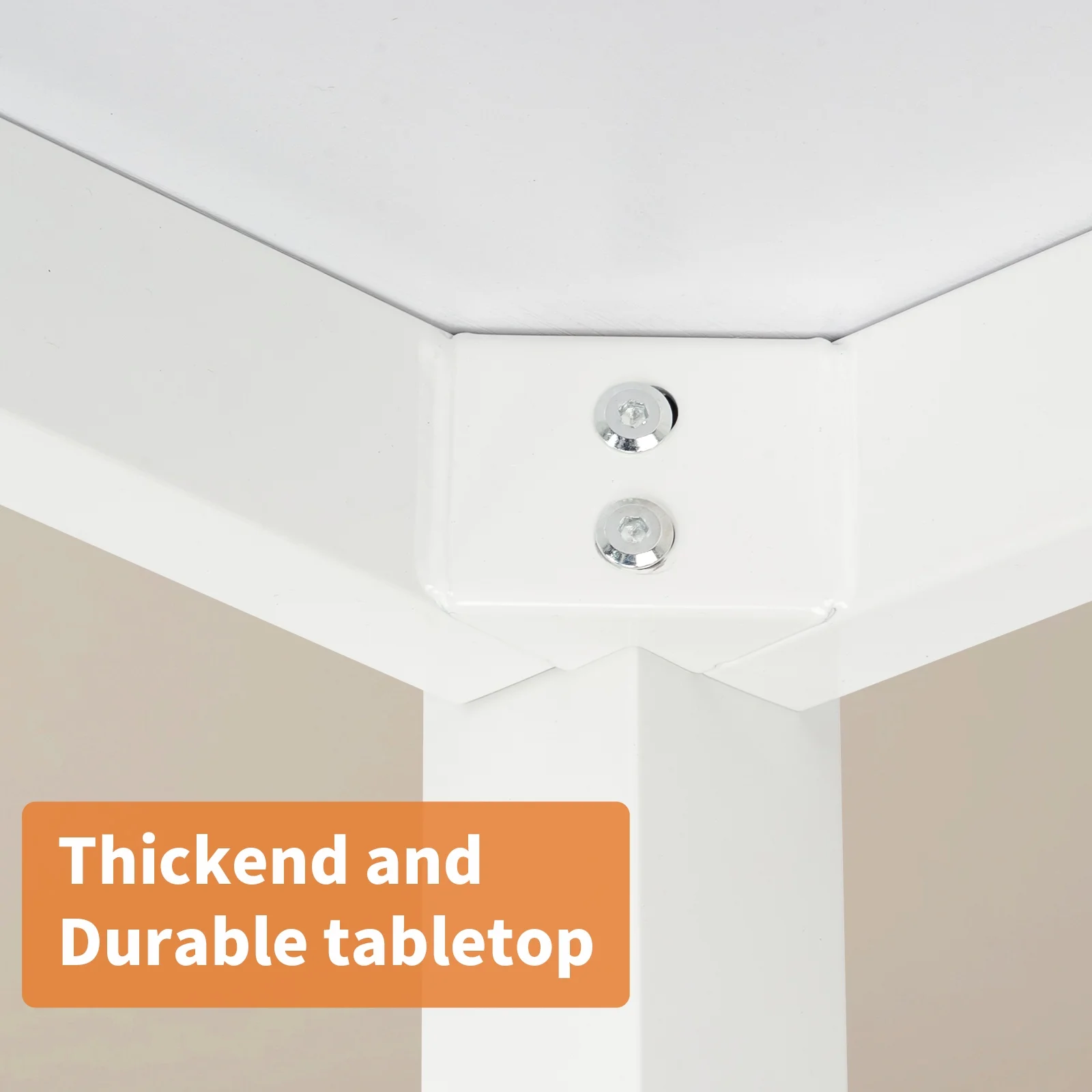 ★Spacious Tabletop and Sturdy Metal Frame:The tabletop is strong and spacious enough for you to work or study. The surface and edge of the tabletop are smooth so as to prevent your hands from being scratched. It is constructed of steel with exquisite white finish. Two horizontal metal bars ensure its stability and sturdiness