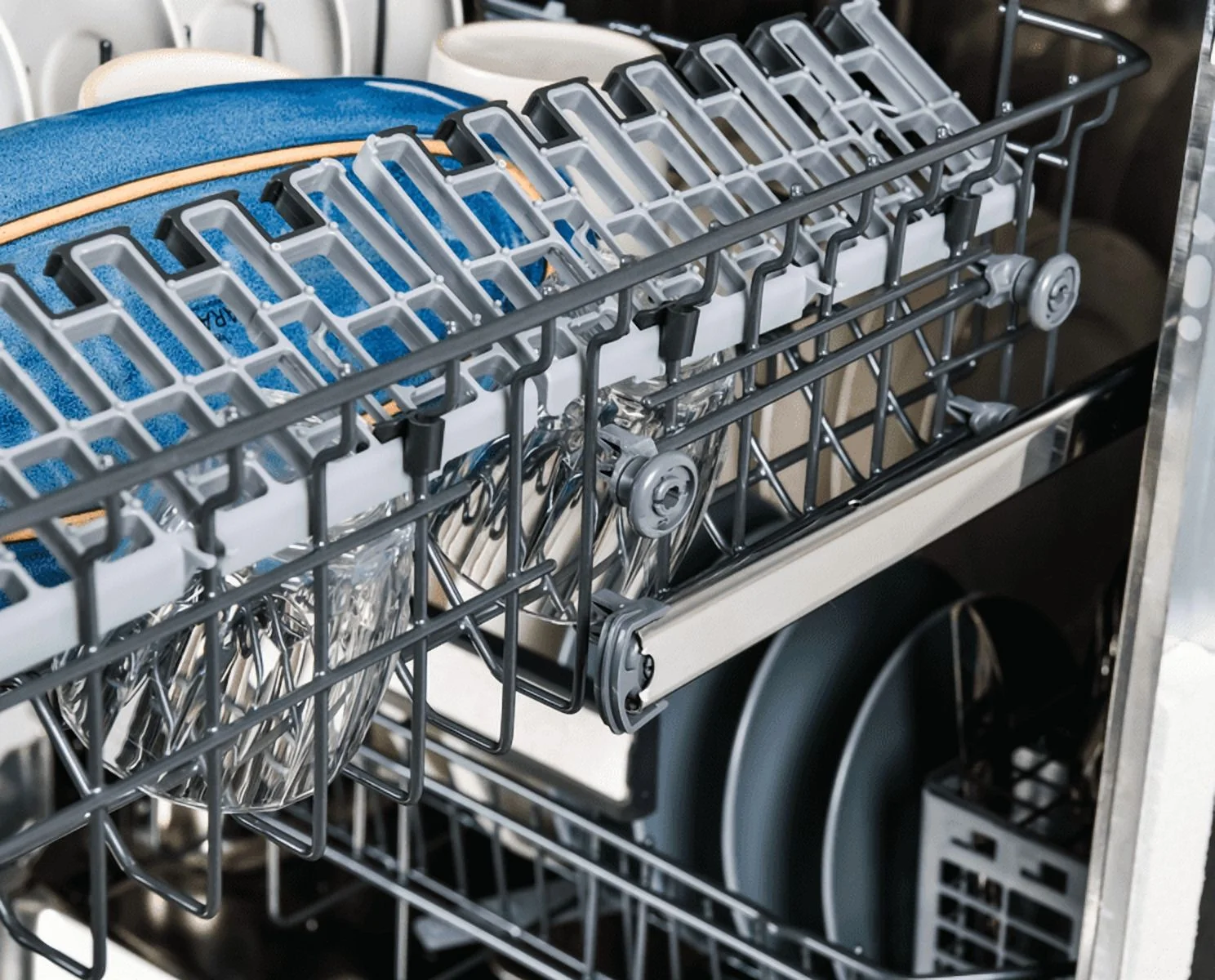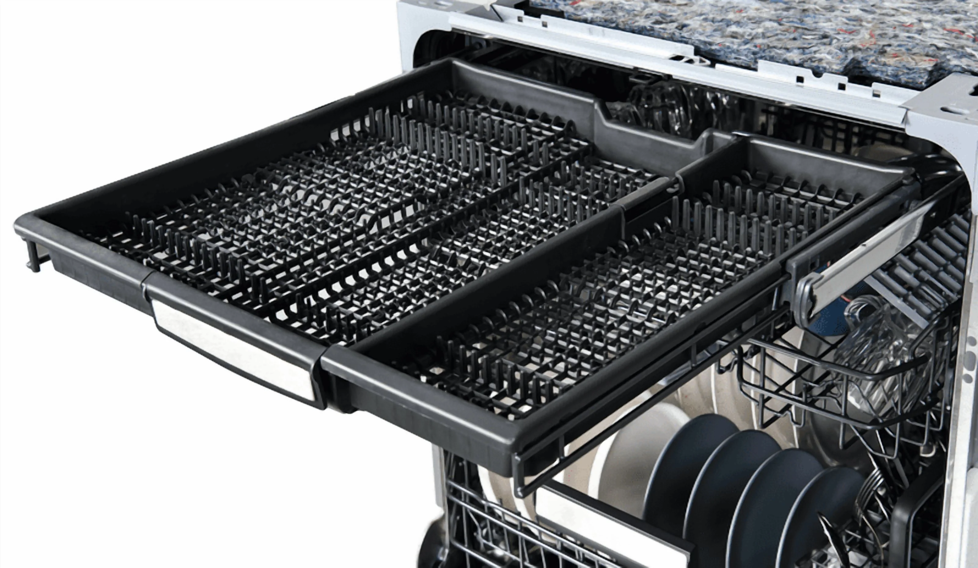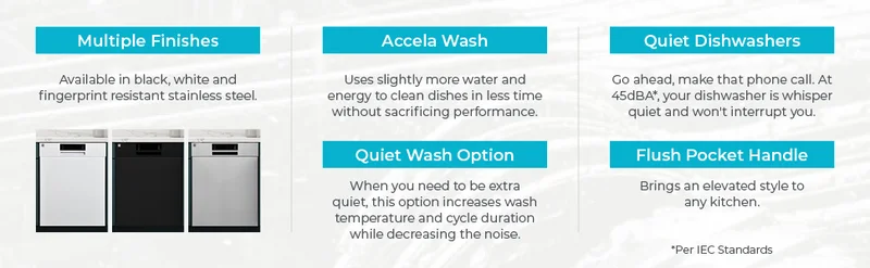 - ERGONOMIC FEATURES: AccelaWash Option delivers clean dishes in less time, and MoreSpace Adjustable Rack allows you to lift, lower, or remove the upper rack to accommodate large items