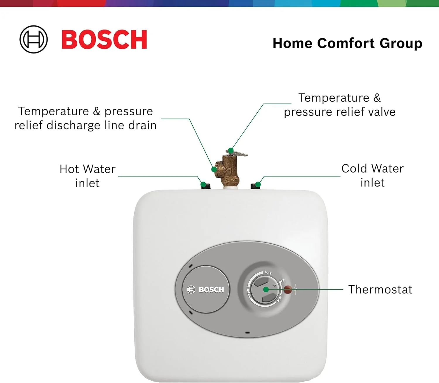 Bosch Electric Mini-Tank Water Heater Tronic 3000 T 2. 5-Gallon (ES2. 5) - Eliminate Time for Hot Water - Shelf, Wall or Floor Mounted.