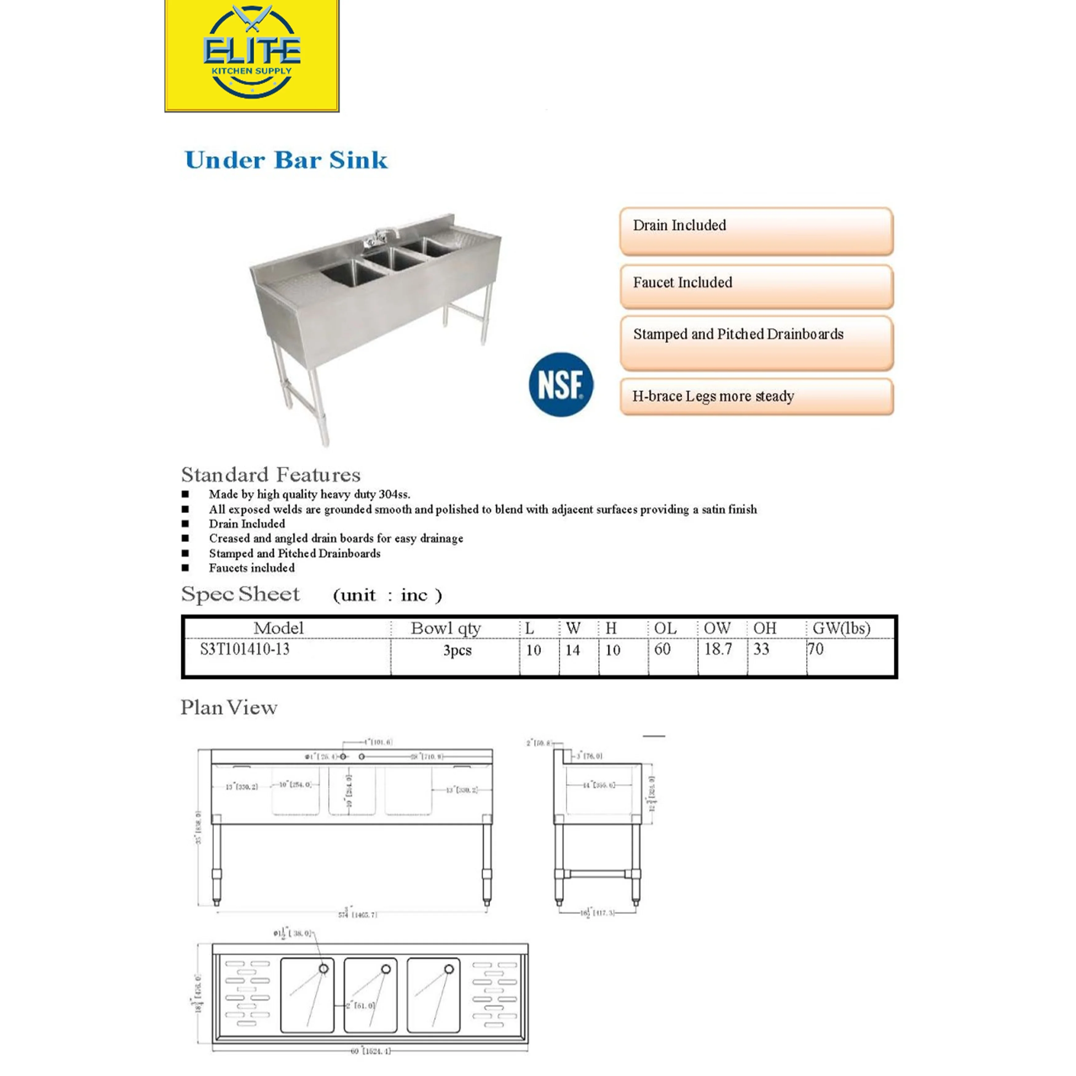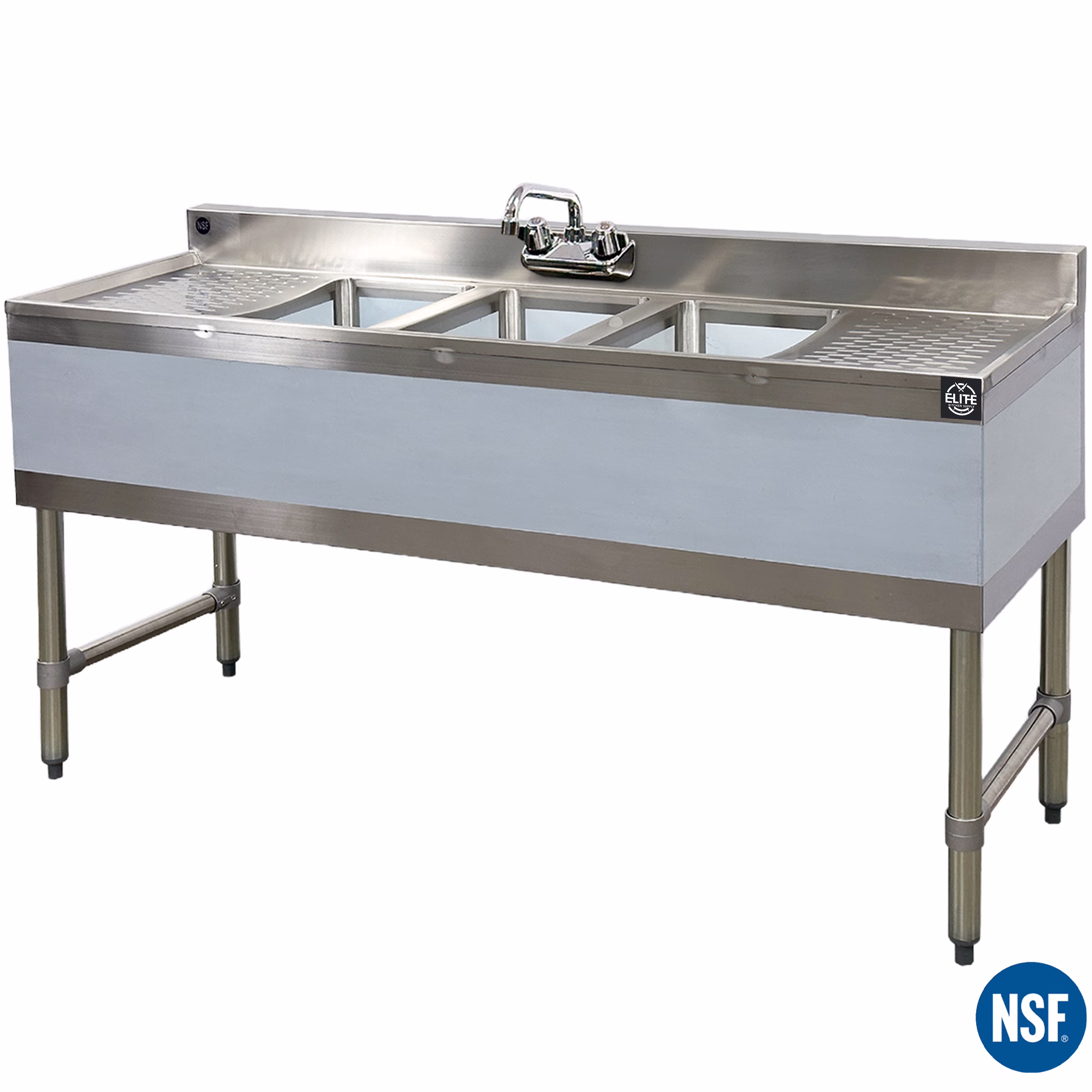 Three Bowl Configuration: Accommodates multitasking with three separate compartments for rinsing, washing, and sanitizing.