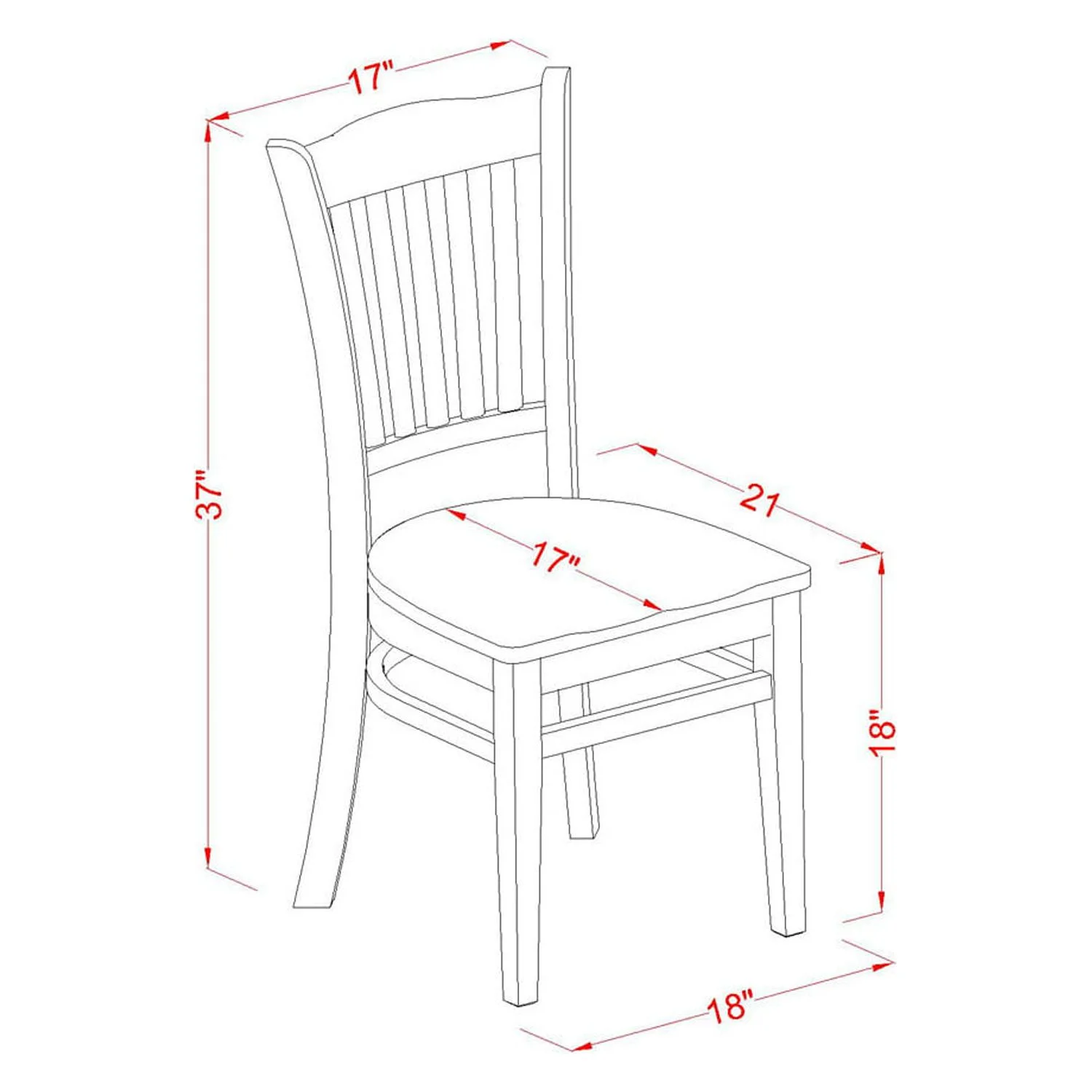 - Dining Chair Dimensions: 38"H x 18"W x 21"D