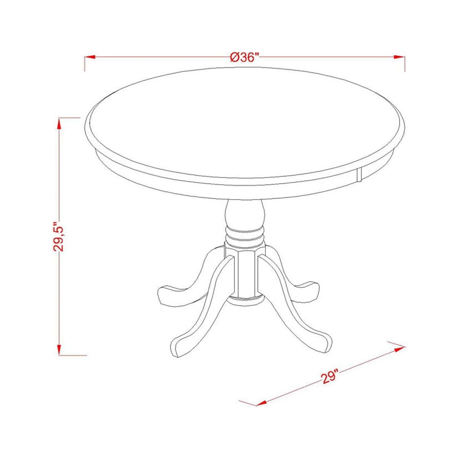 - Dining Table Dimensions: 30"H x 36"W x 36"D