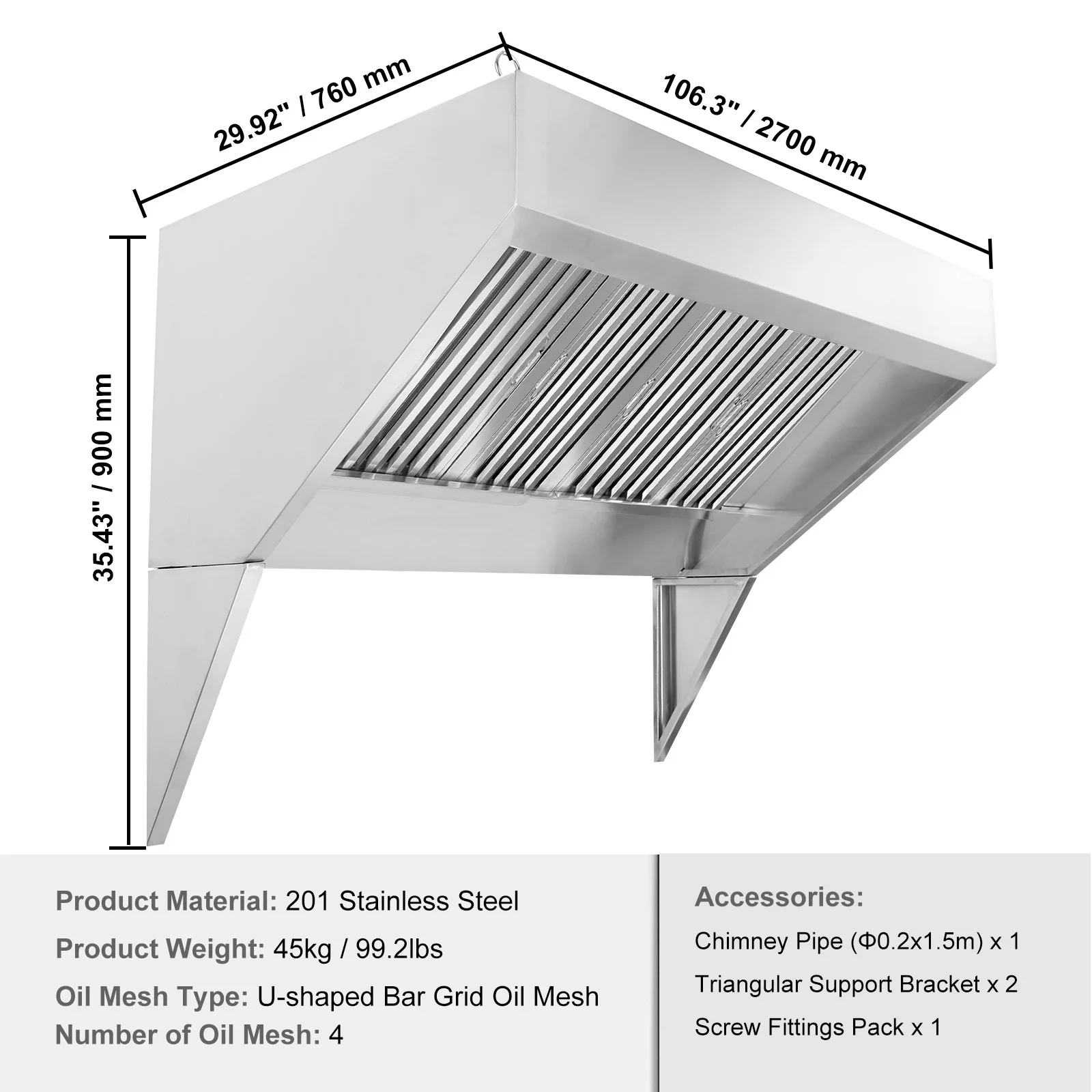 - Upgrade Your Kitchen: Transform your kitchen with the KFFKFF 9FT concession trailer hood! Crafted from high-quality 201 stainless steel, this exhaust hood is built to last with exceptional heat resistance and sturdiness. Its superior anti-corrosion properties and stable structure ensure long-lasting performance.