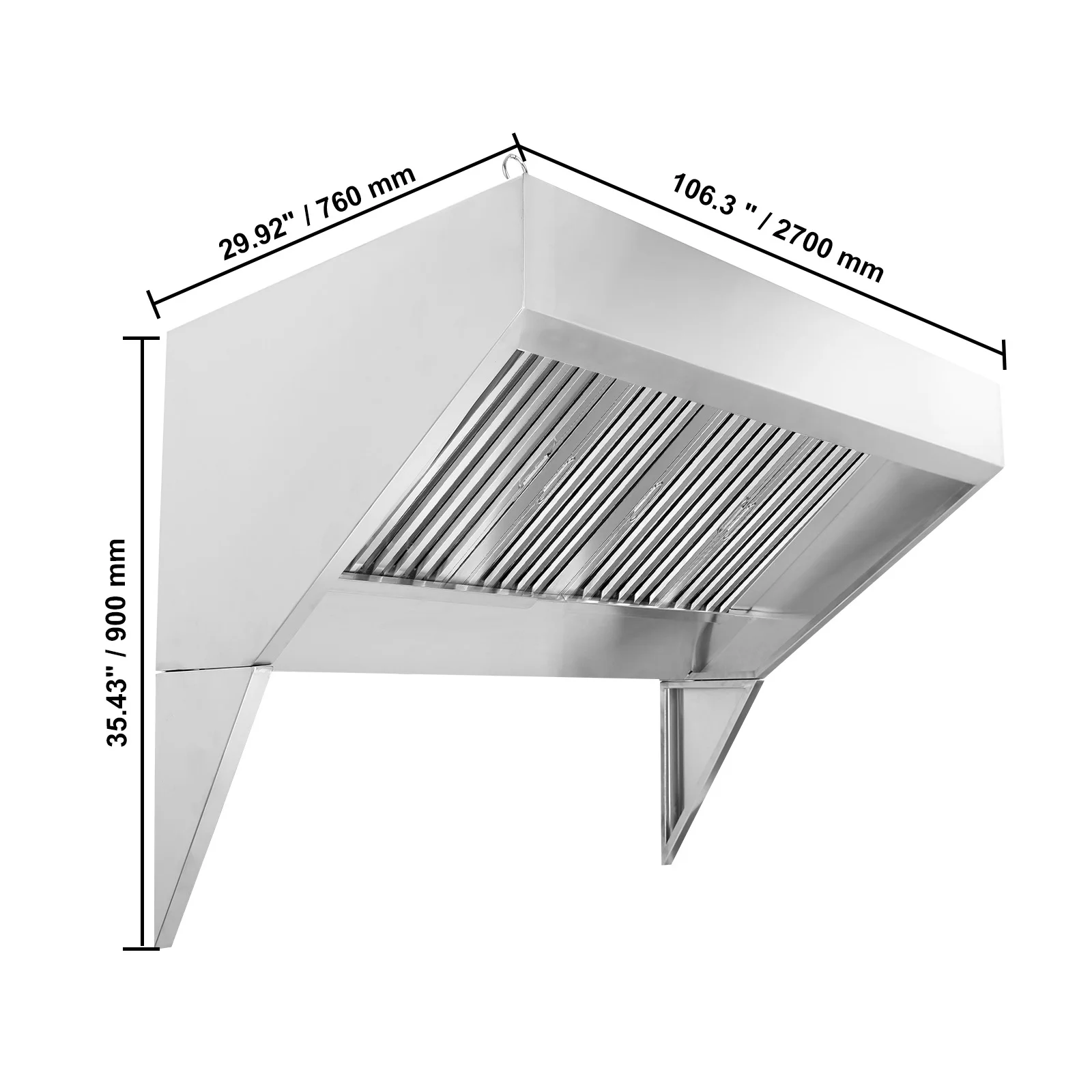 KFFKFF 9FT Stainless Steel Exhaust Hood for Commercial Use, Suitable for Food Trucks and Concession Trailers, Includes 4 Removable U - Shaped Grease Filtration Meshes, Durable and Resists Corrosion